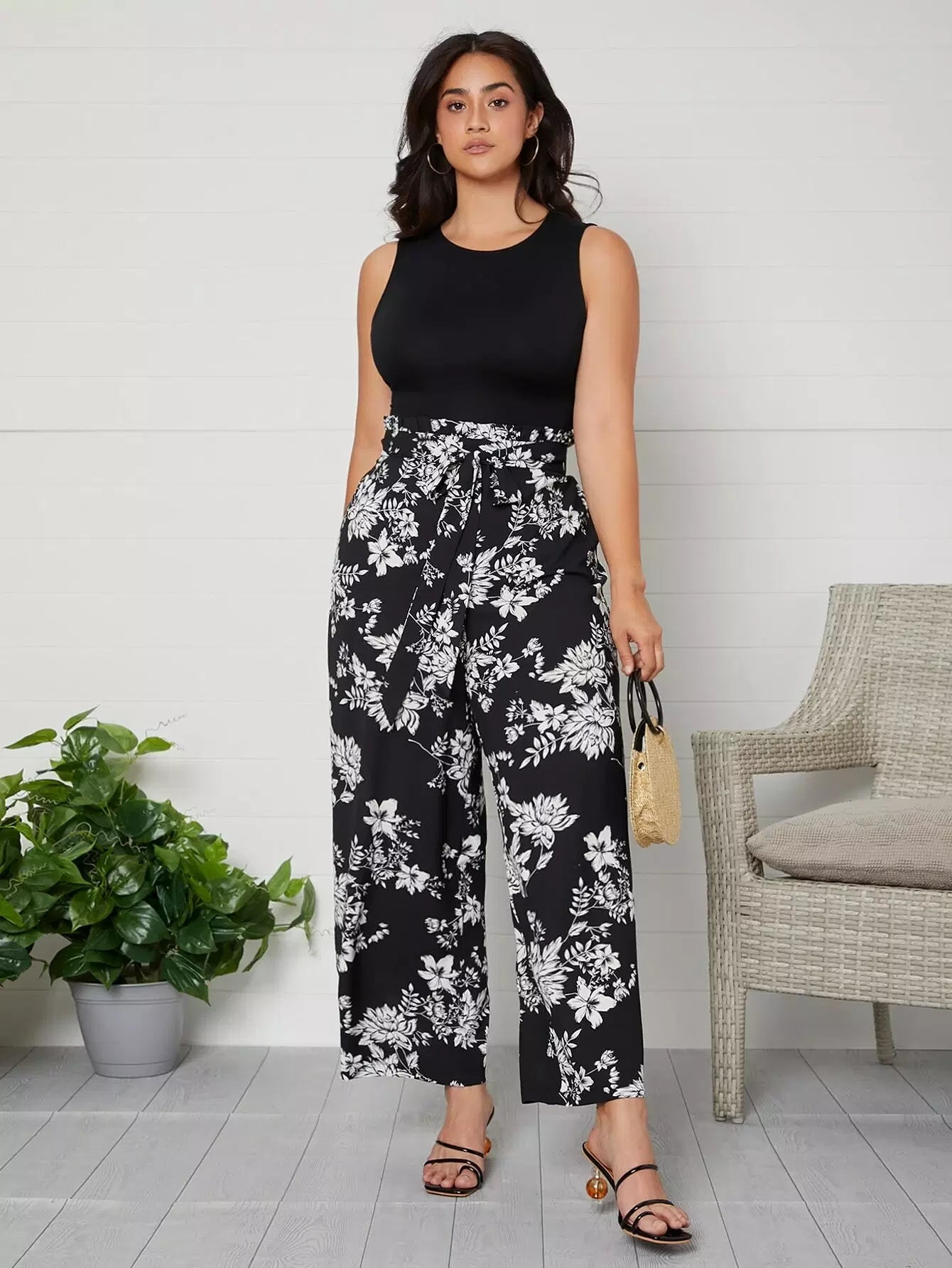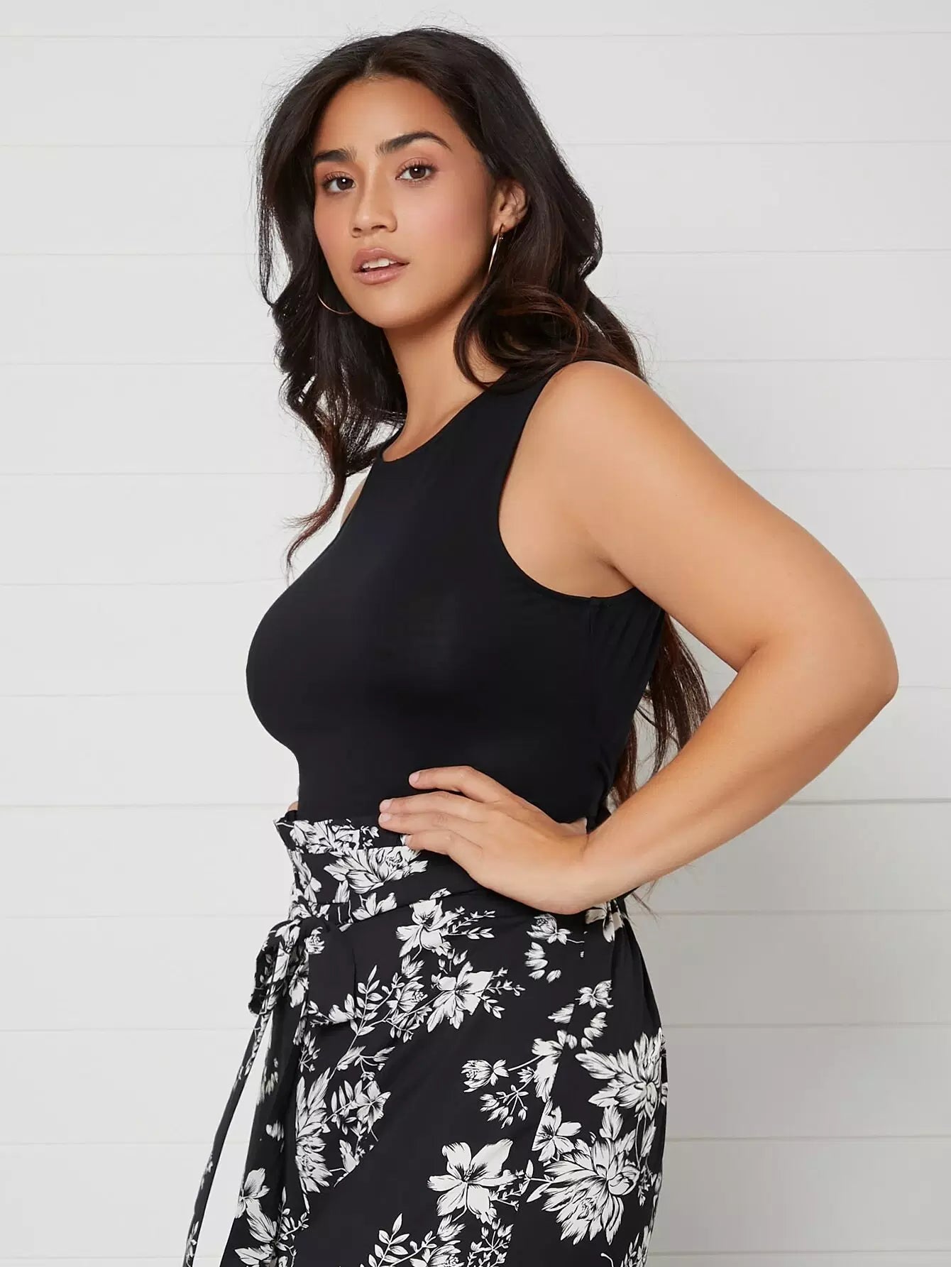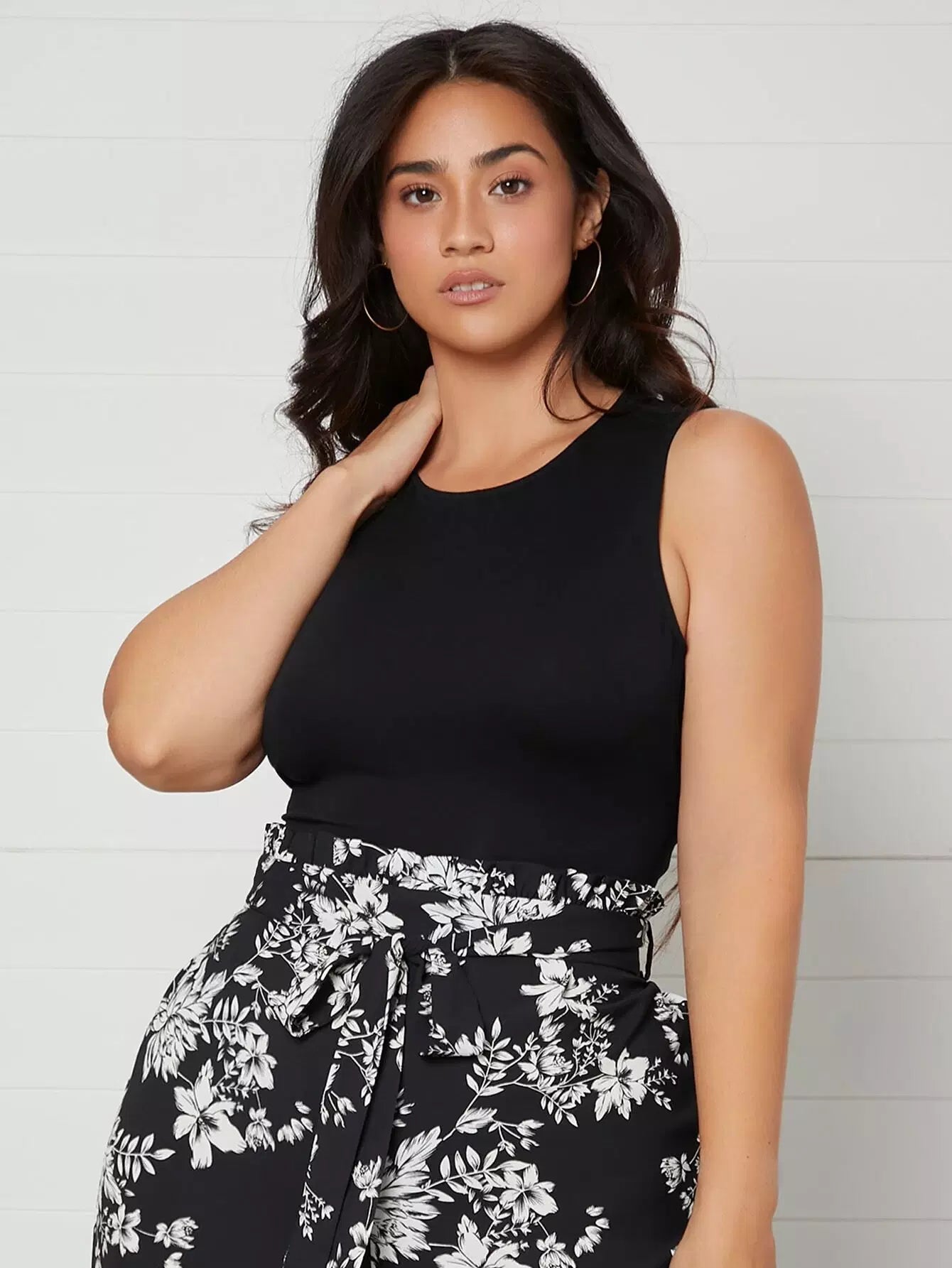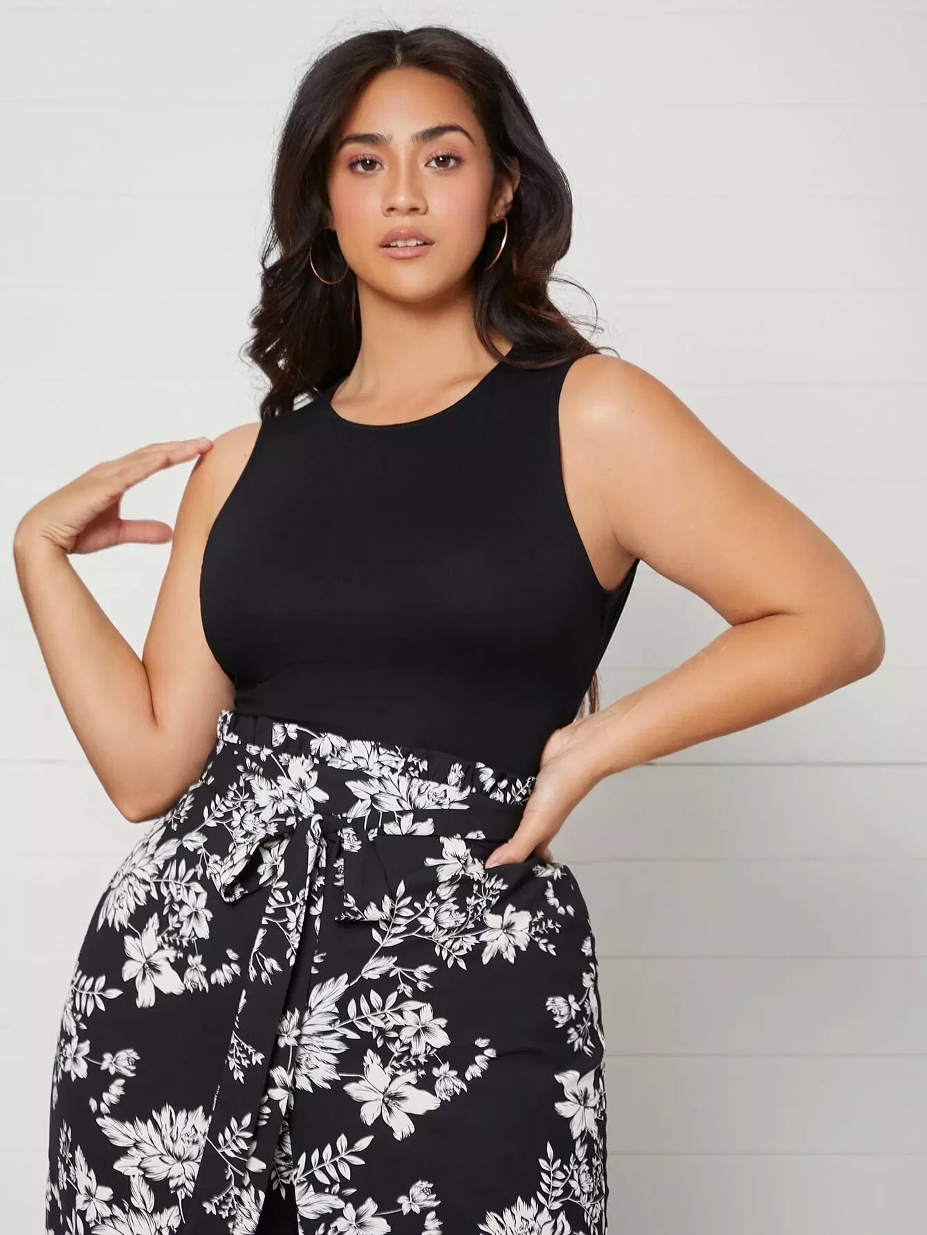 Plus Tie Open Back Solid Tank Top