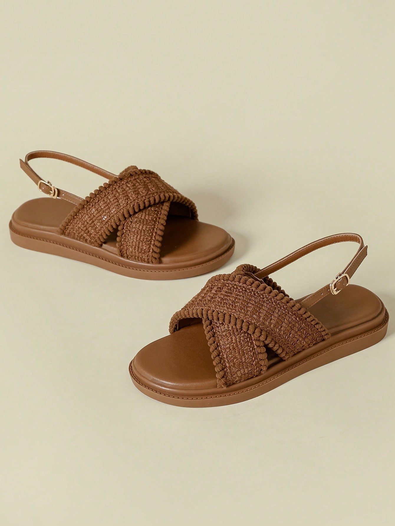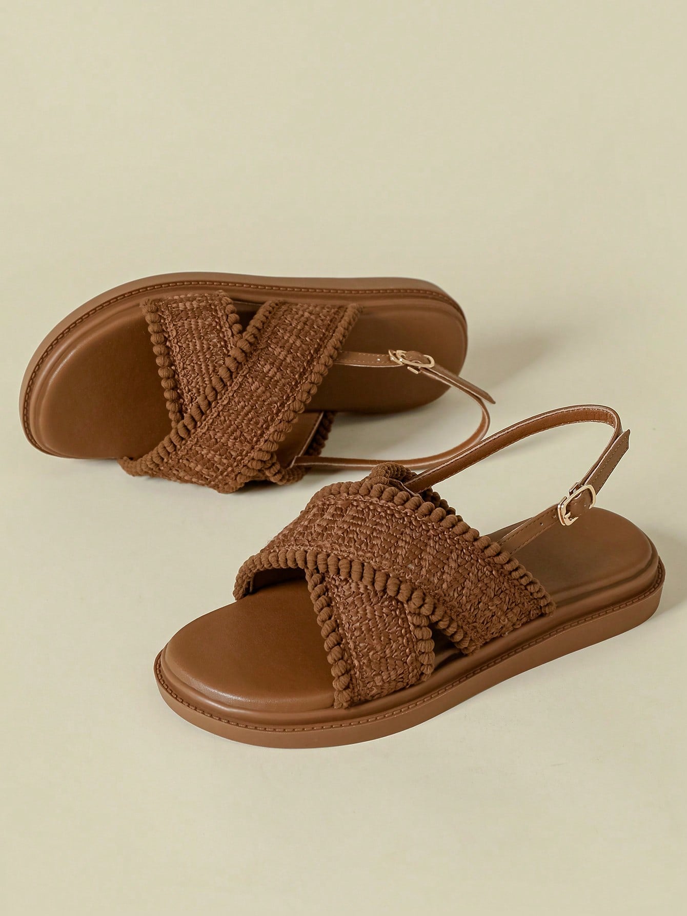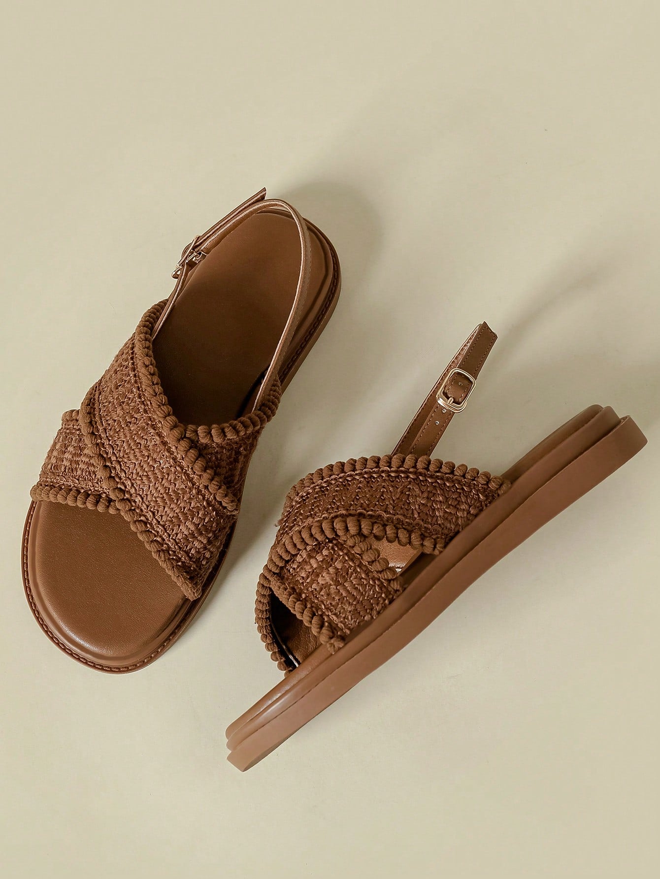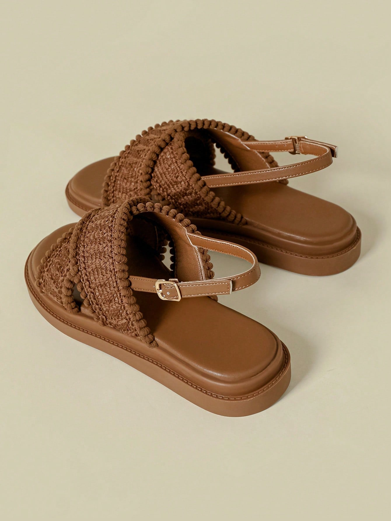 2025 Spring/Autumn Thick Sole Strap Buckle Sandals Outdoor Beach Open Toe Wedge Heel Retro Bohemian