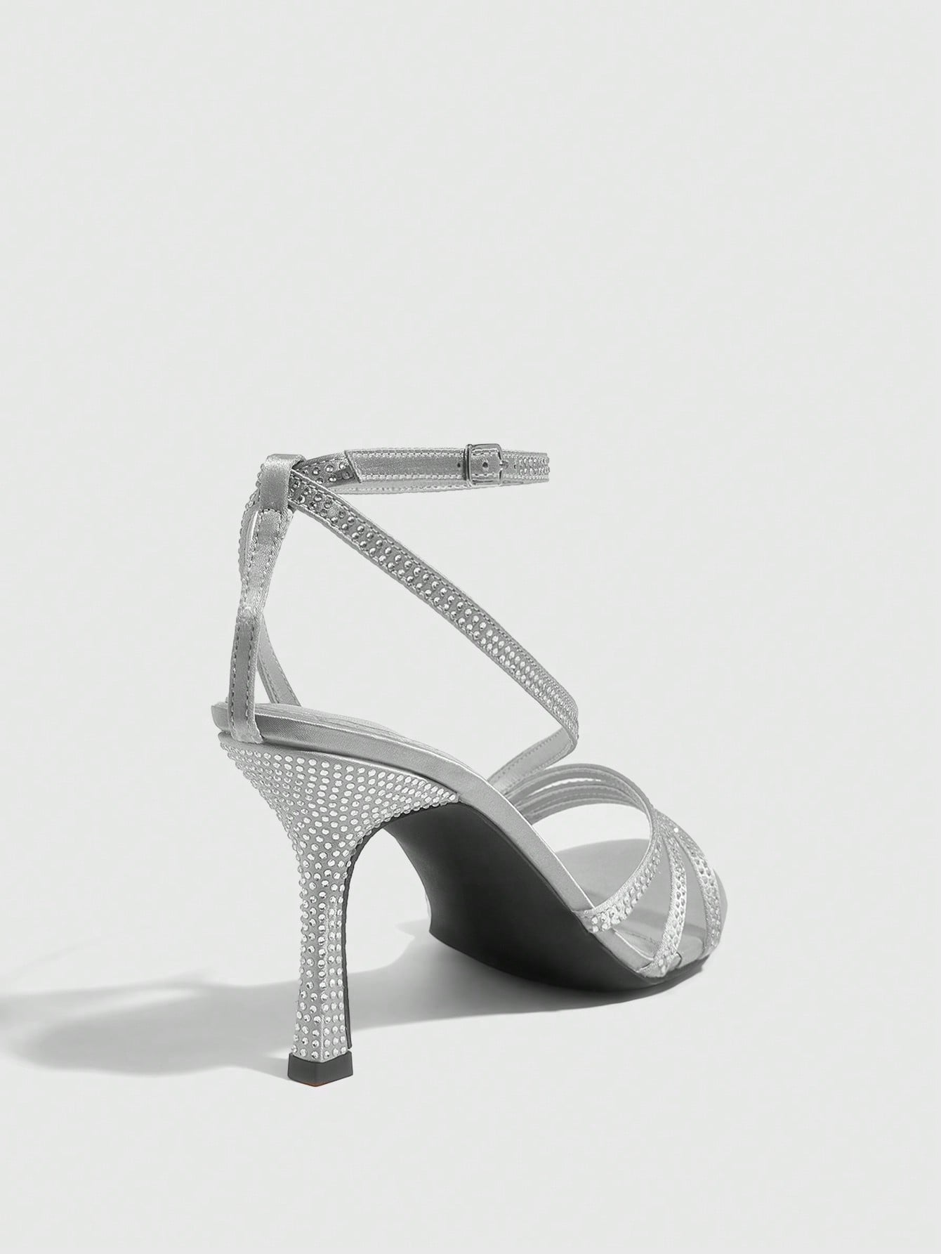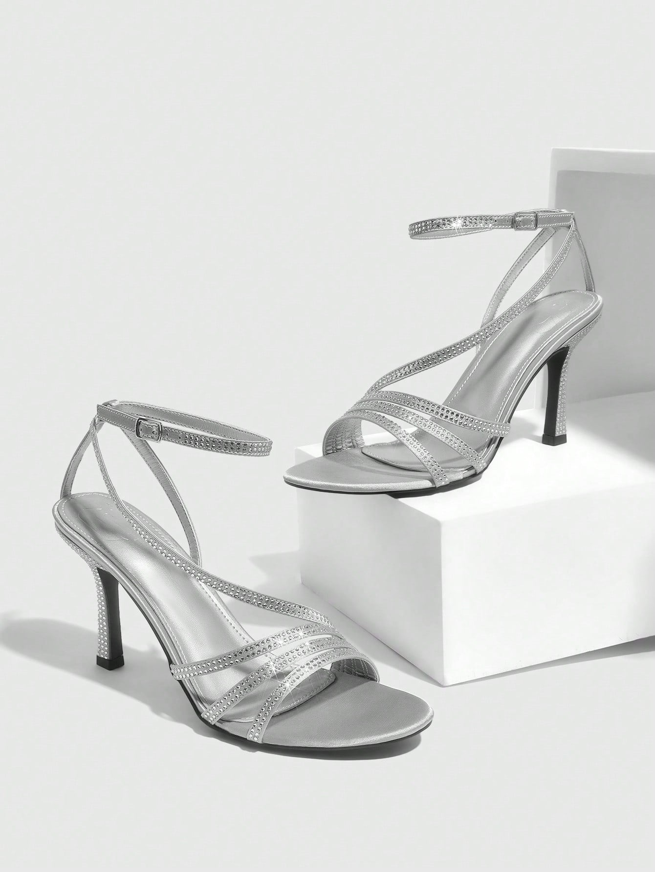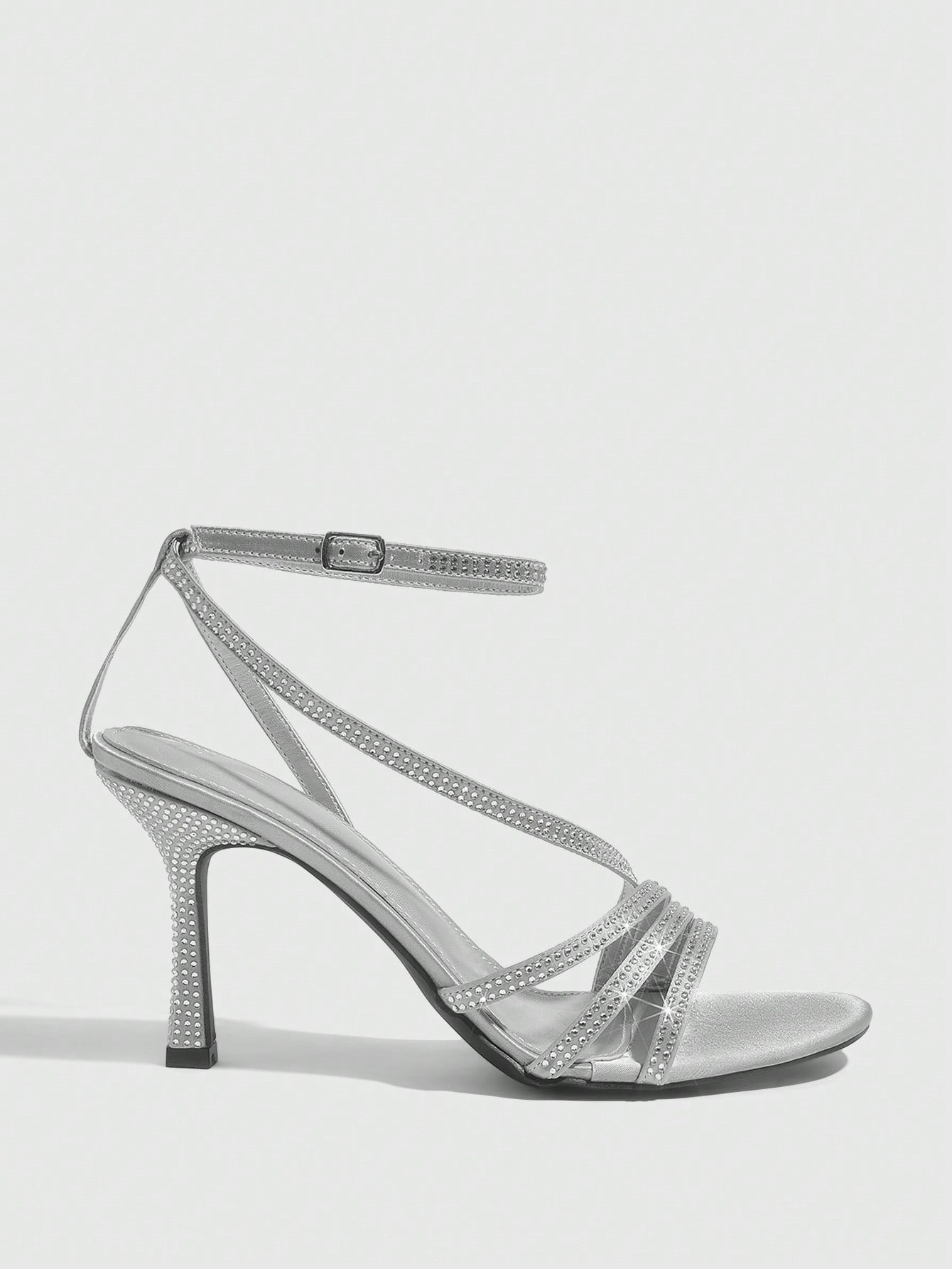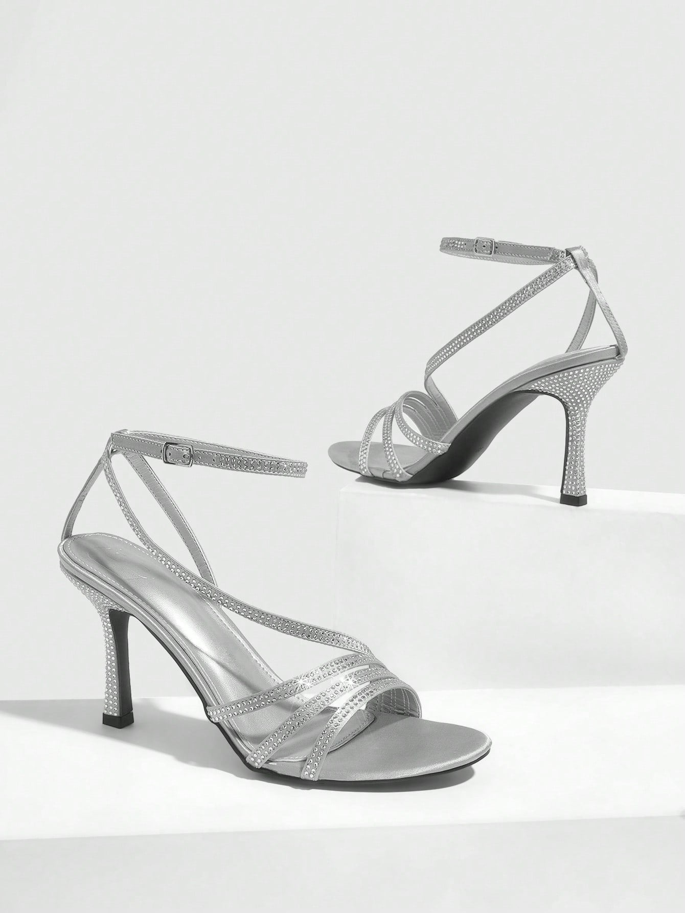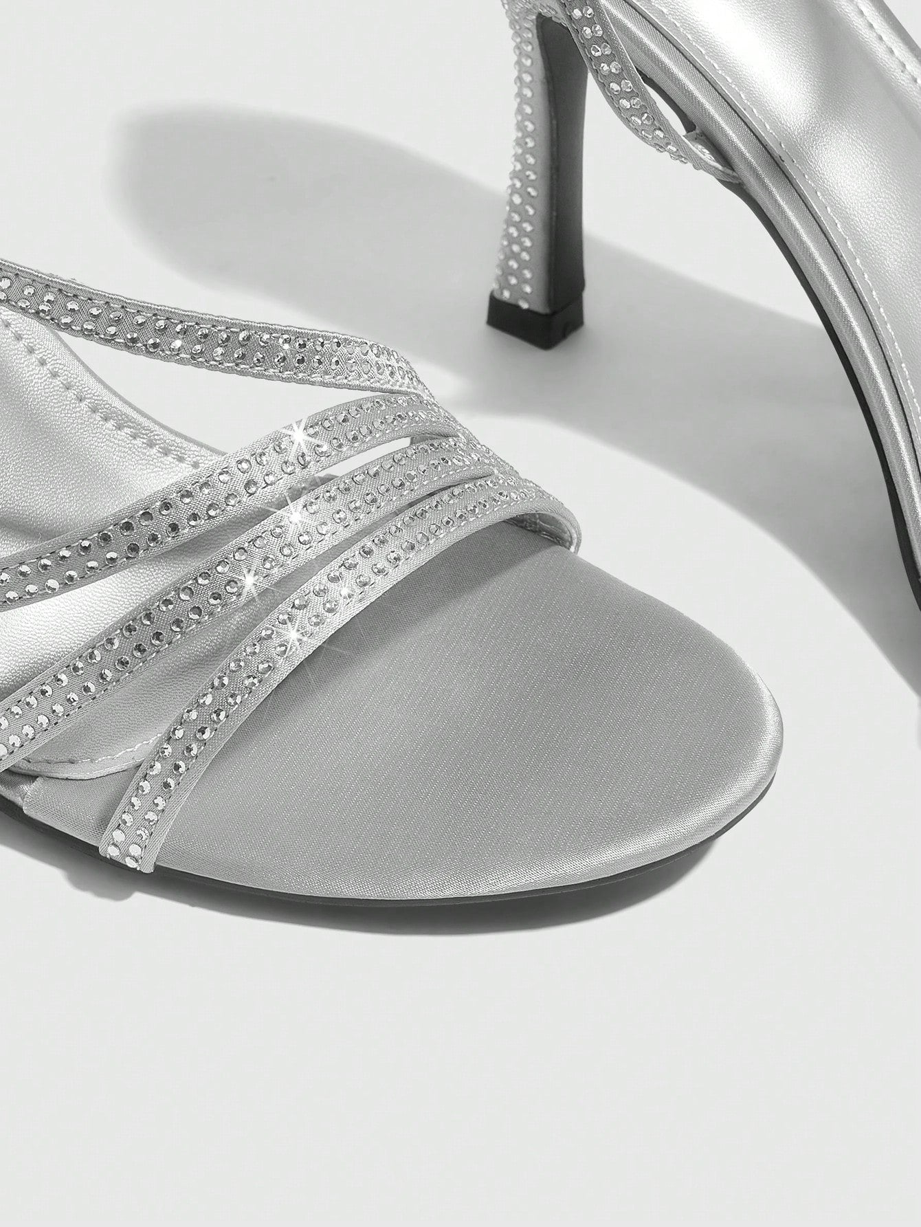 CUCCOO SZL Round Toe Rhinestone Decor Fabric Silver Comfort Fashionable High Heel Sandals For Women