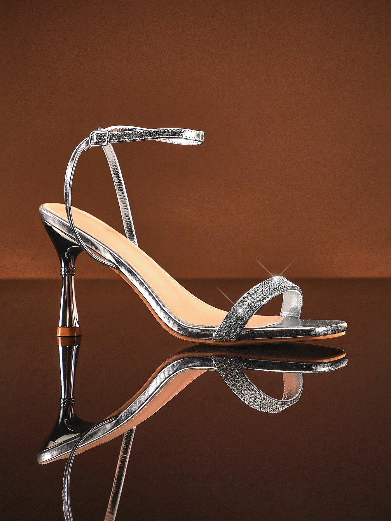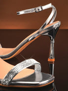 SHUZIA Women's Rhinestone Cross Toe Band Square Toe High Heel Sandals
