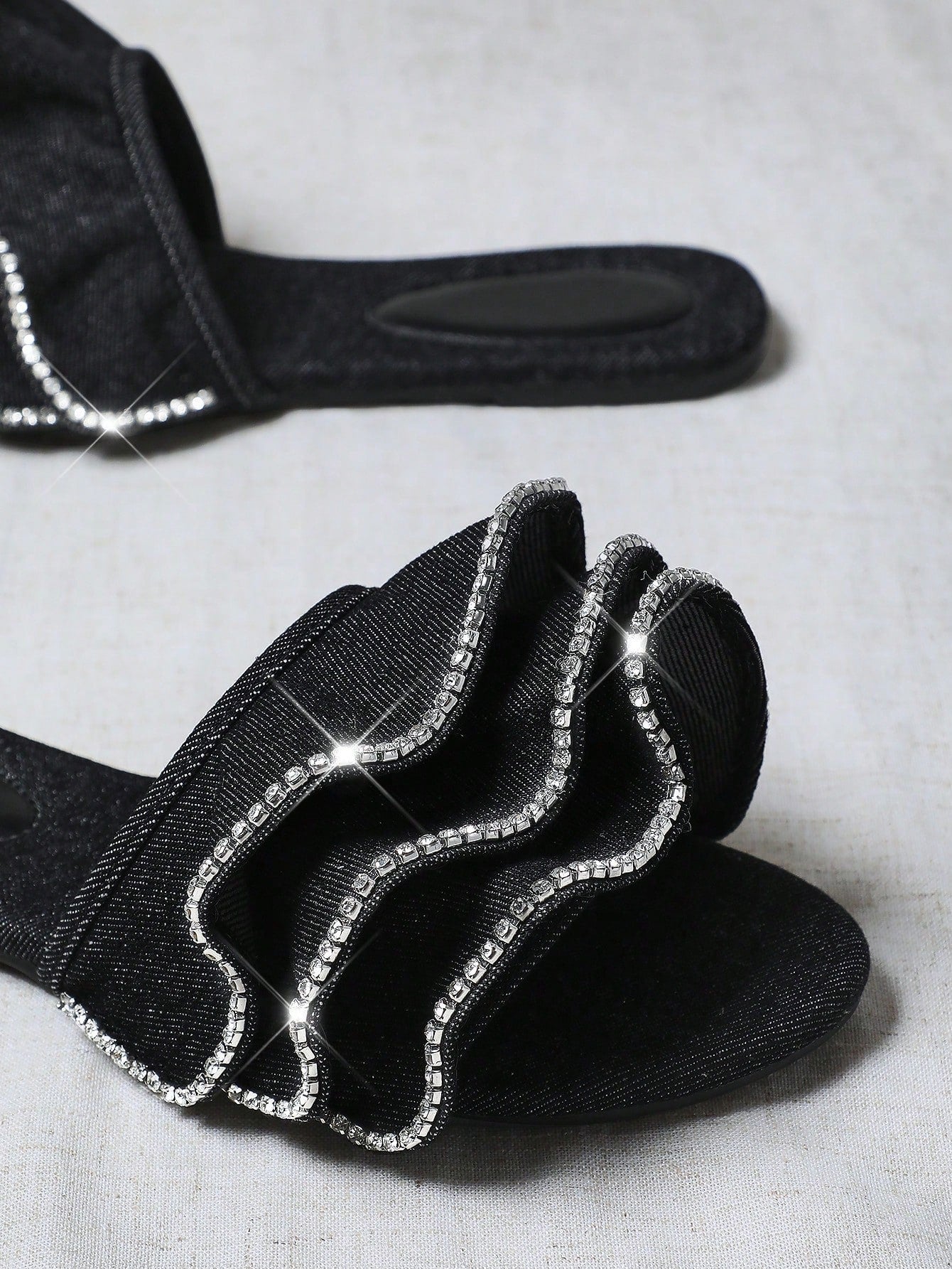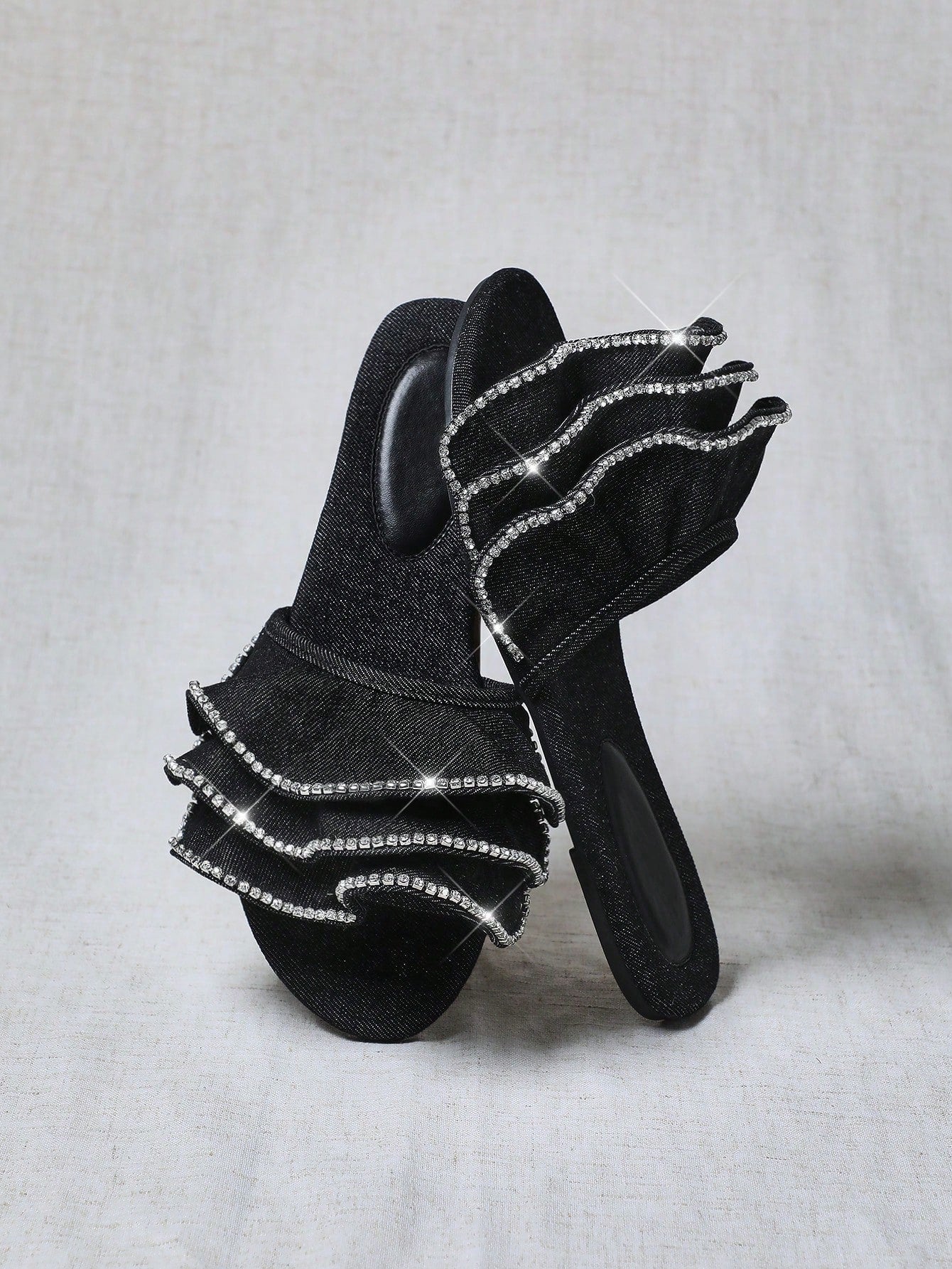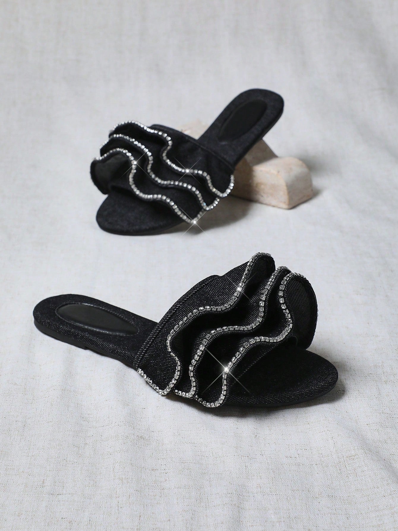 SHUZIA Women's Ruffels Chiffon Fashionable Flat Sandal
