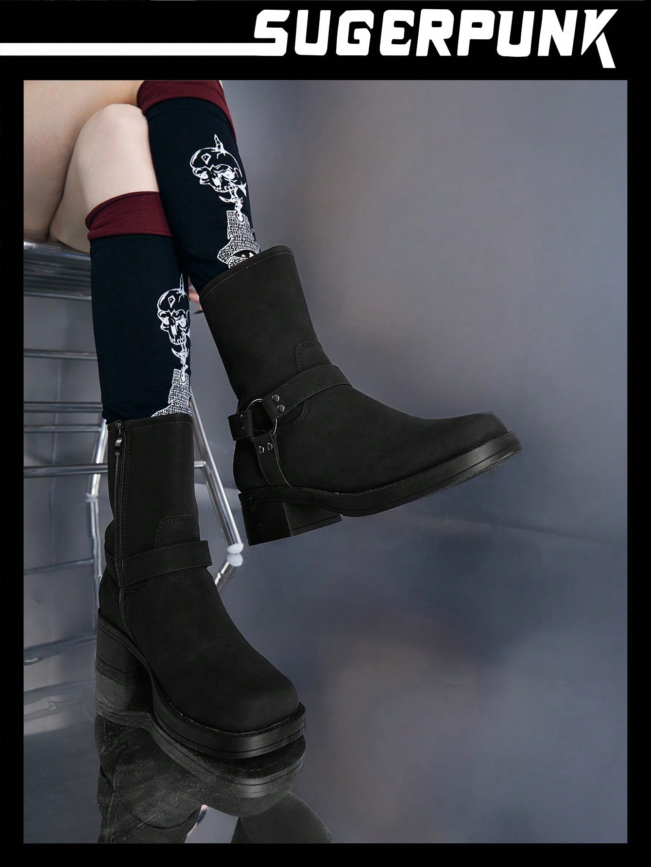 Sugerpunk Women's Simple Daily Black Mid-Calf Boots