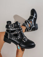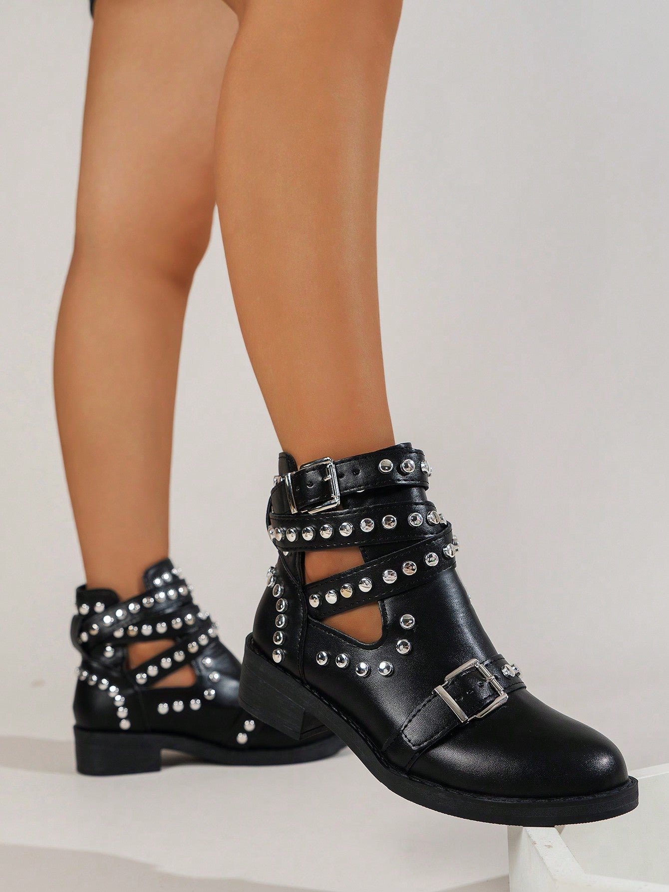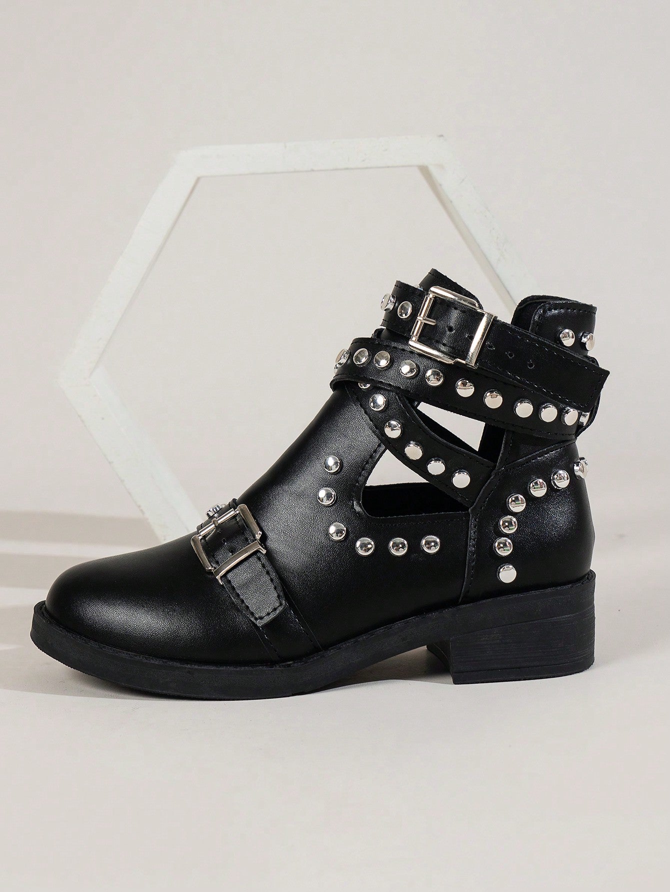 Fall/Winter Women's European & American Style Black Leather Rivet Thick Platform Hollow Short Boots