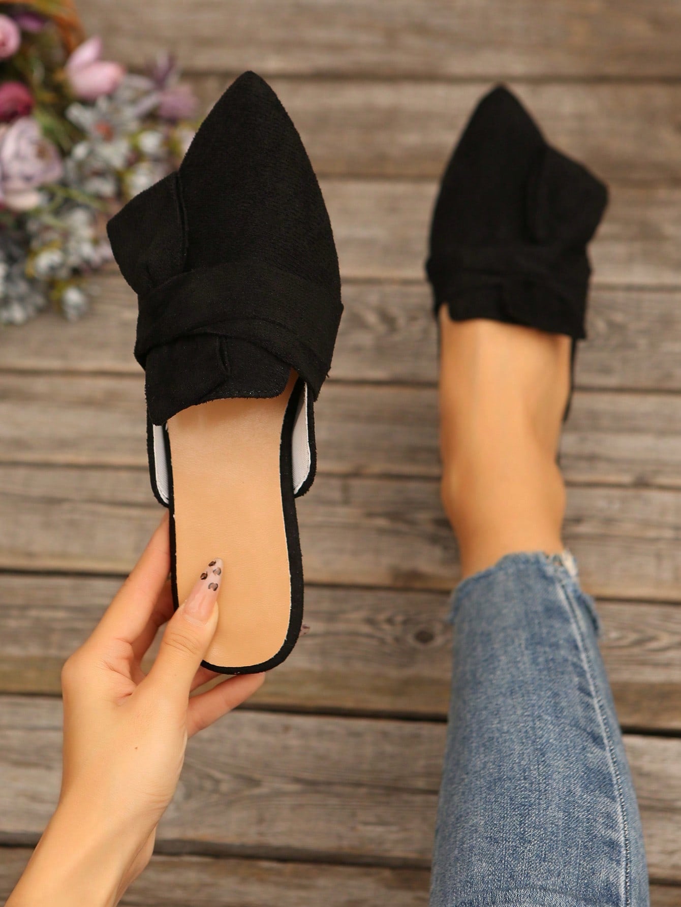 Black Half Backless Mule Shoes