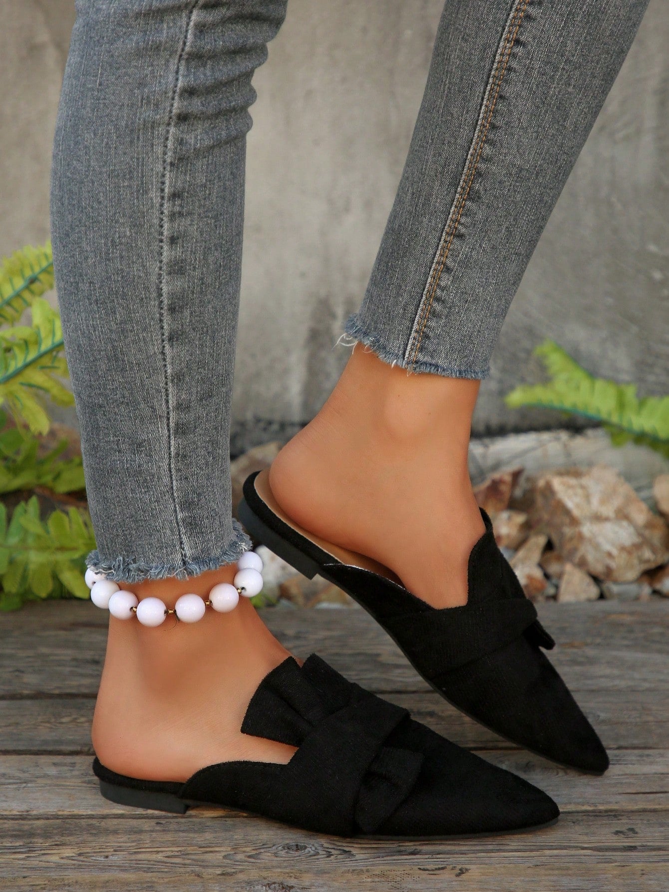 women Black Half Backless Mule Shoes