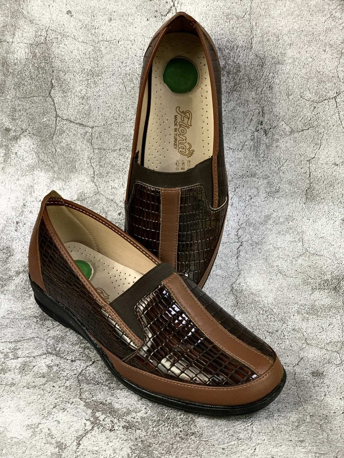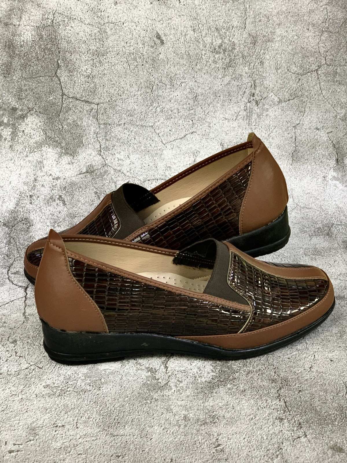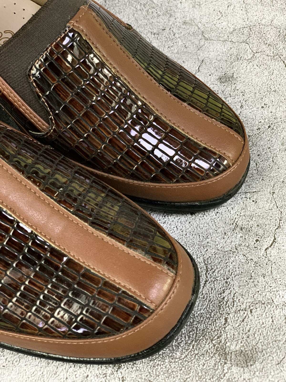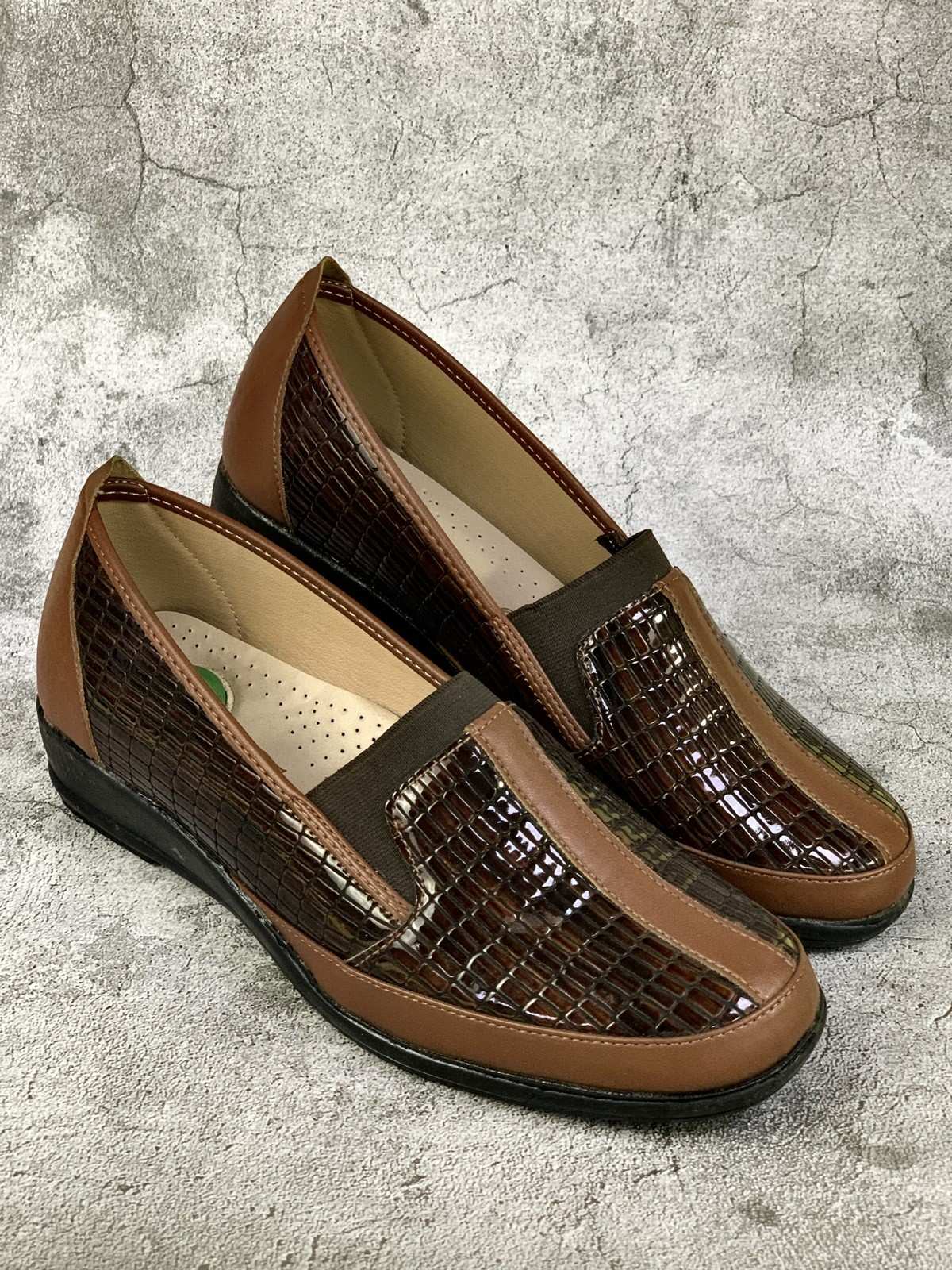 Brown and snakeskin mid-heeled medical shoes