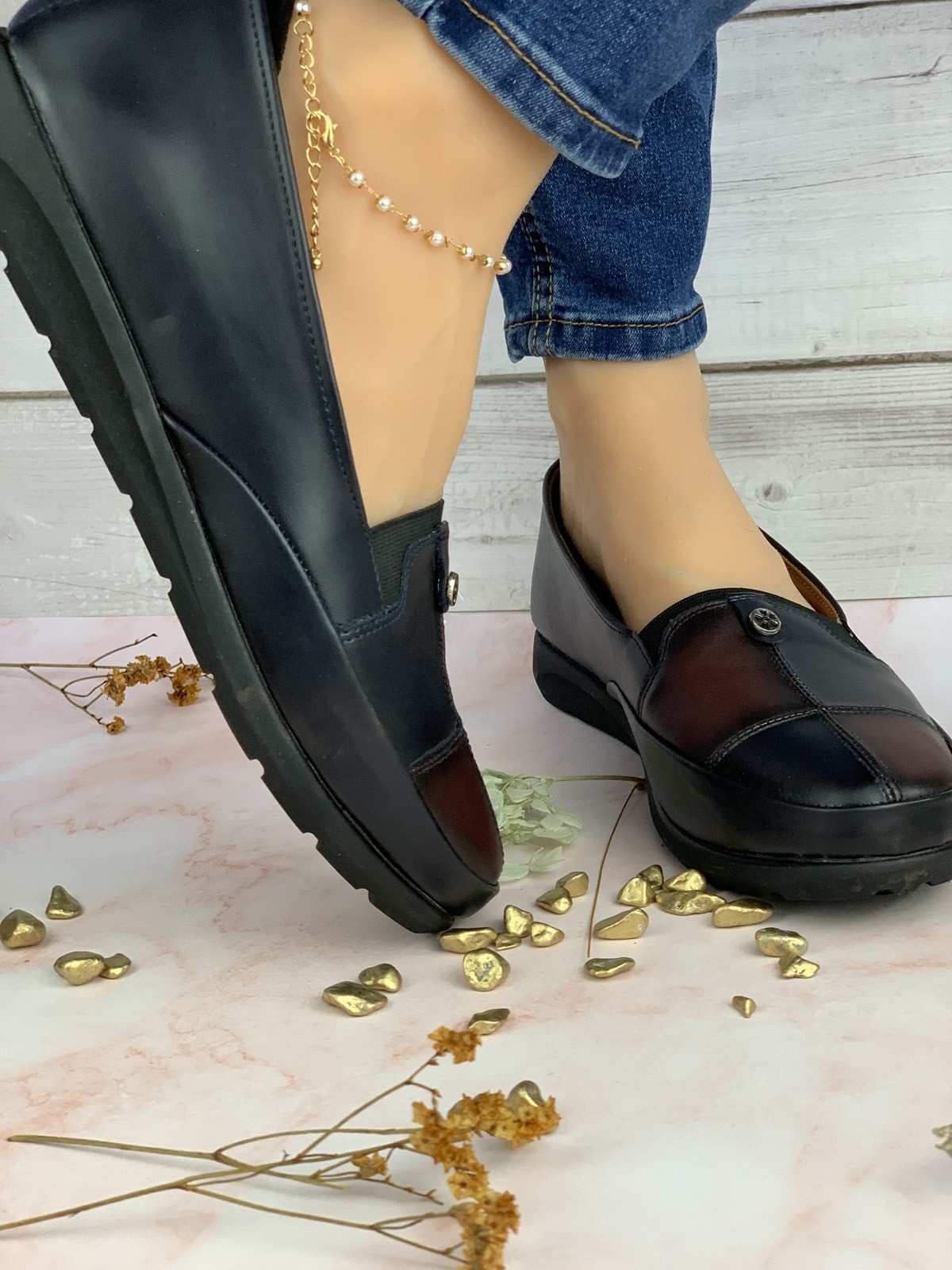 Turkish natural leather shoes with medical insoles with silicone spot for heel comfort and breathable comfort