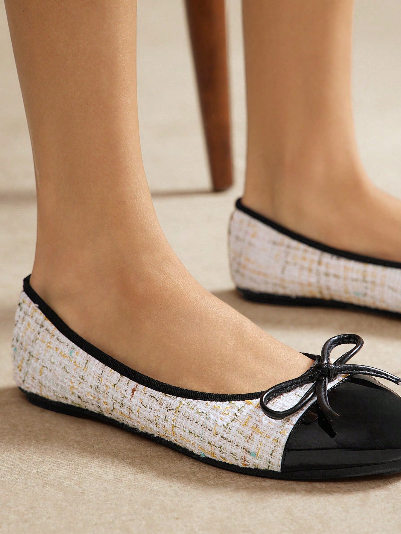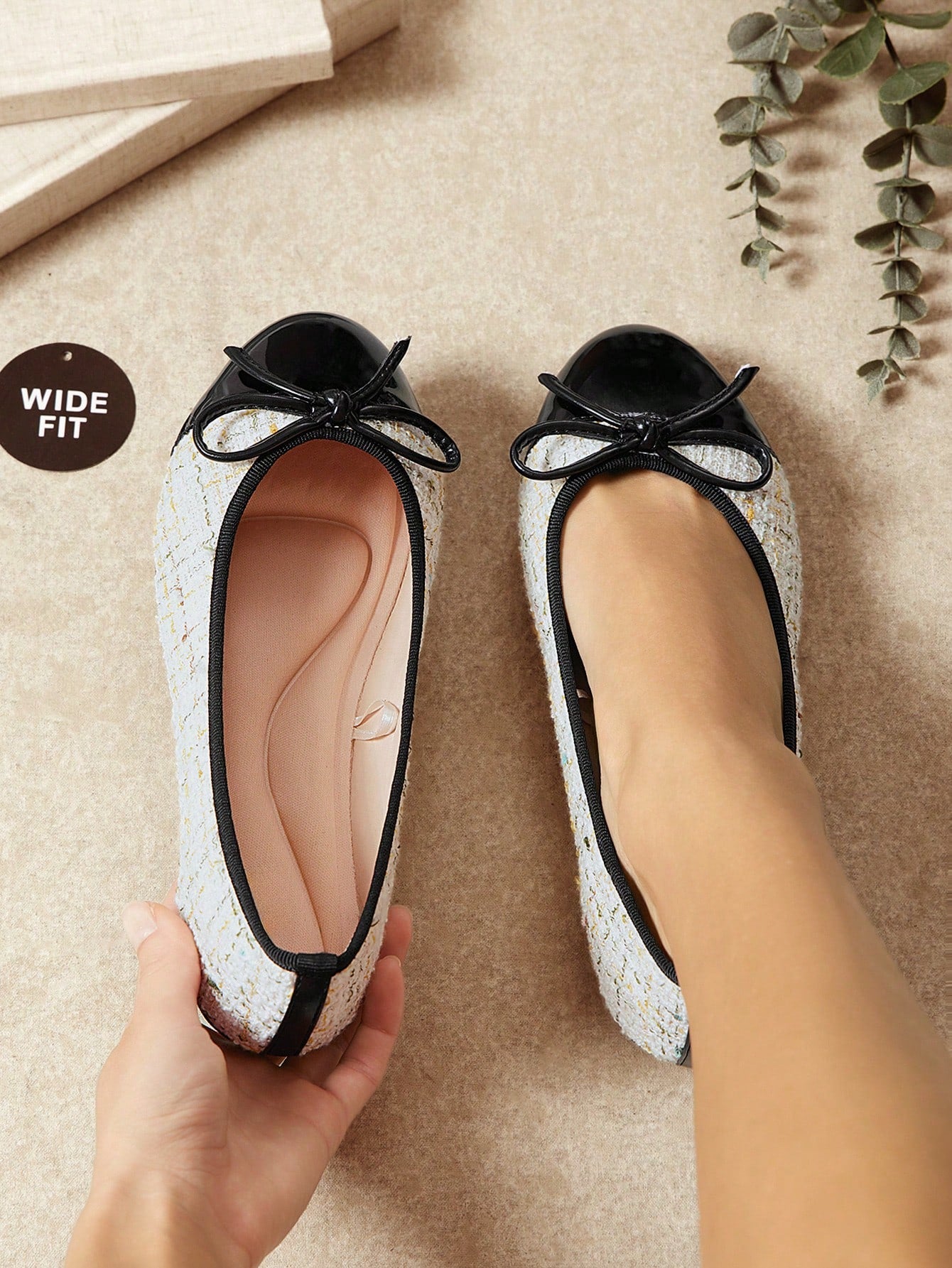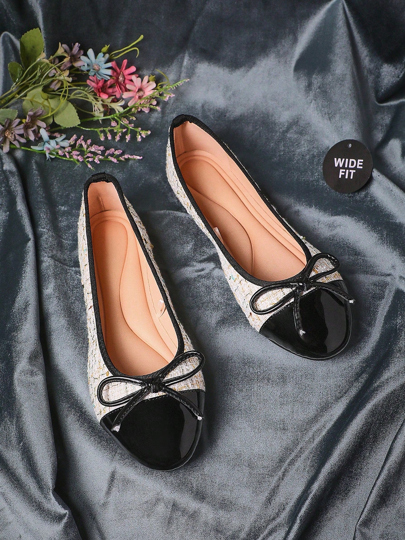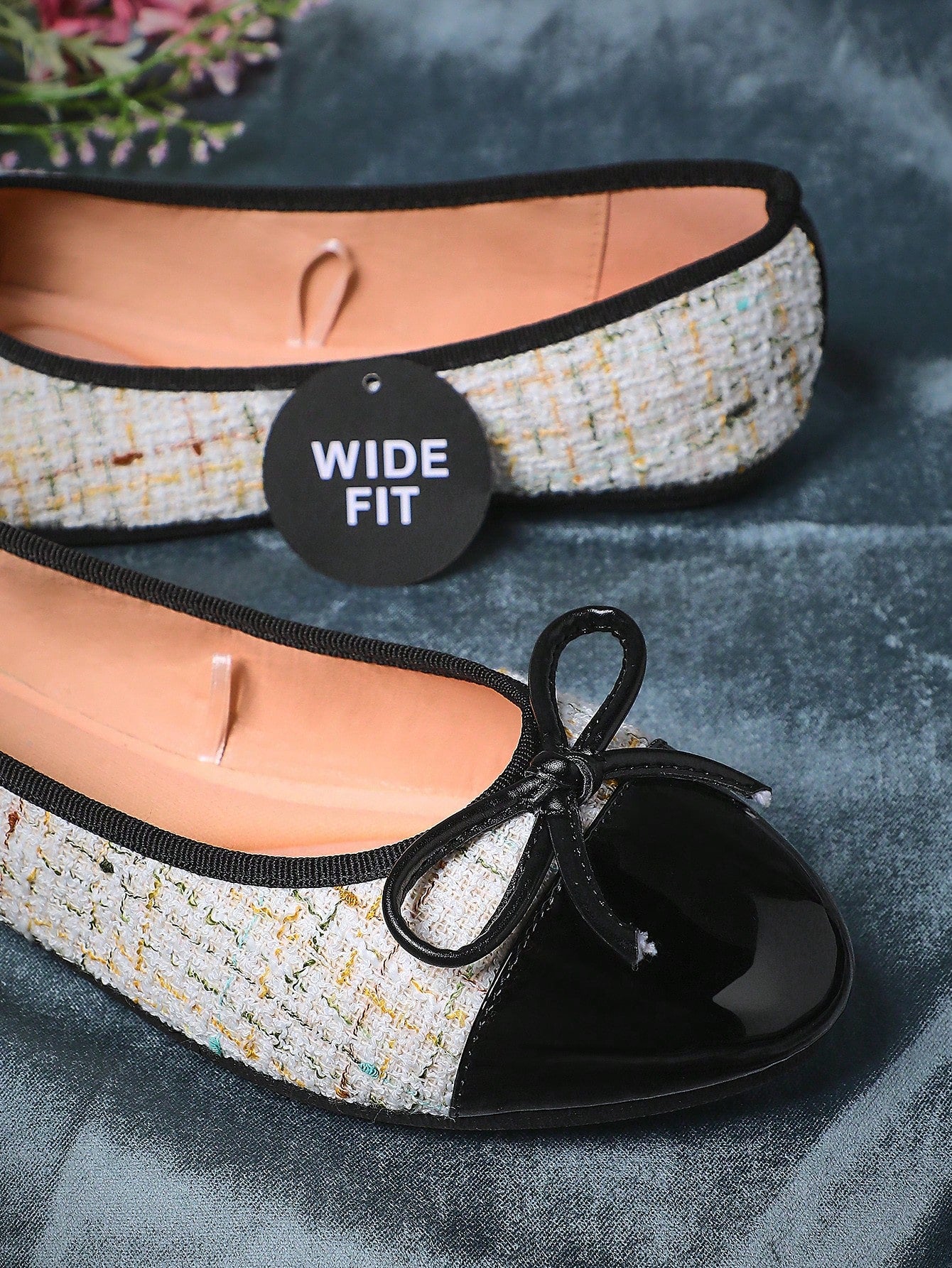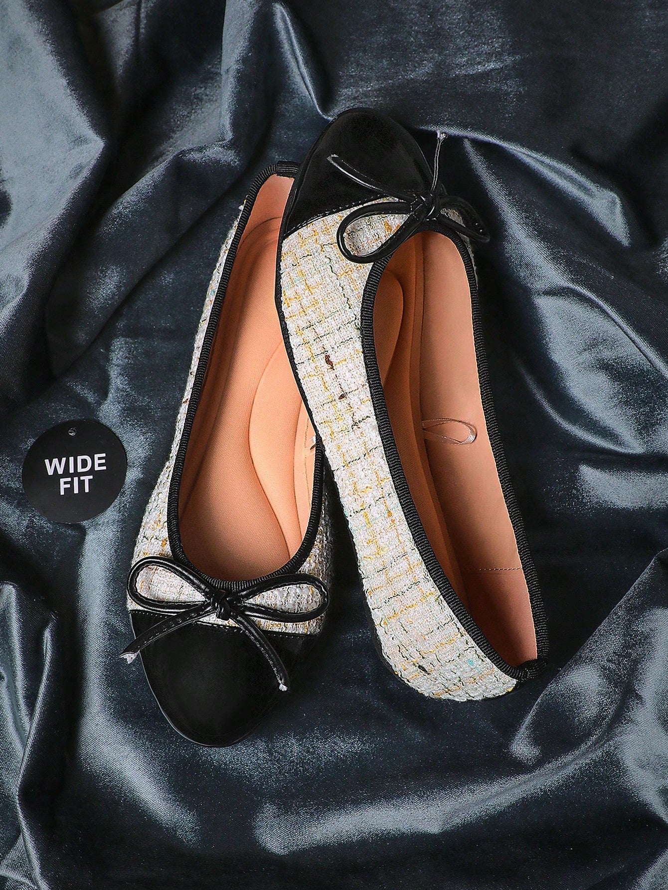 SHUZIA Women's Wide Fit Black Tweed& Architectural Toe Ballet Flats-French-Inspired Geometric Stitch Mother's Day Present