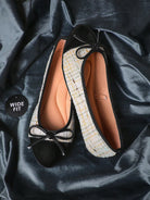 women SHUZIA Women's Wide Fit Black Tweed& Architectural Toe Ballet Flats-French-Inspired Geometric Stitch Mother's Day Present