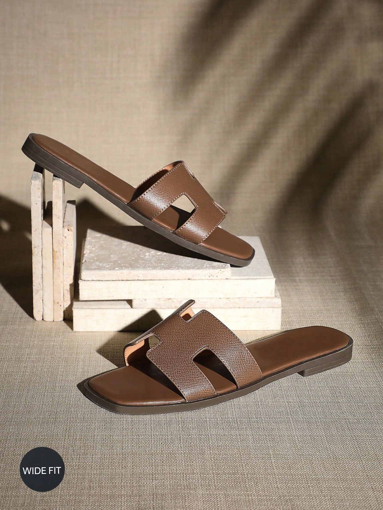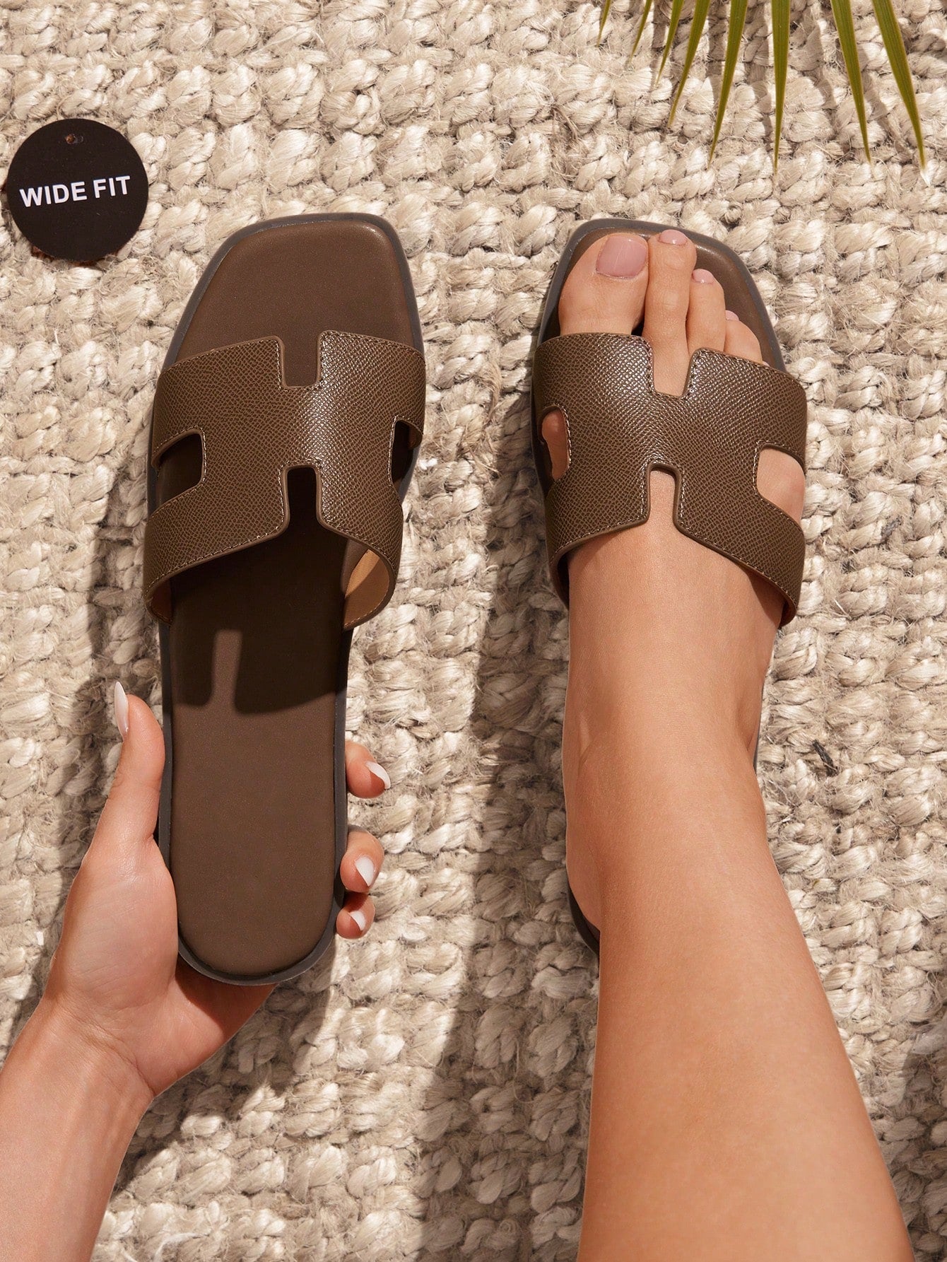 SHUZIA Women's Wide-Fit Fashionable And Versatile Slip-On Flat Sandals