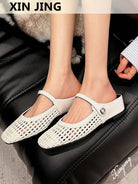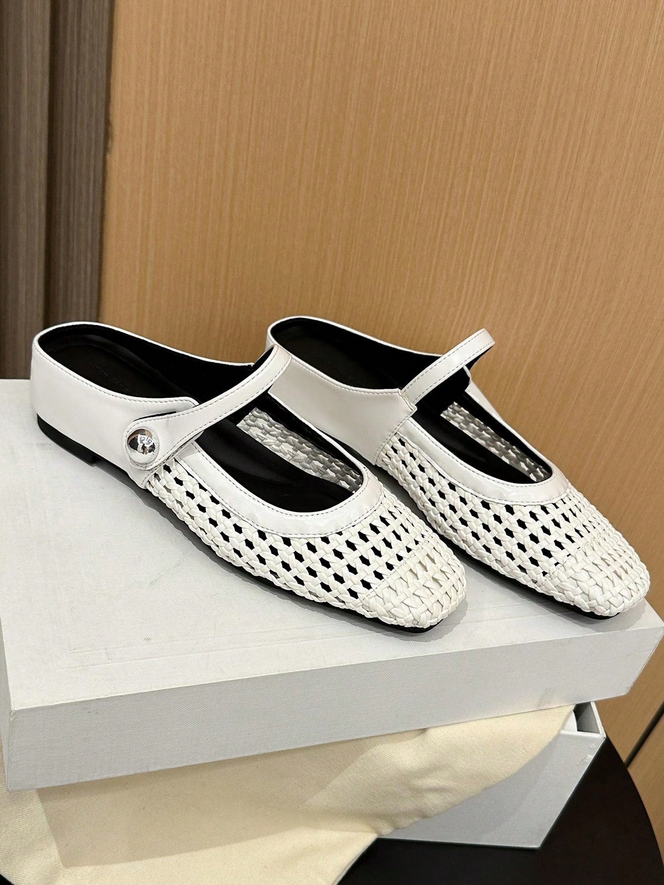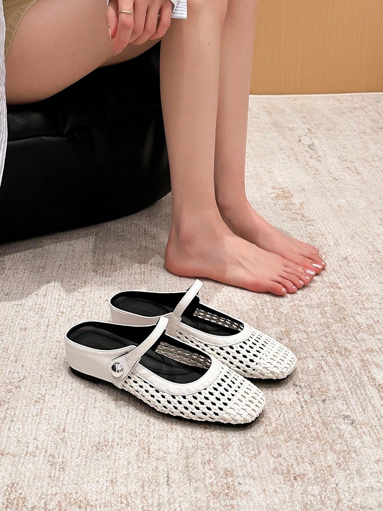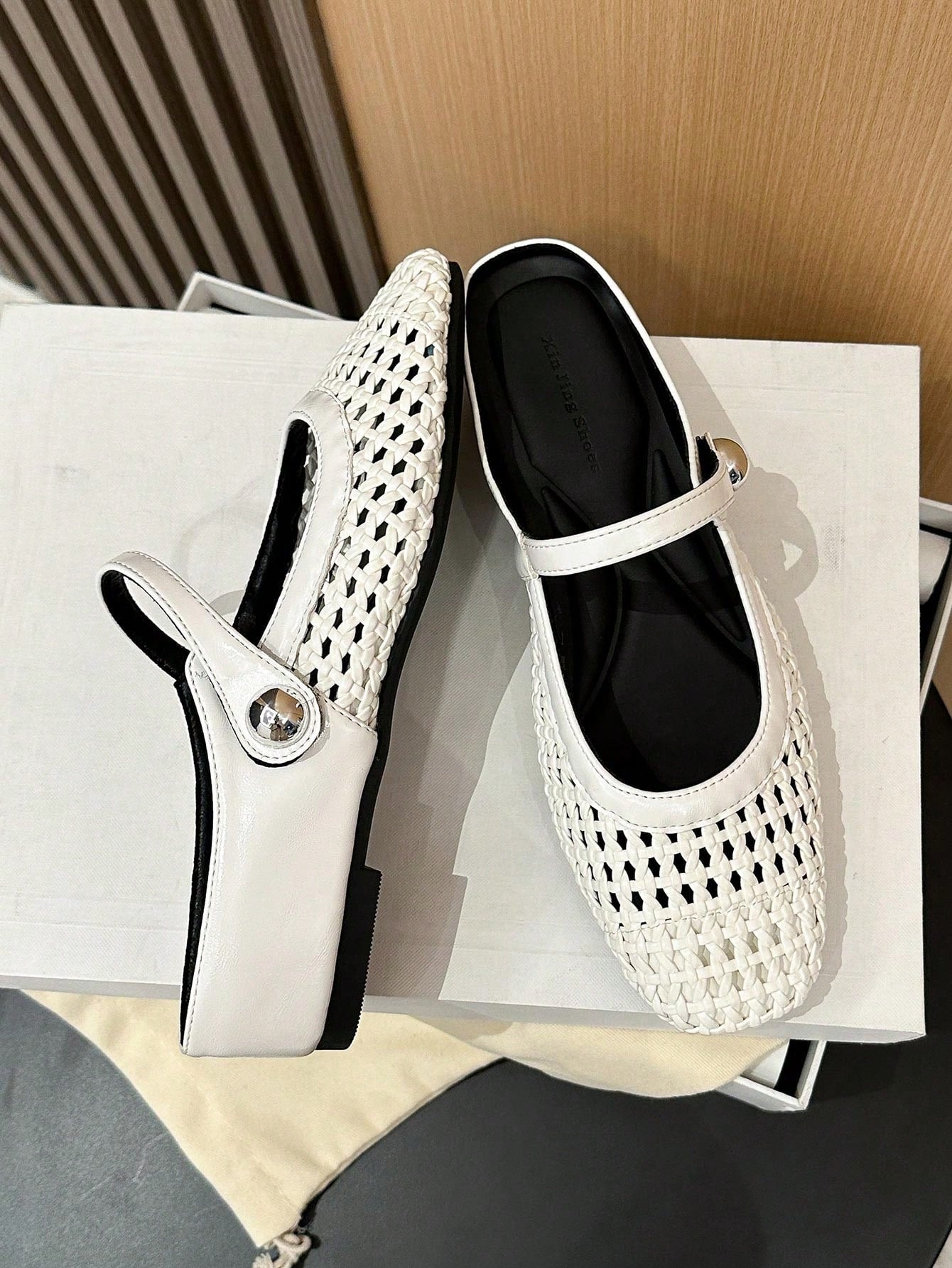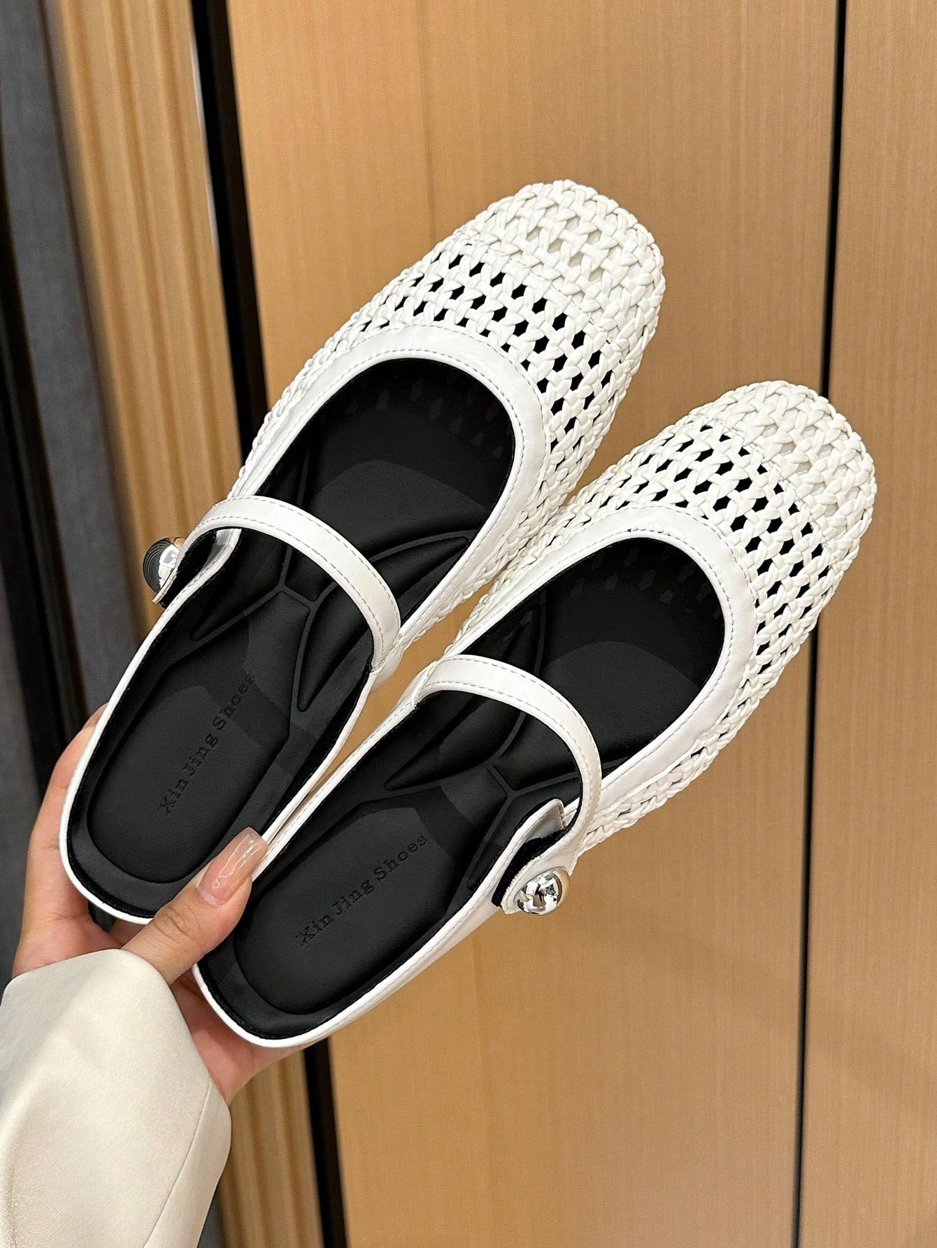 Women's Fashion Versatile Woven Hollow Strap Flat Bottom Increased Height Casual Shoes