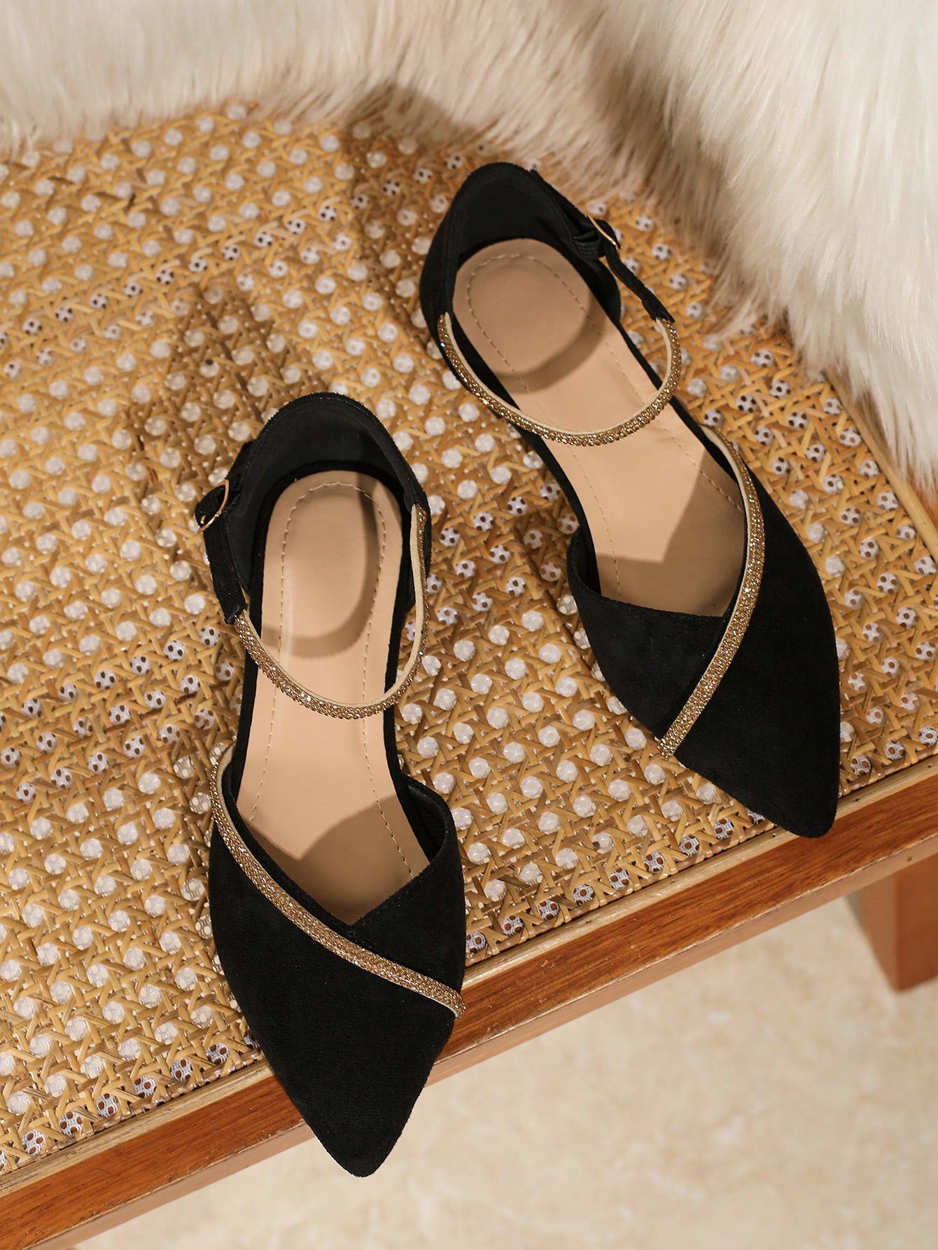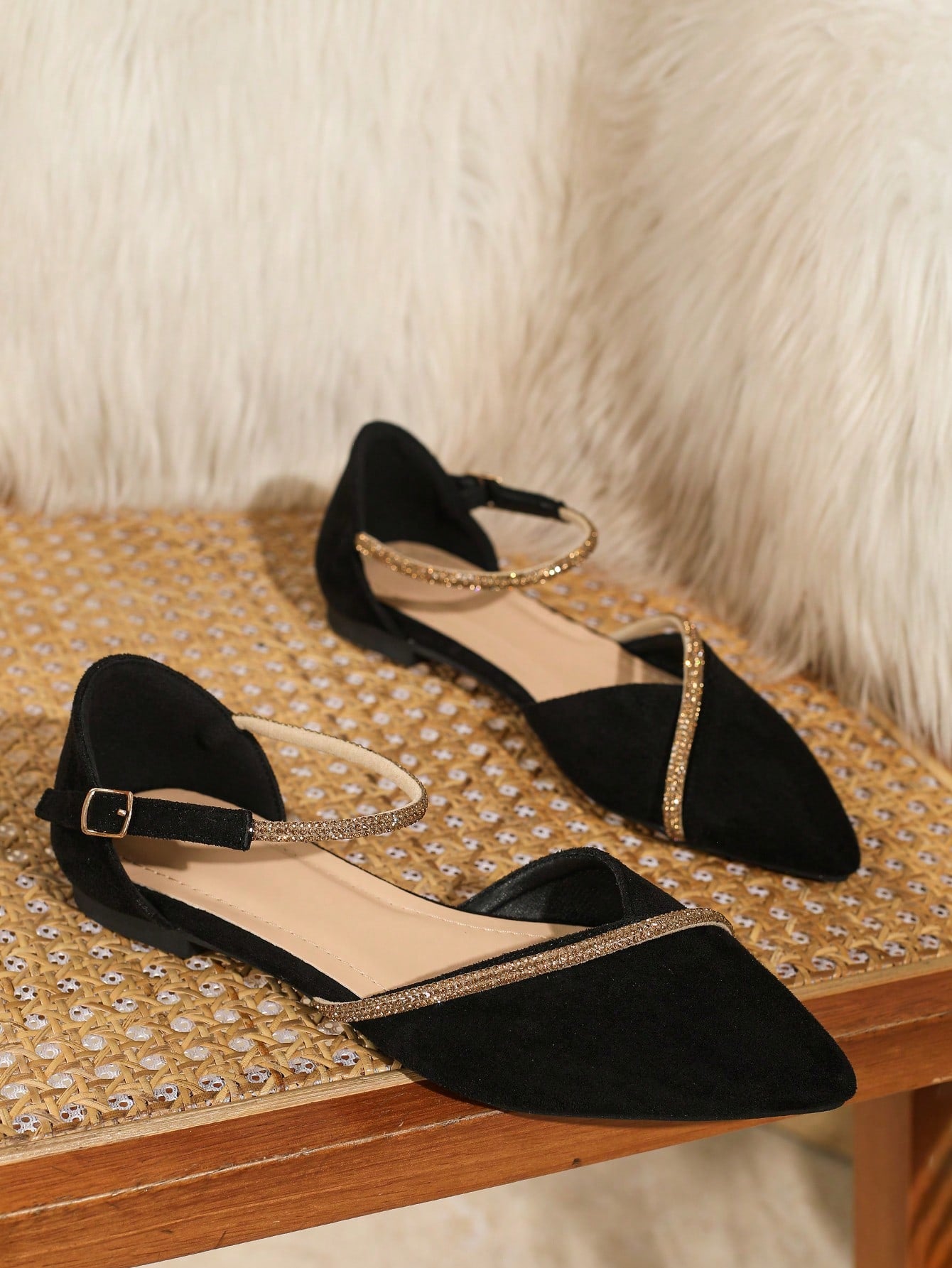 Women's Flat Shoes With Gold Rhinestone Vamp