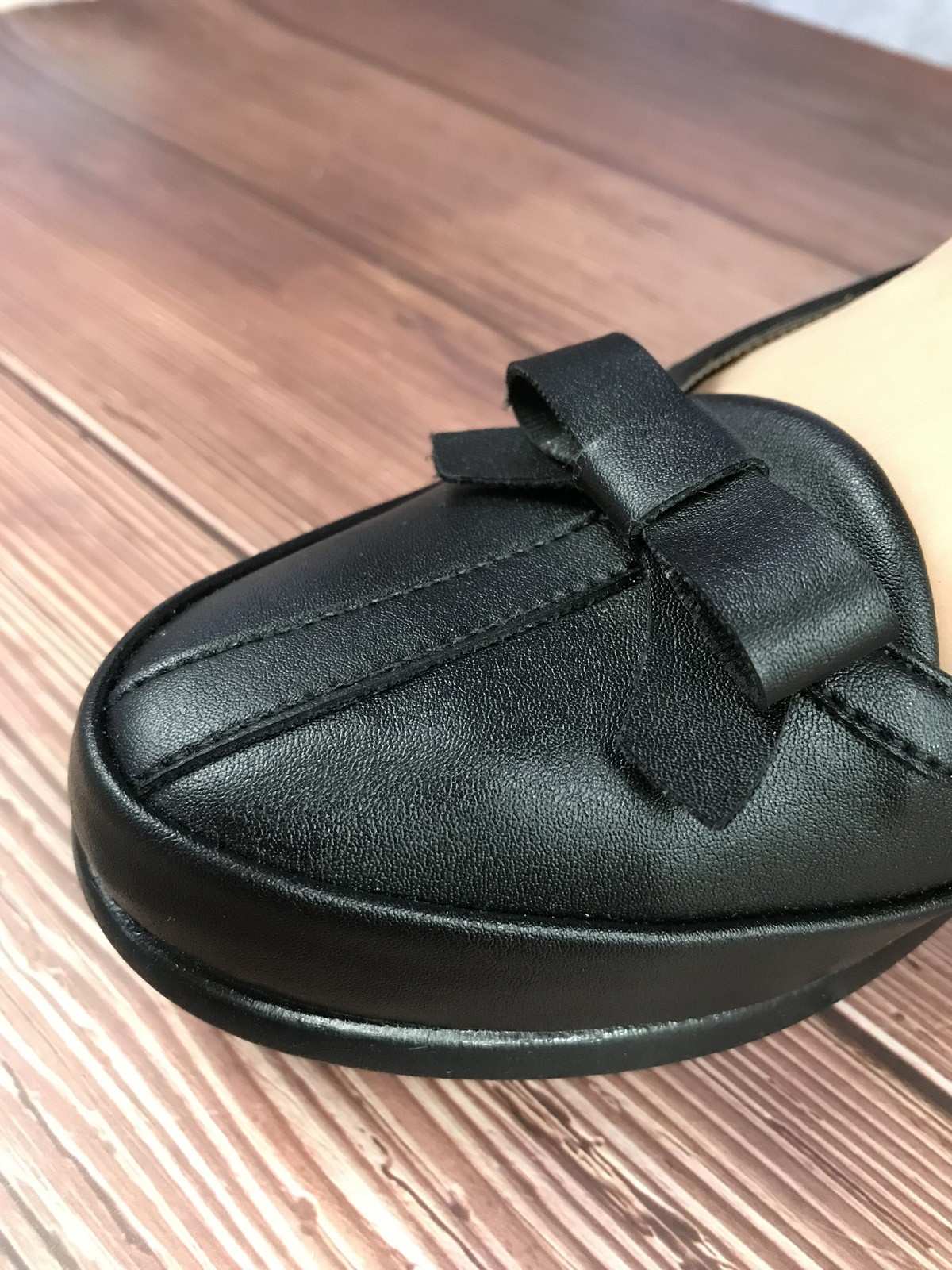 Comfortable black leather women's shoes with leather strap, medical medium heel