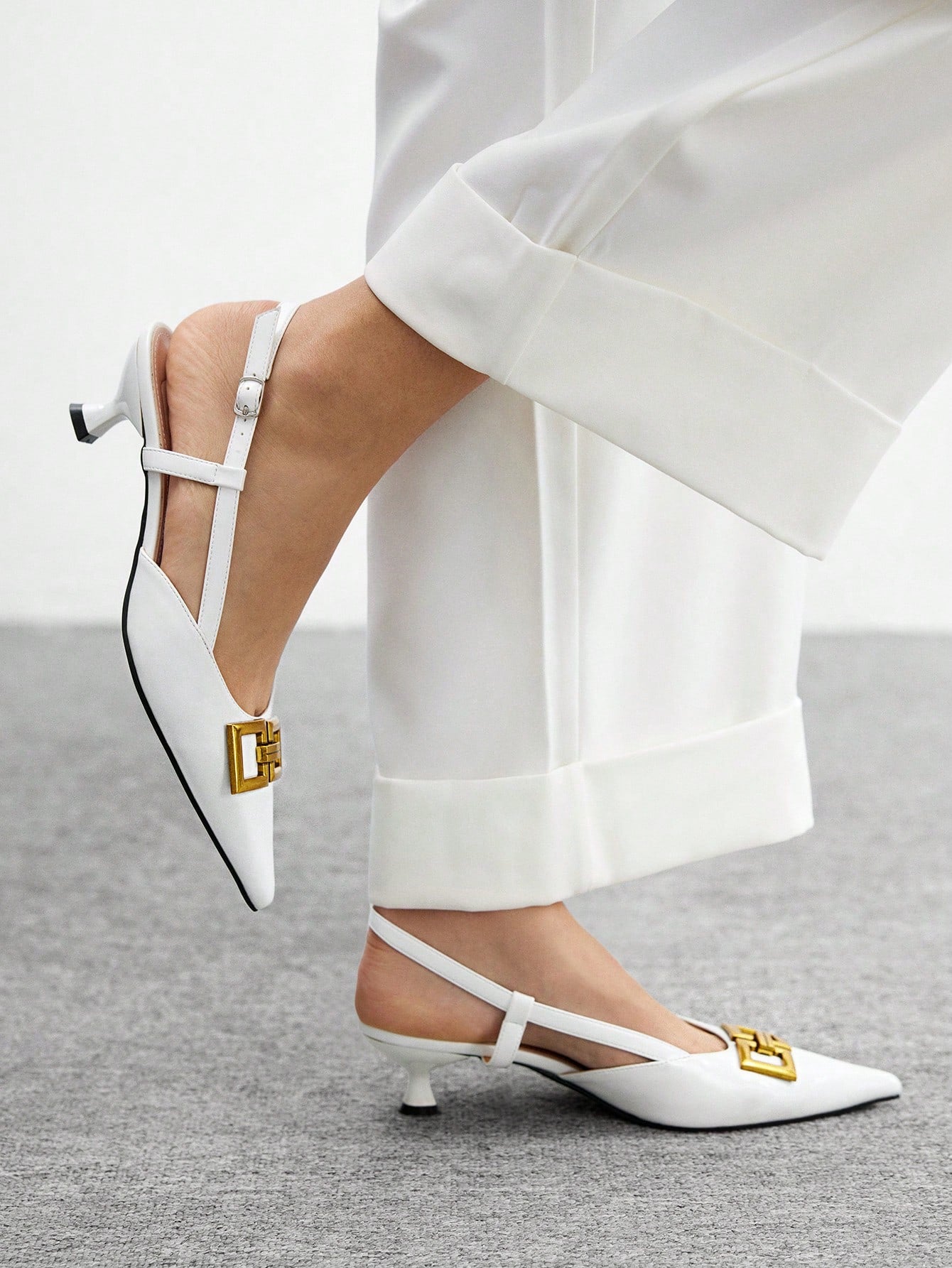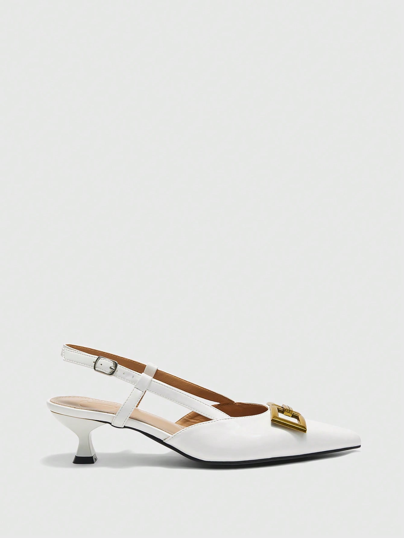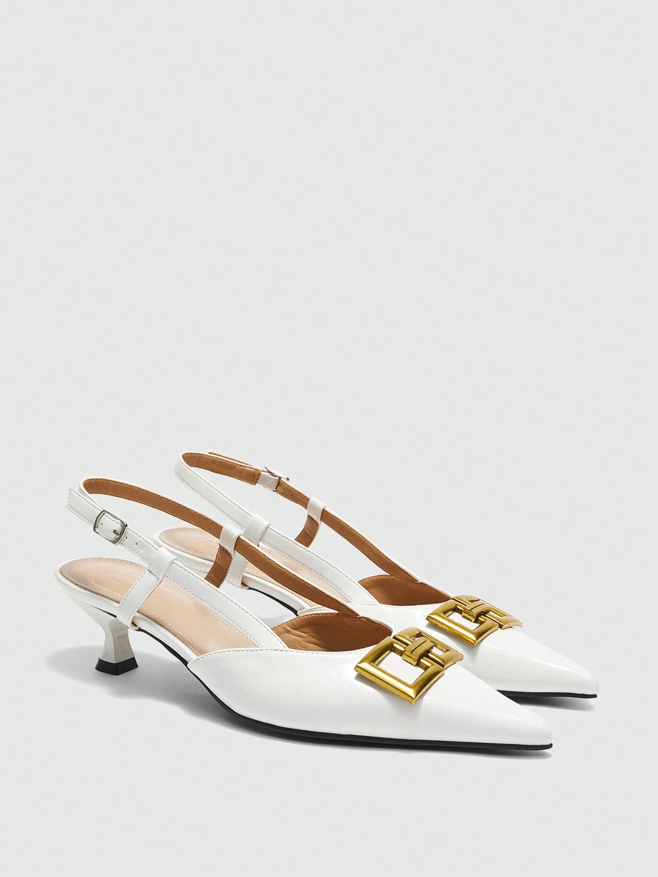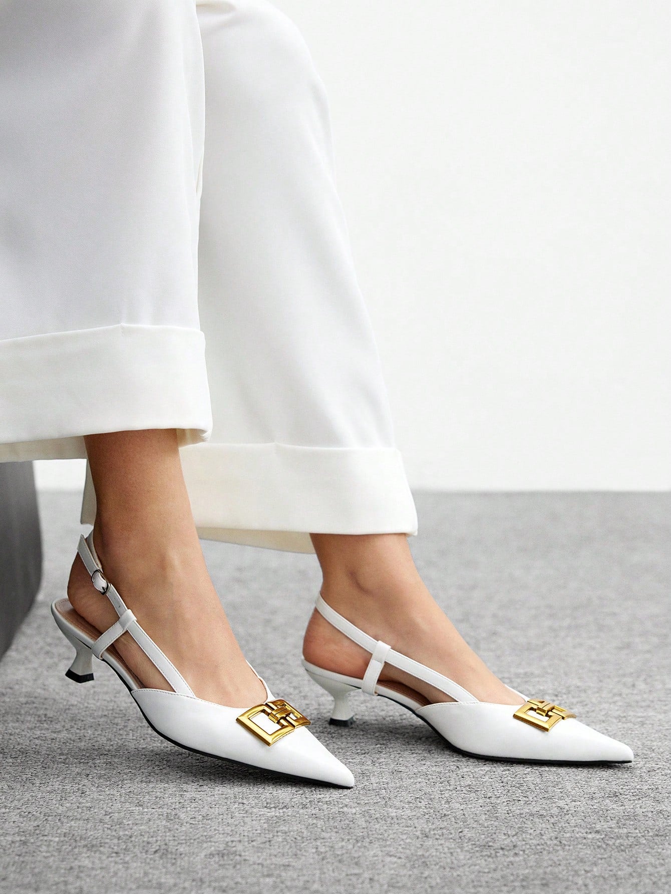 CUCCOO BIZCHIC Fashionable Women Pointed Toe Chain Decor Slingback Kitten Heel Pumps