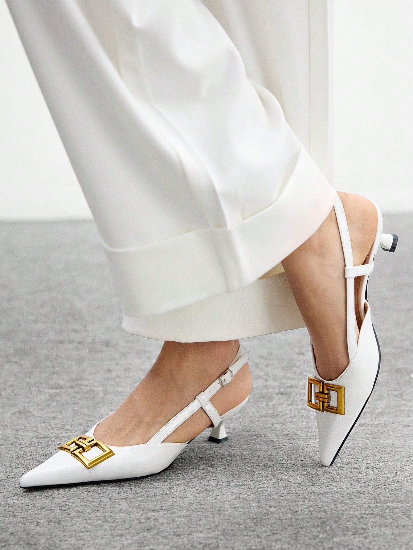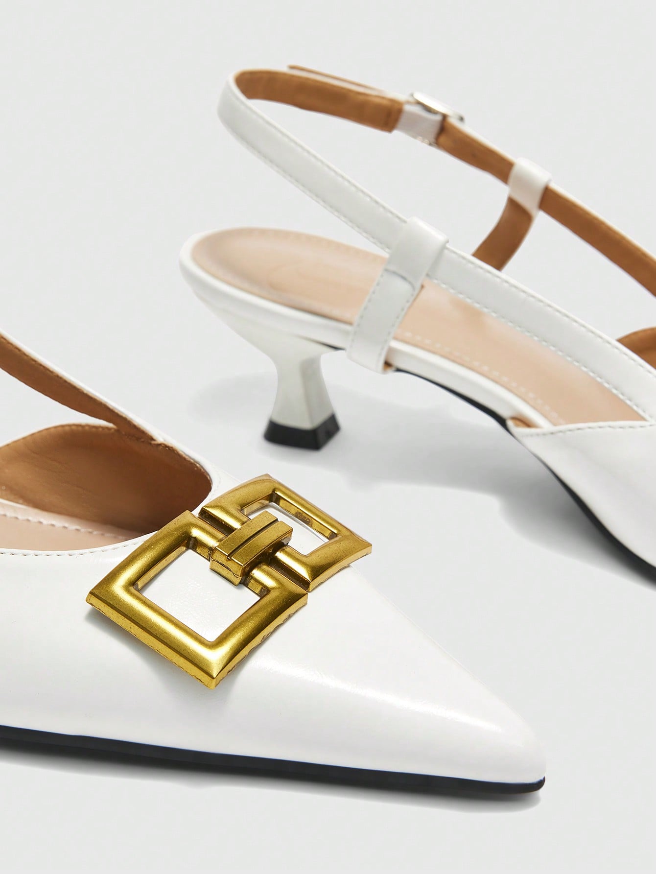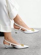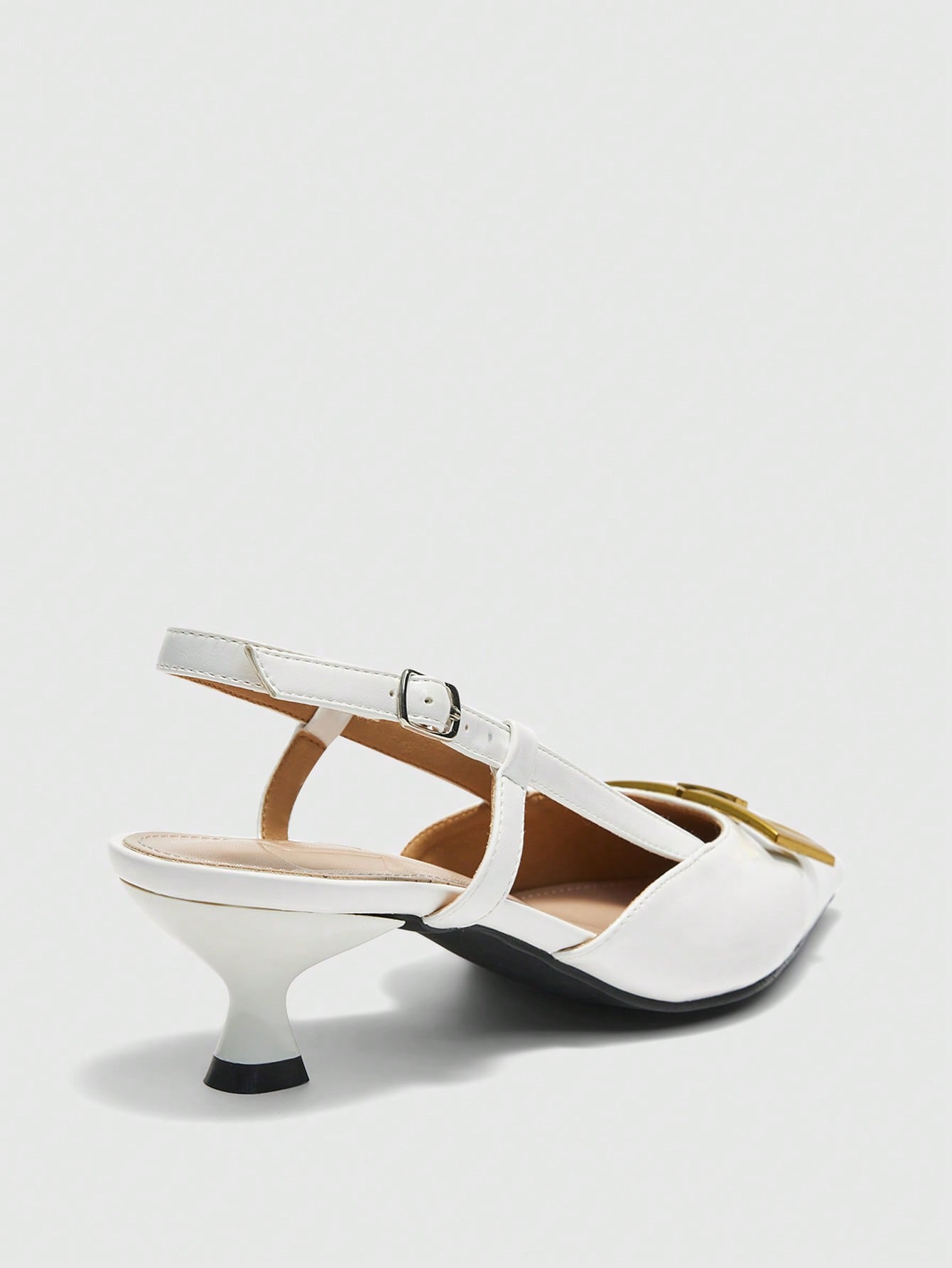 CUCCOO BIZCHIC Fashionable Women Pointed Toe Chain Decor Slingback Kitten Heel Pumps