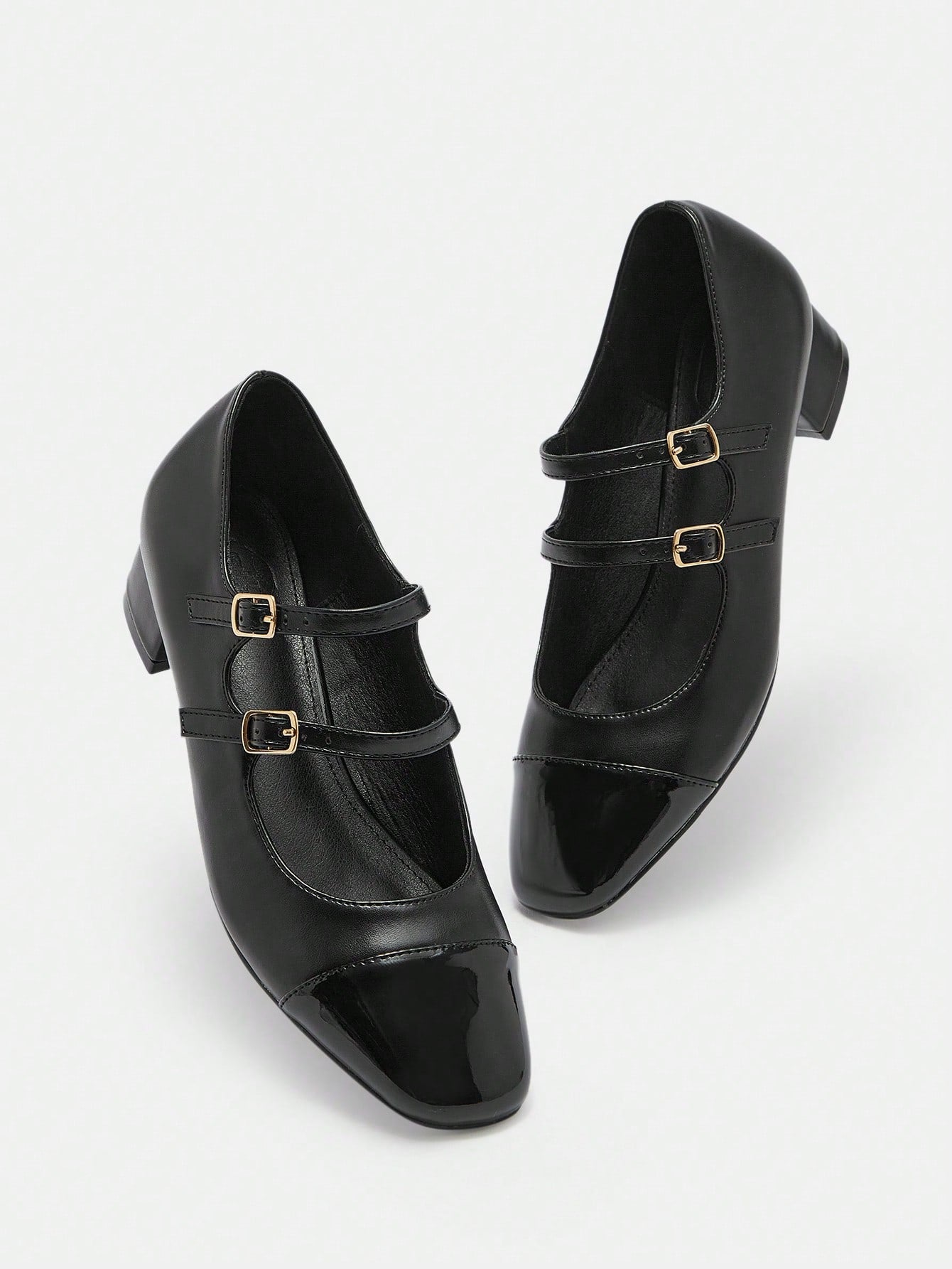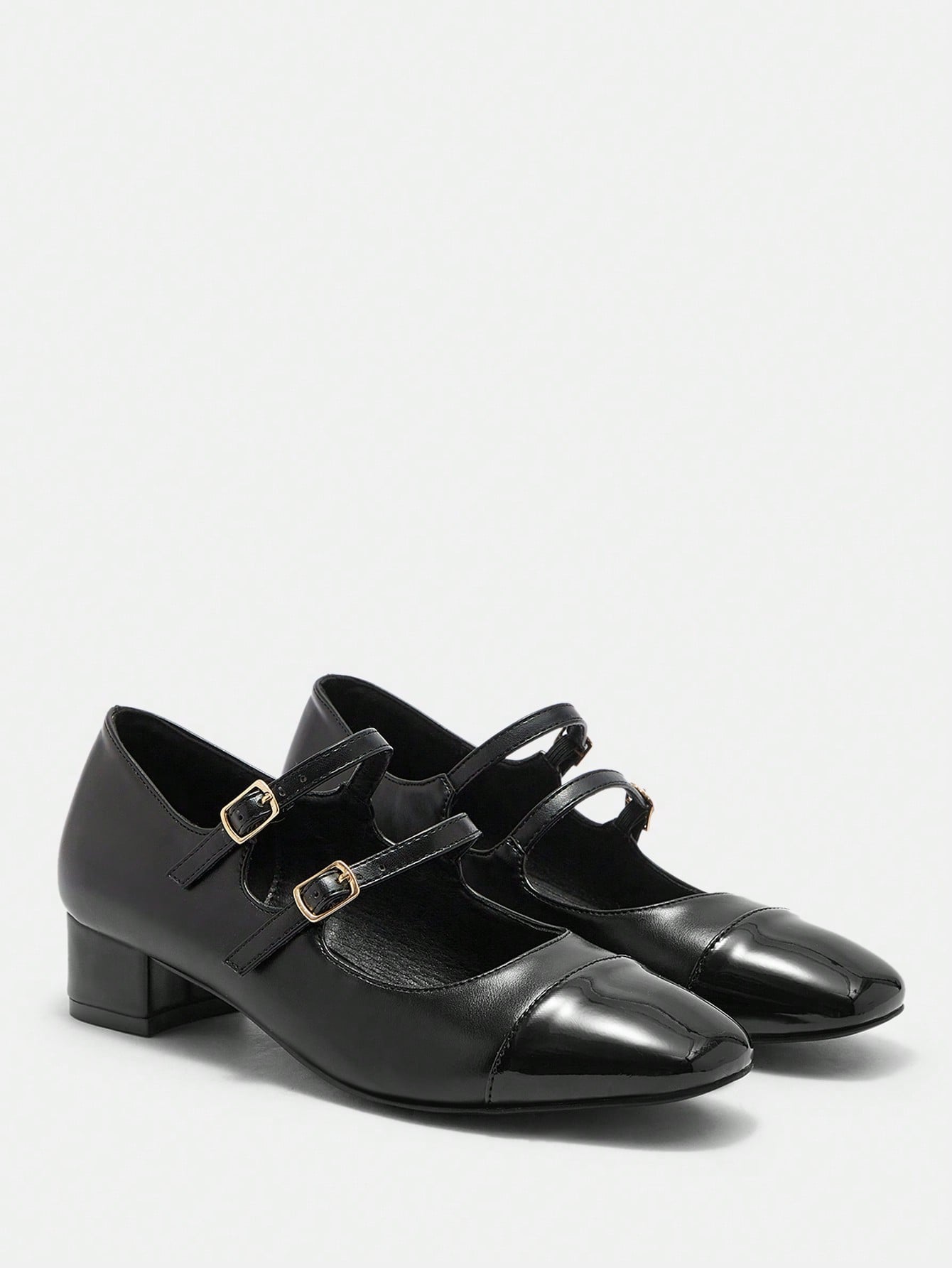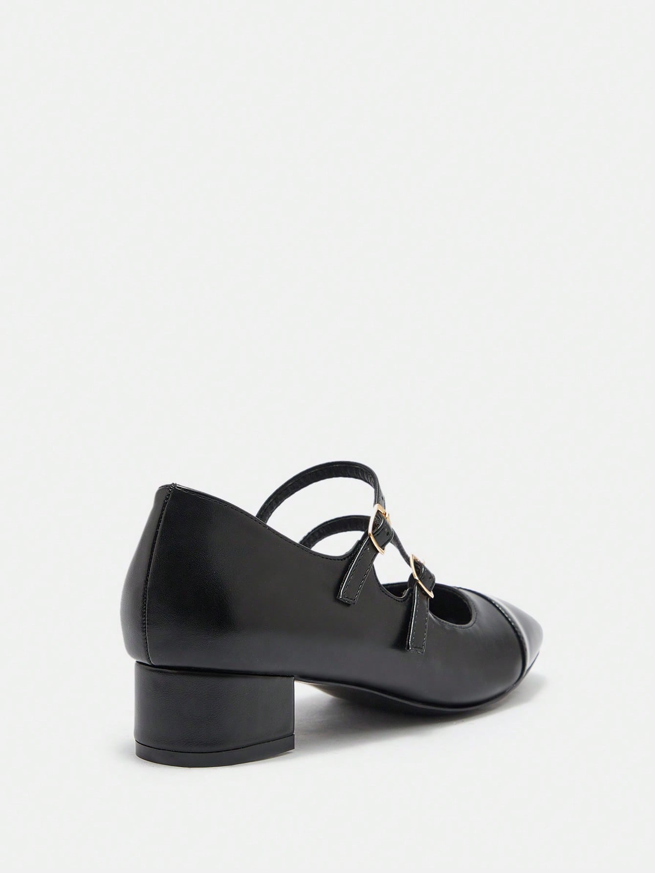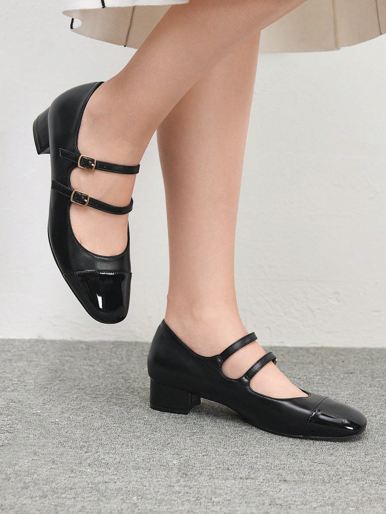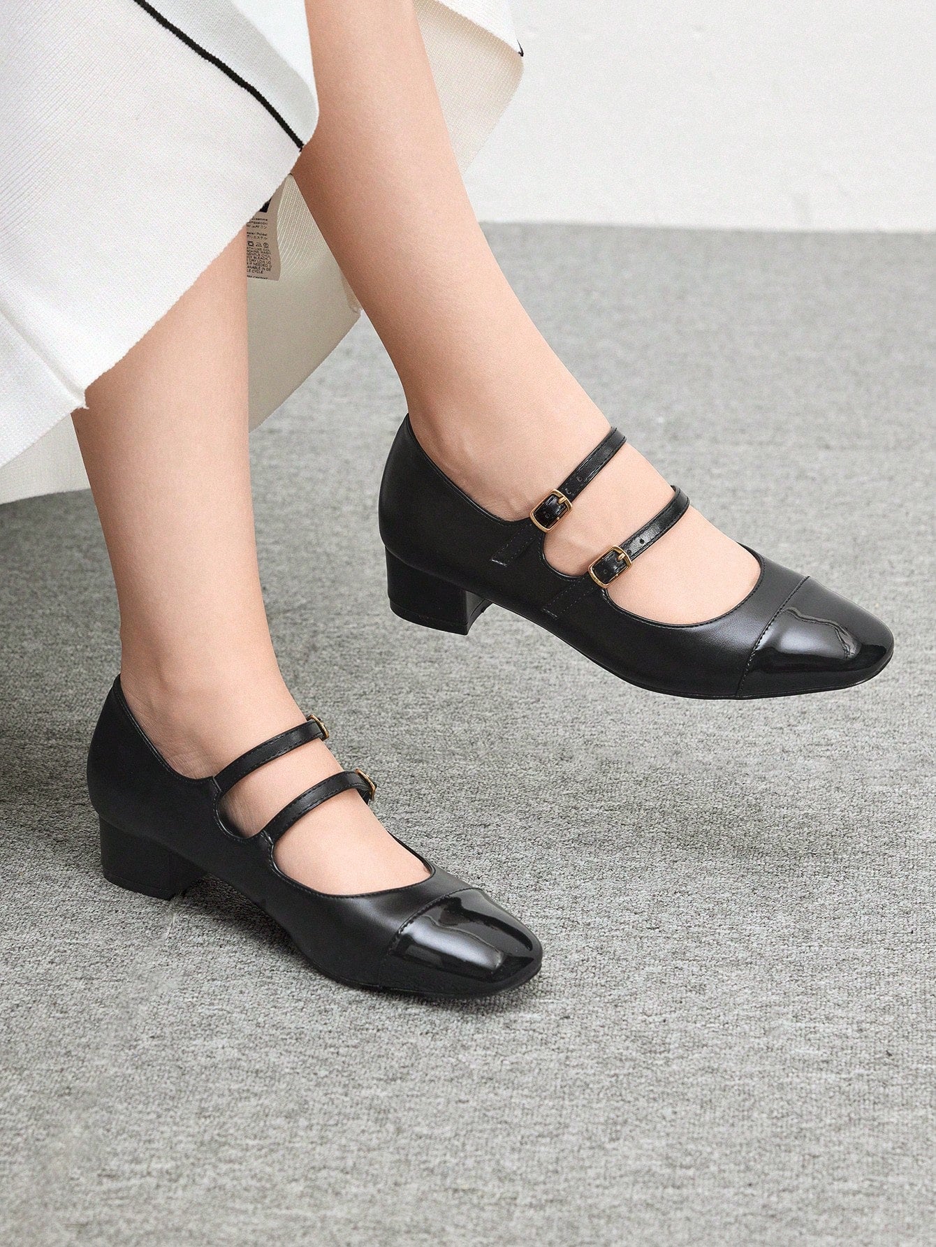 CUCCOO BIZCHIC Women Round Toe Elegant Double Strap High Heel Shoes, Fashion For Work And Banquet New