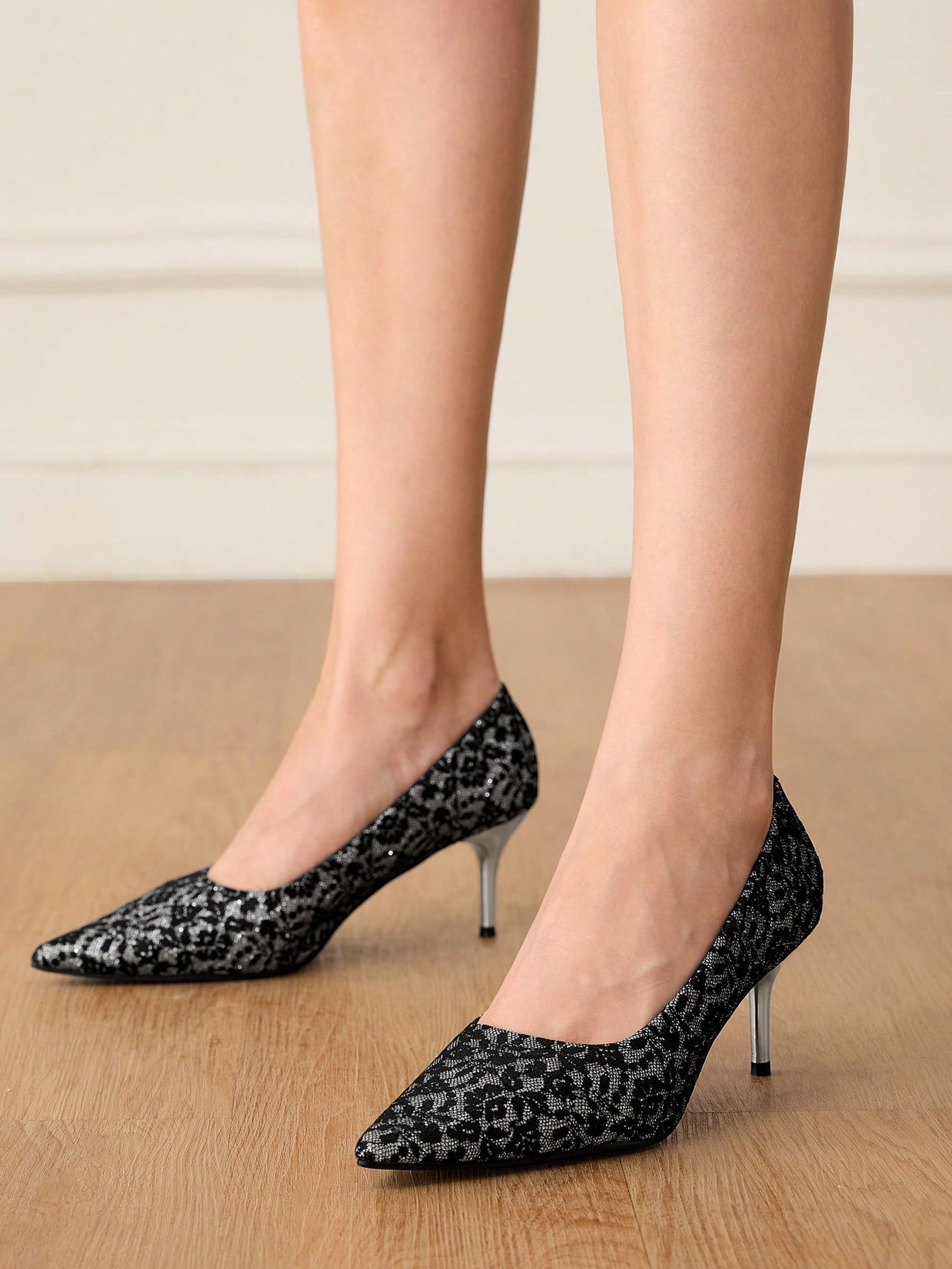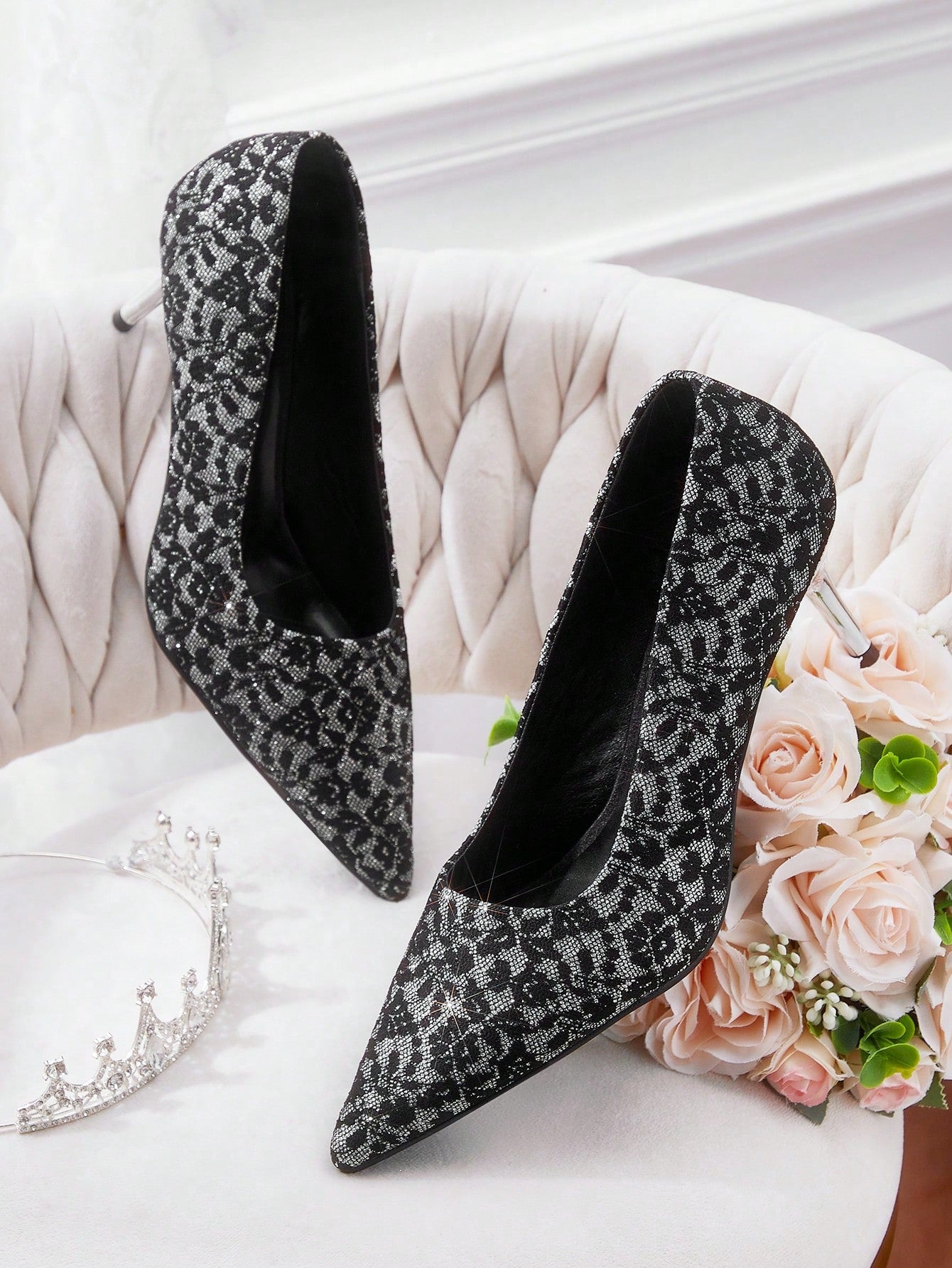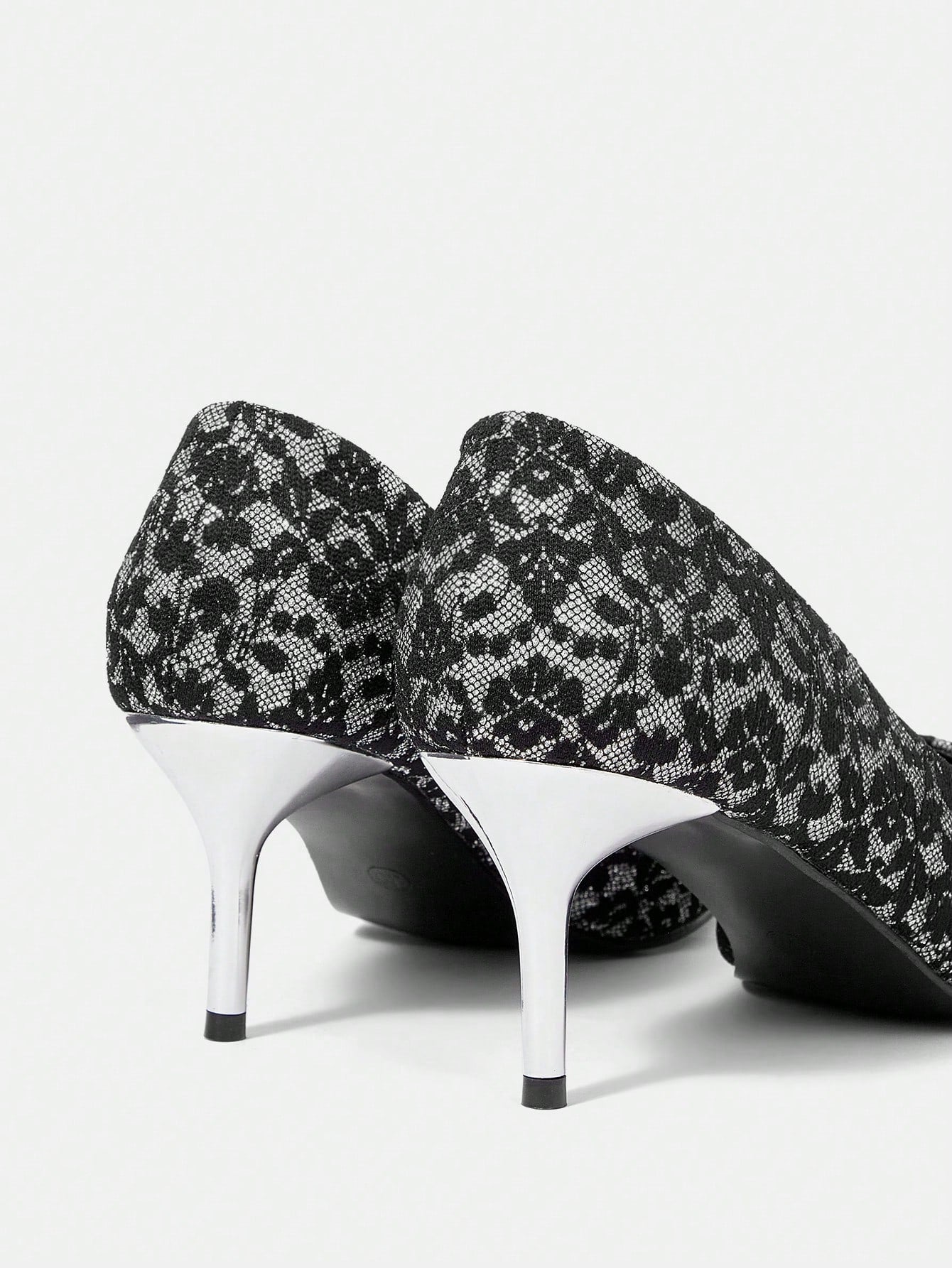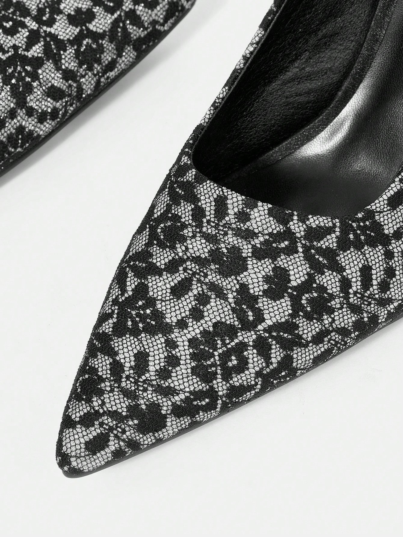 CUCCOO HITCHD Women's Lace Slip-On Stiletto High Heel Shoes