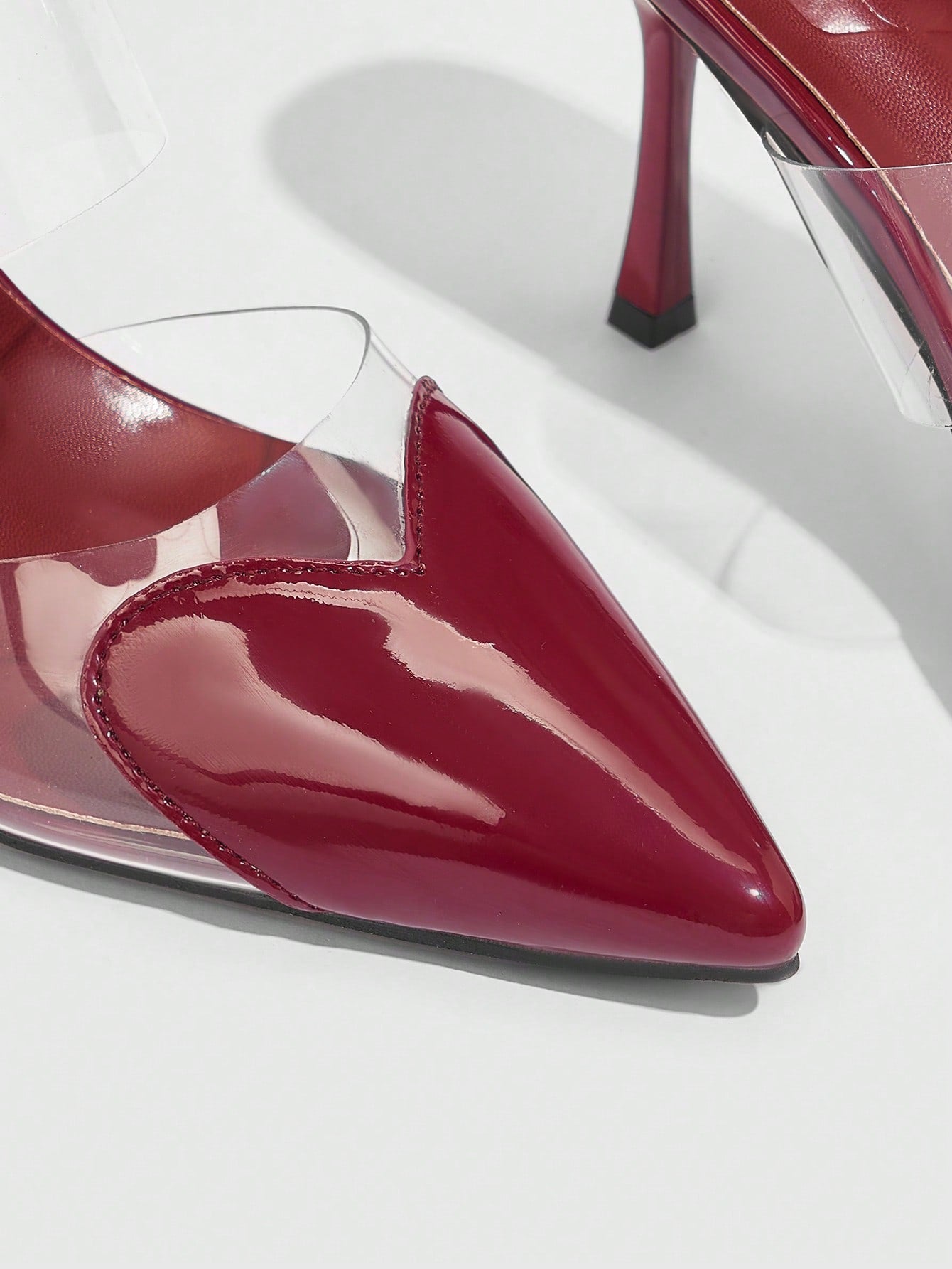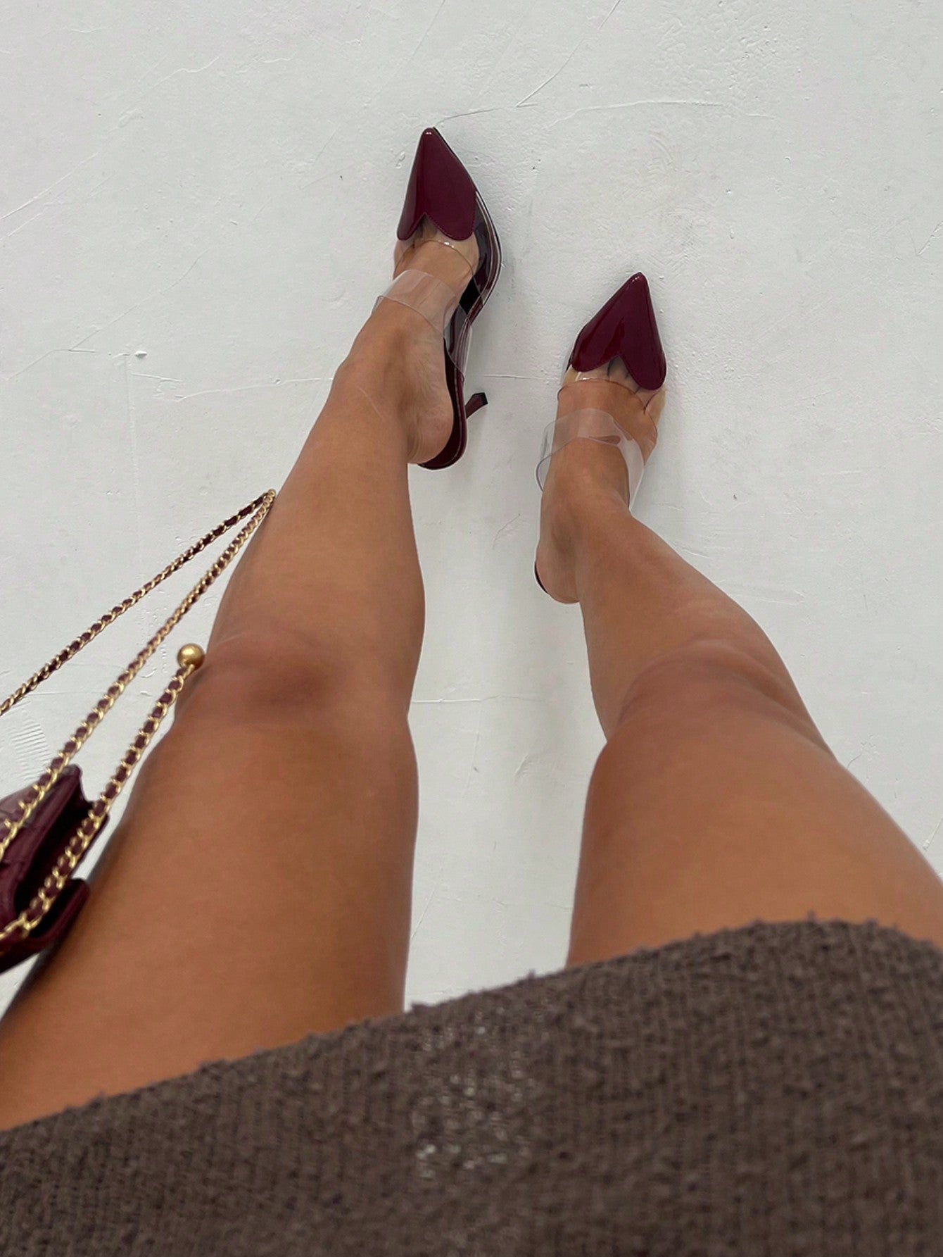 CUCCOO SZL Women's Solid Pointed Toe Fashionable Versatile High Heel Shoes Fall BURGUNDY Heels New Year Holiday Valentines