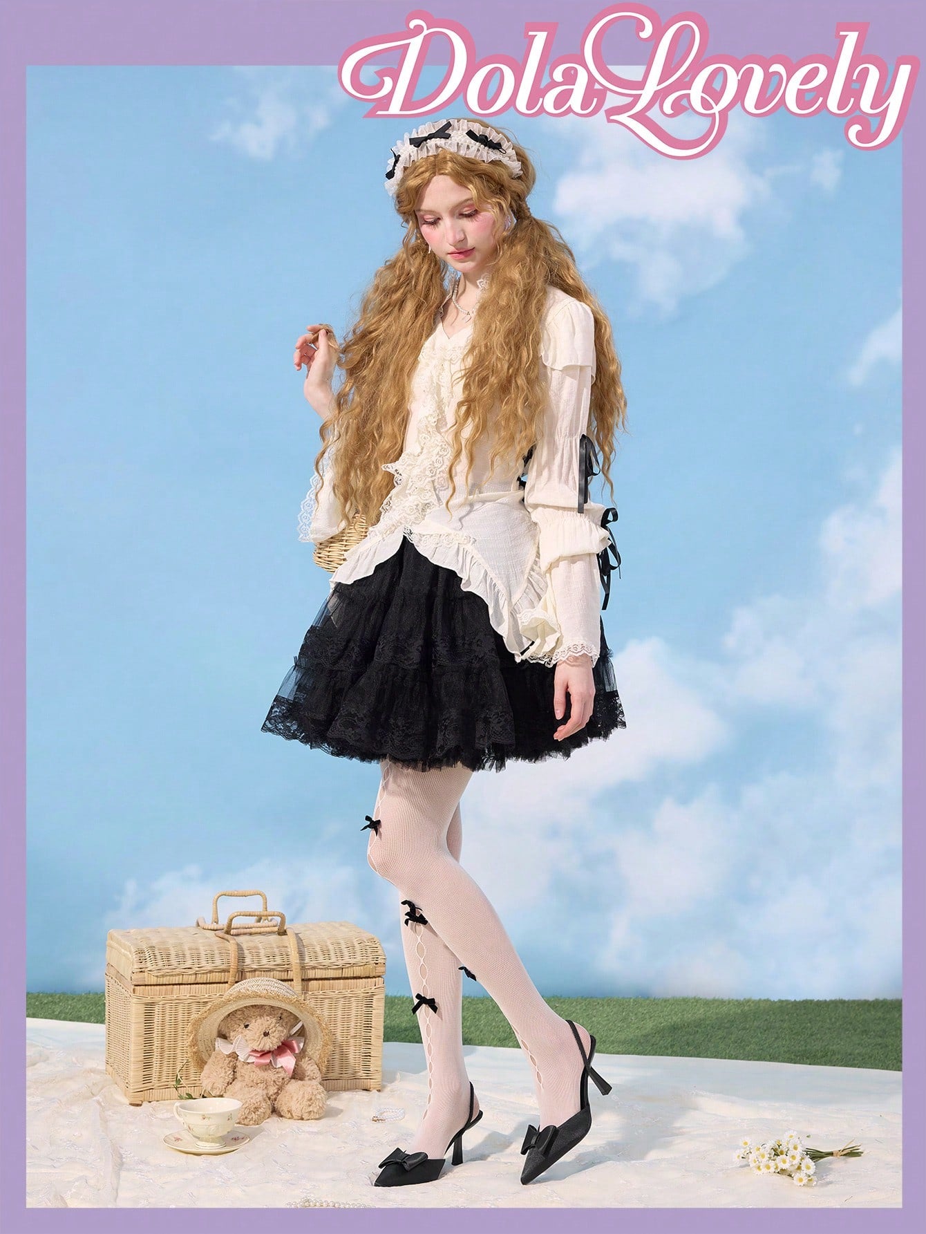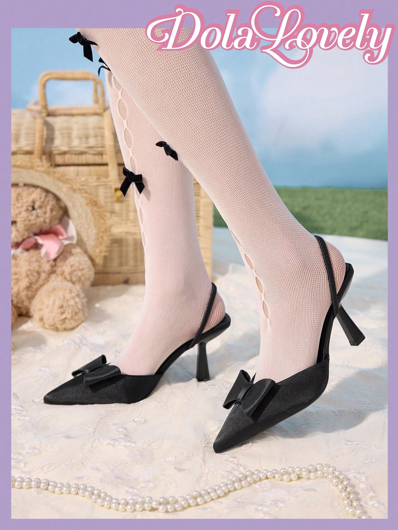 Dola Lovely Fashionable Women's Pearl Bow Decor Comfortable Versatile Lolita High Heels Spring Shoes Spring Break Easter
