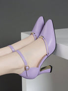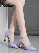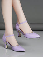women Pointed Toe High Heels Shoes Chunky Heeled Women Hollow Out Buckle Strap Closed Toe With Rhinestone