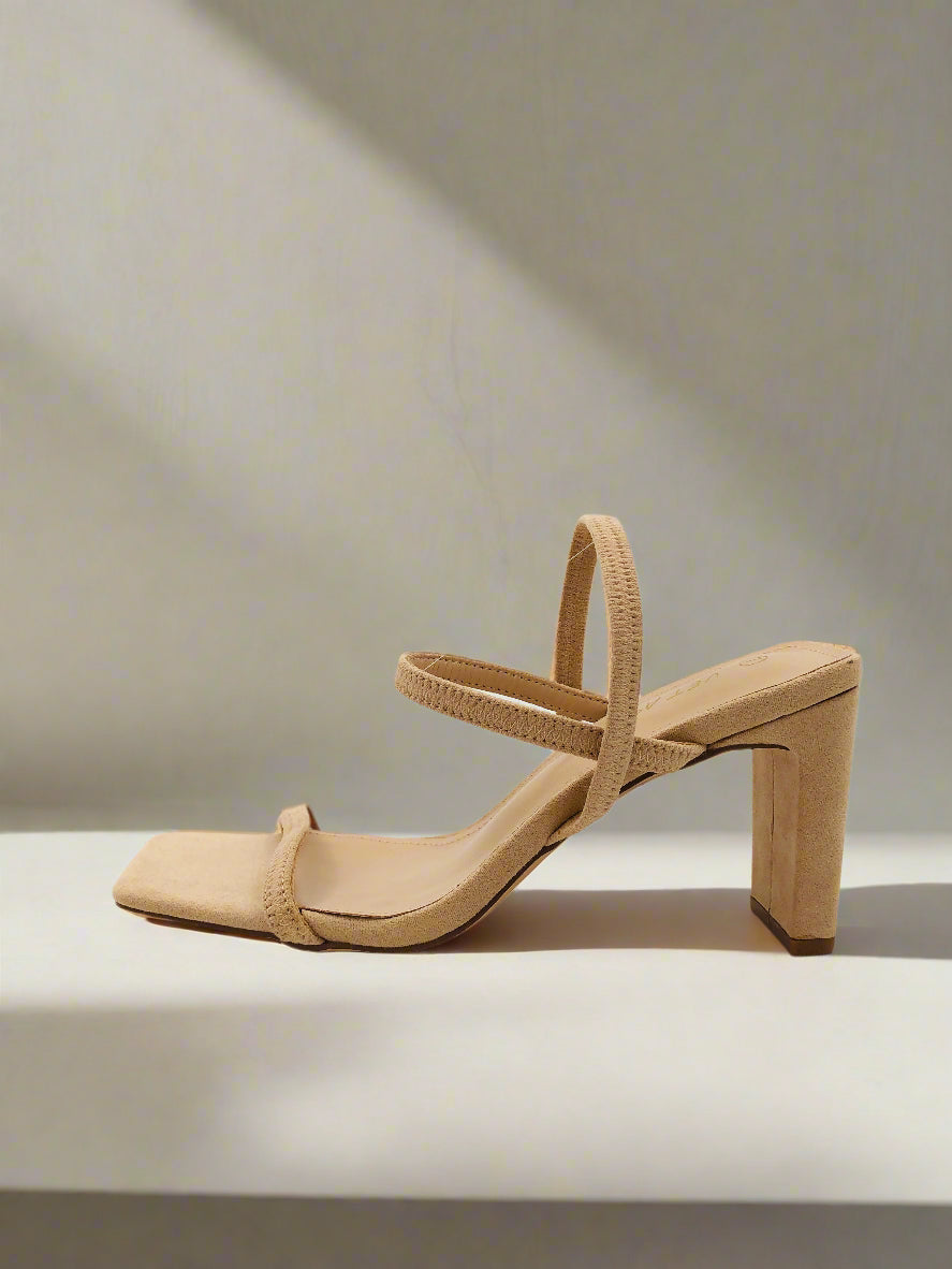 These stylish Beige Double Strap Heel Sandals feature a square toe and are the perfect addition to any outfit. The double straps across the forefoot and back strap provide added support and comfort, while the square toe adds a touch of elegance.
