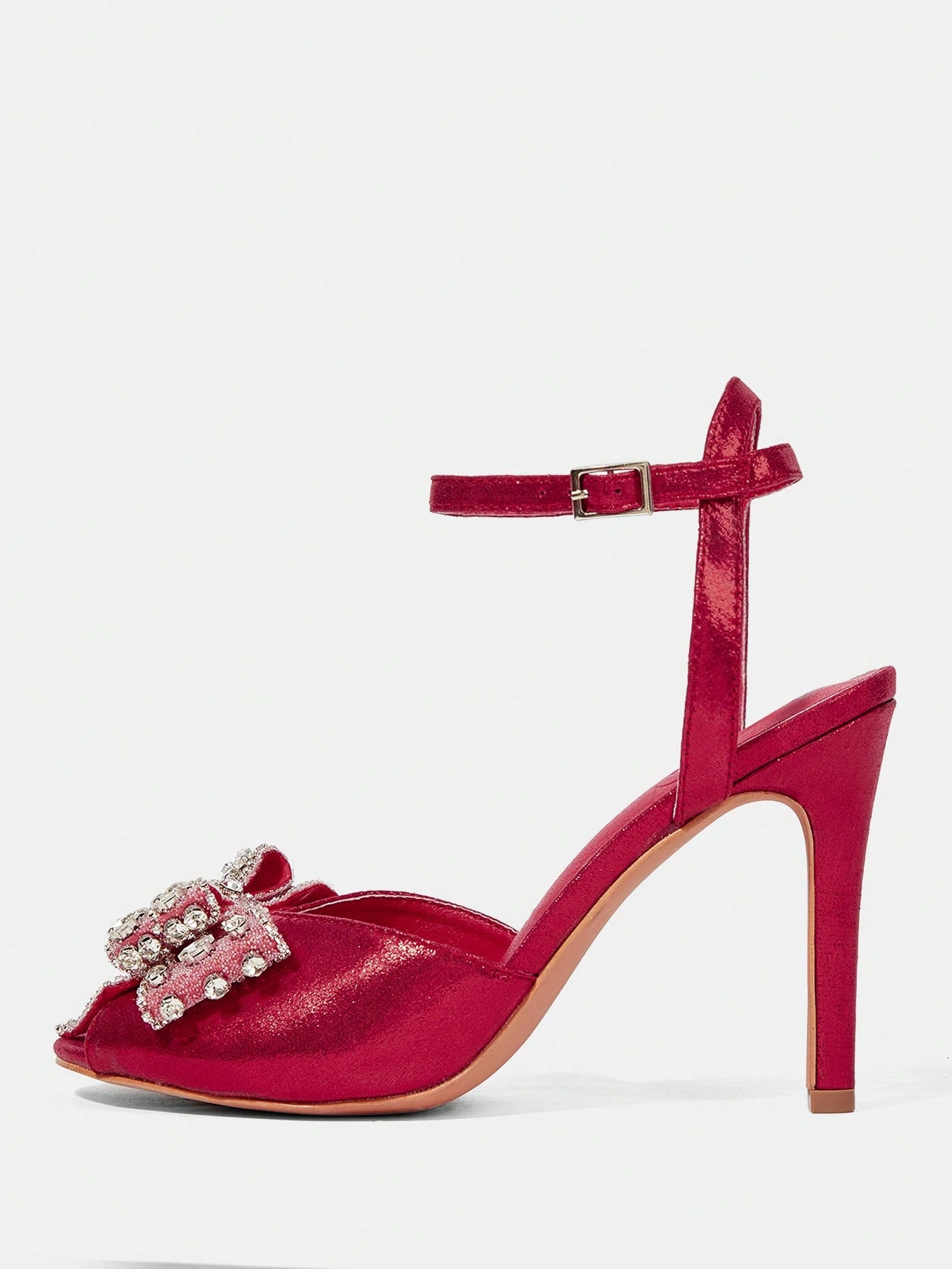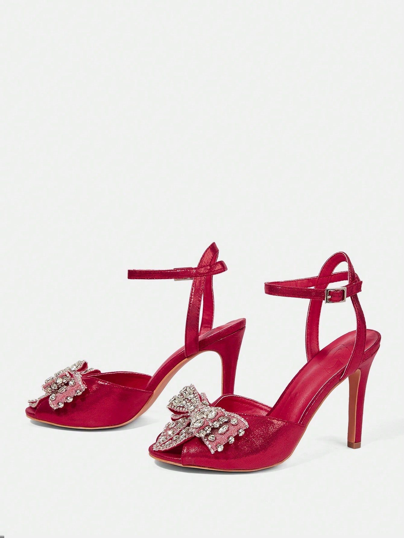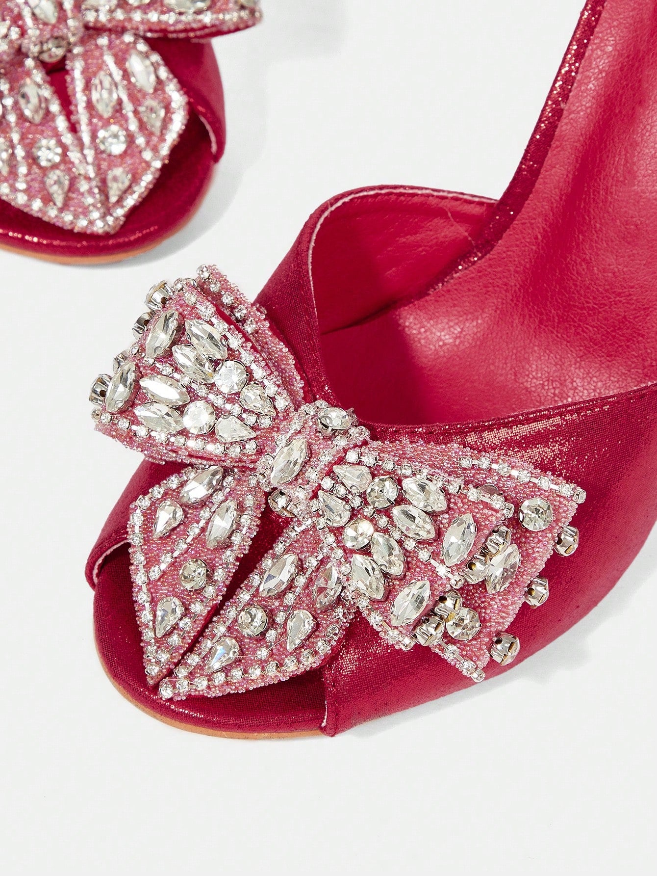 CUCCOO HITCHD Women's Glamorous Rhinestone Mesh Bowknot Open Toe Stilettos