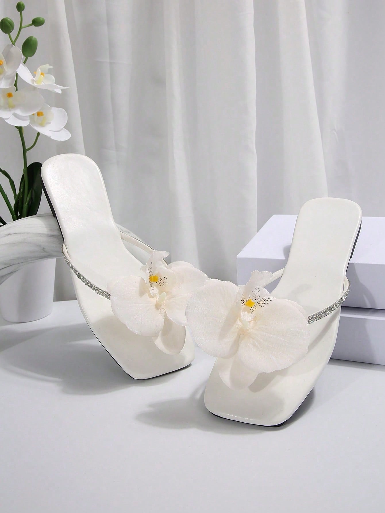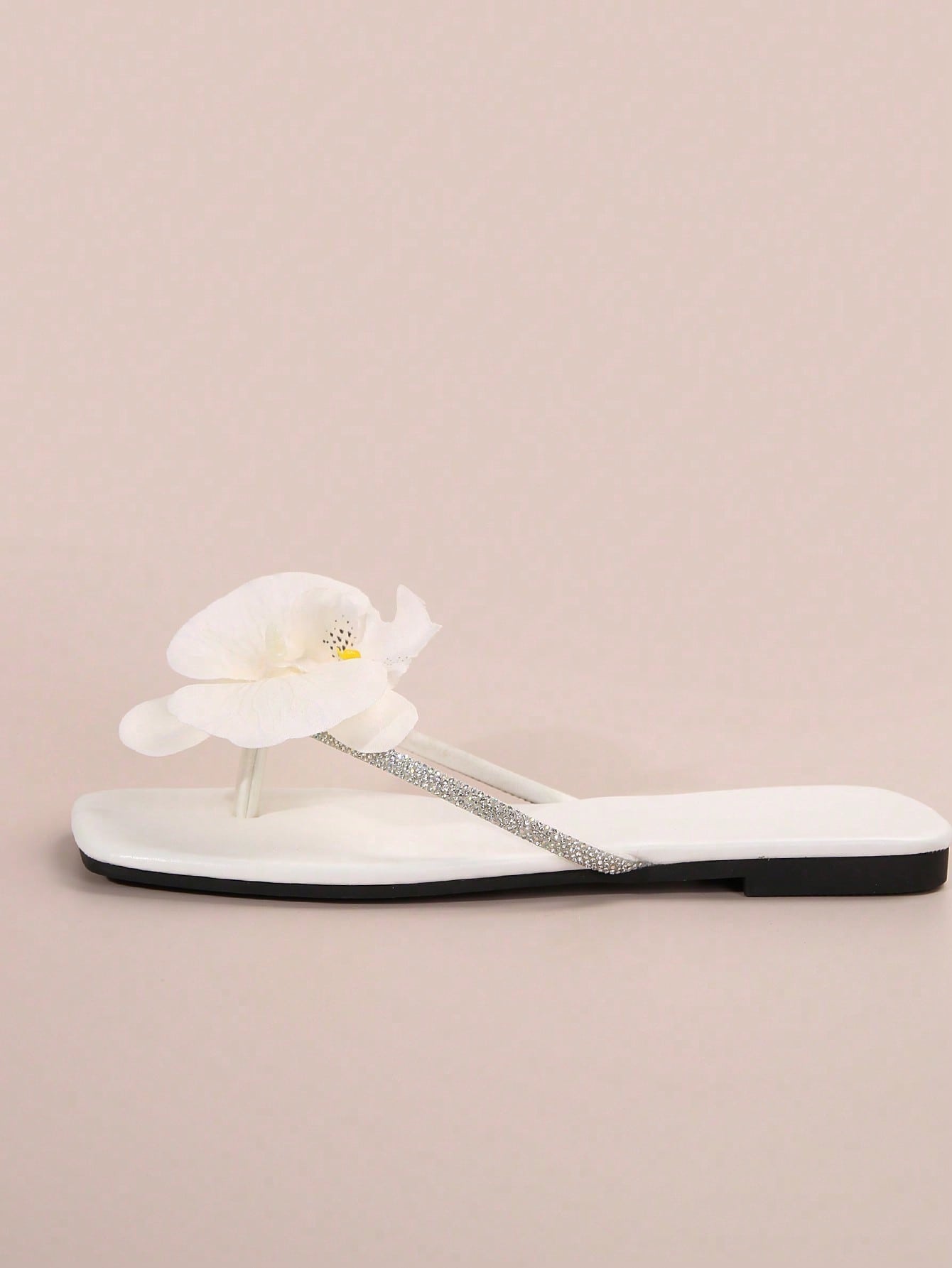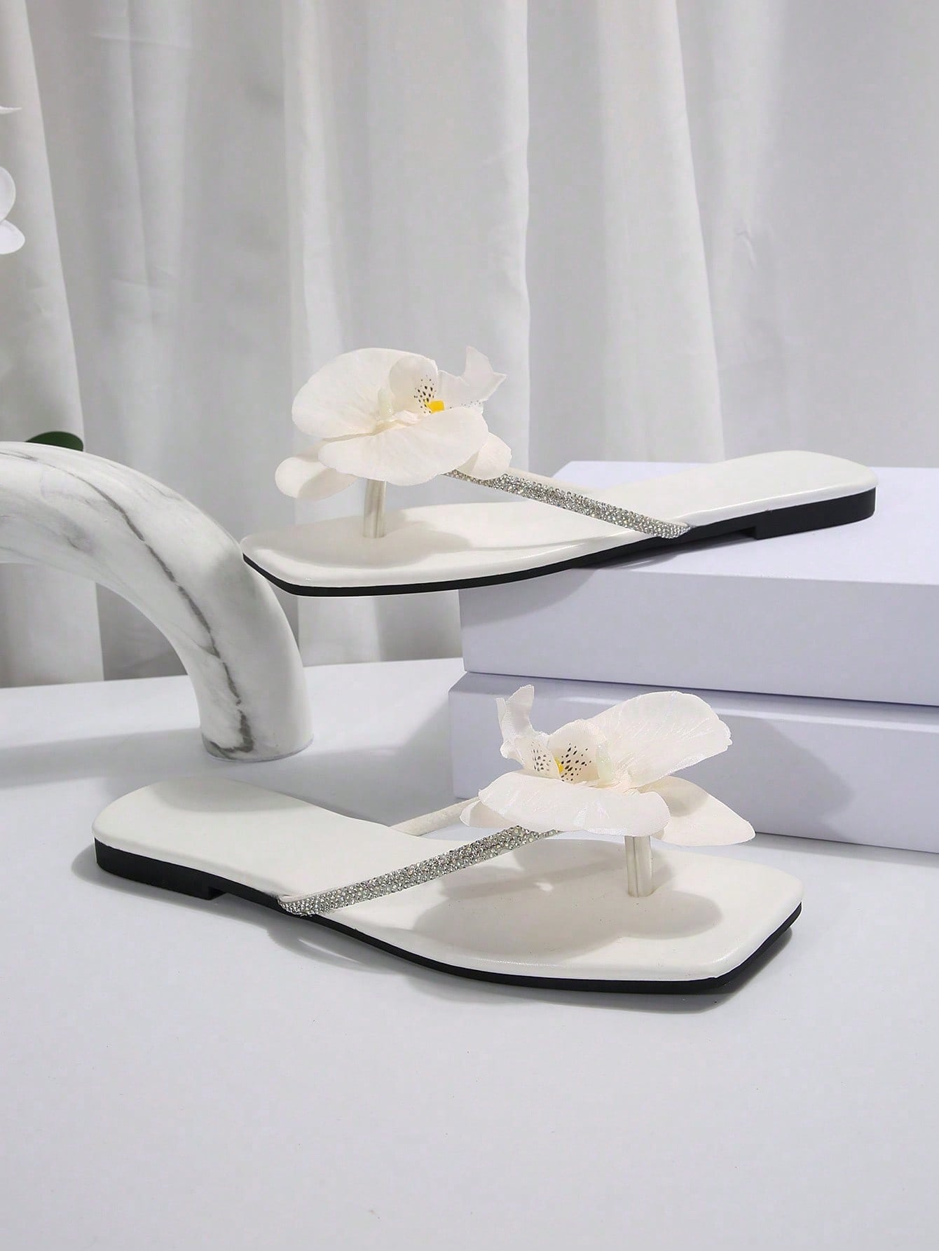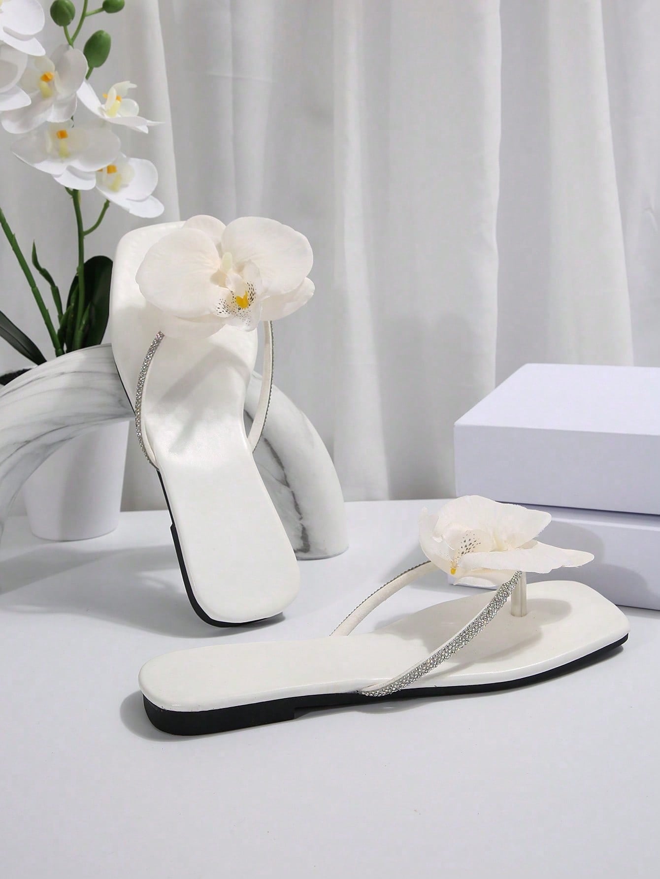 French Style Flat Floral Slip-On Slippers For Women, Fashionable Sandals For Summer Outdoor Wear, Suitable