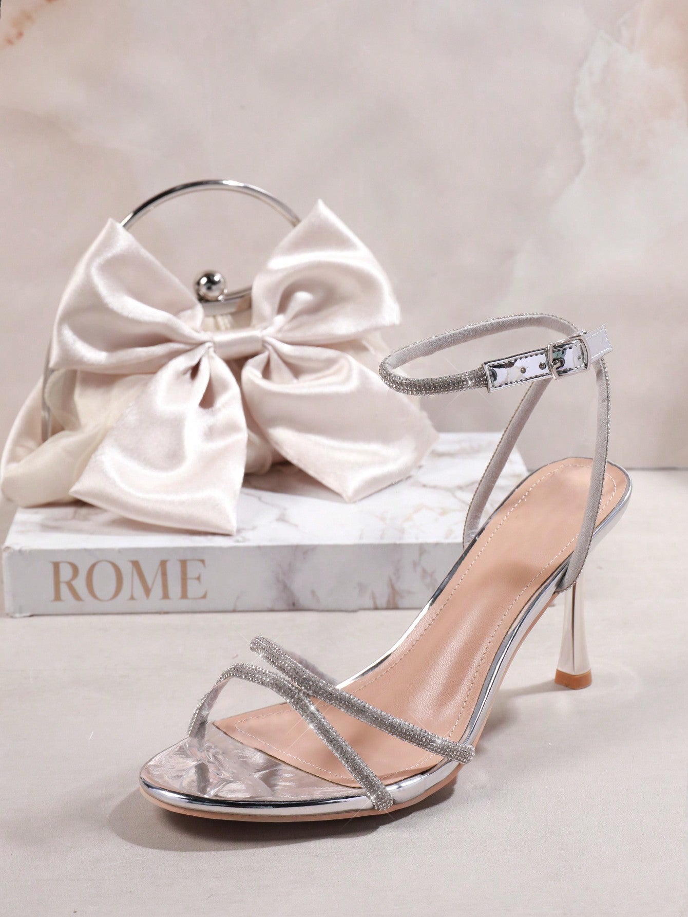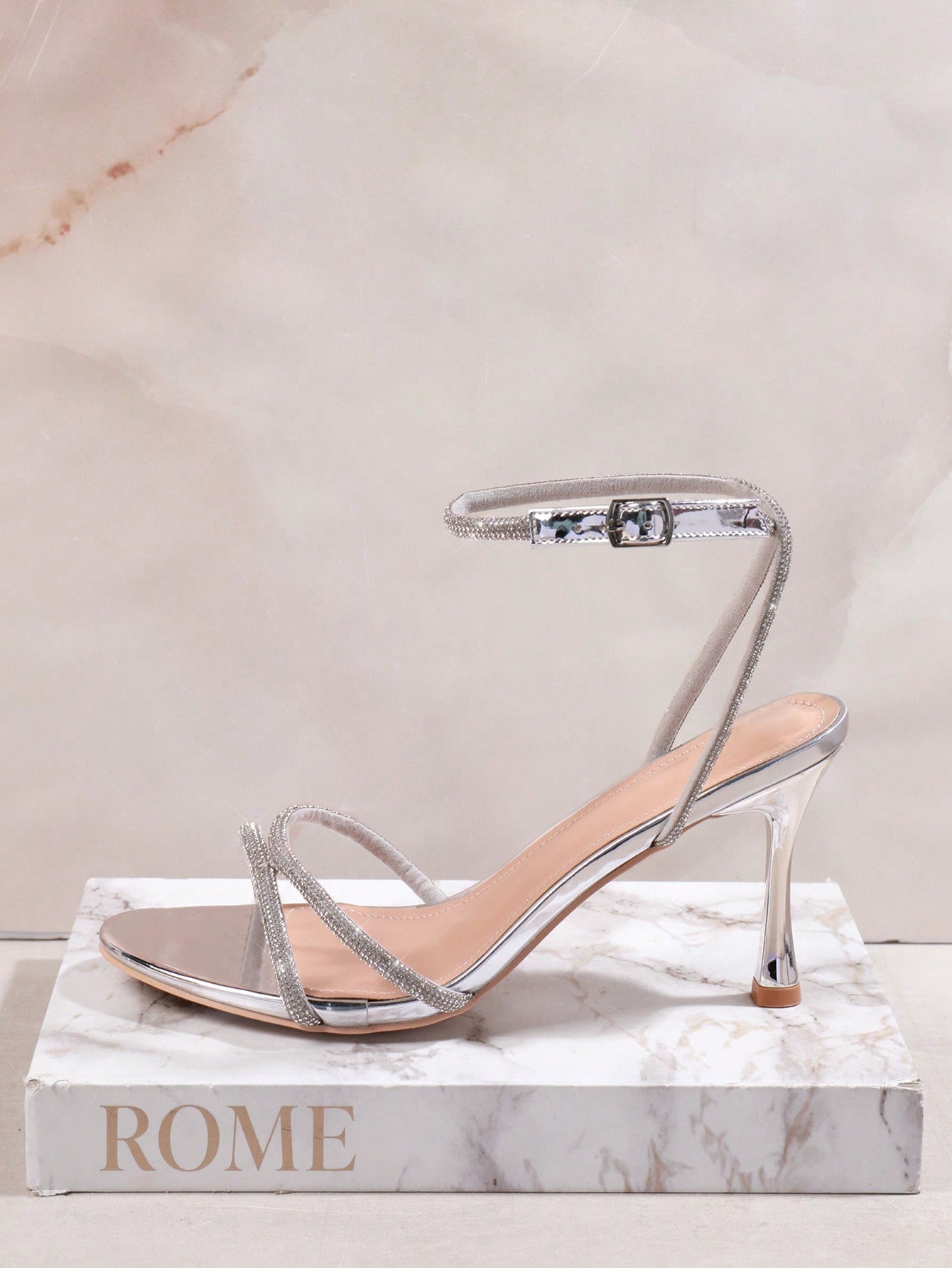 women L'Amorae Women's Cross Straps Rhinestone Ankle Strap Roound Toe High Heels Wedding Shoes