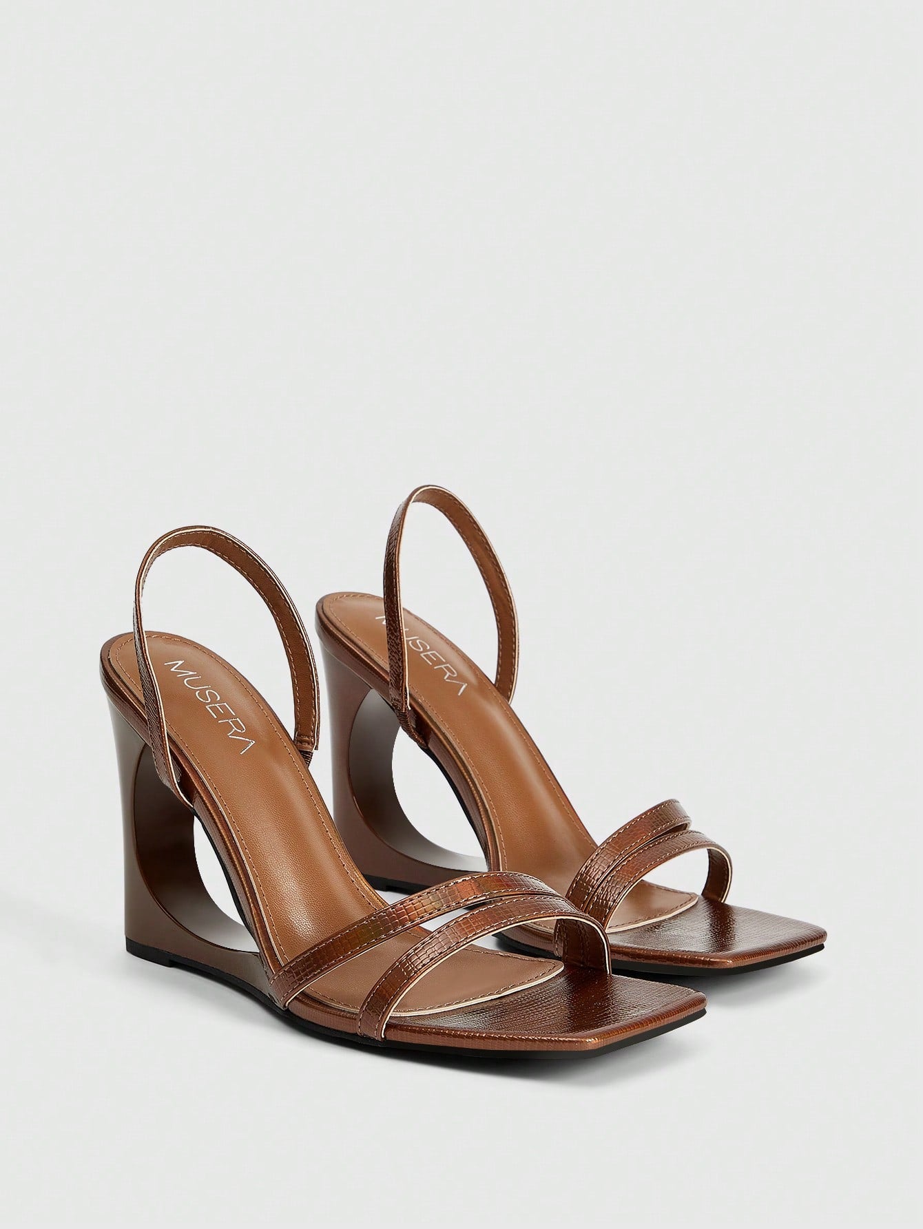 MUSERA PU Effect Block Square Toe Wedge Sandals For Christmas