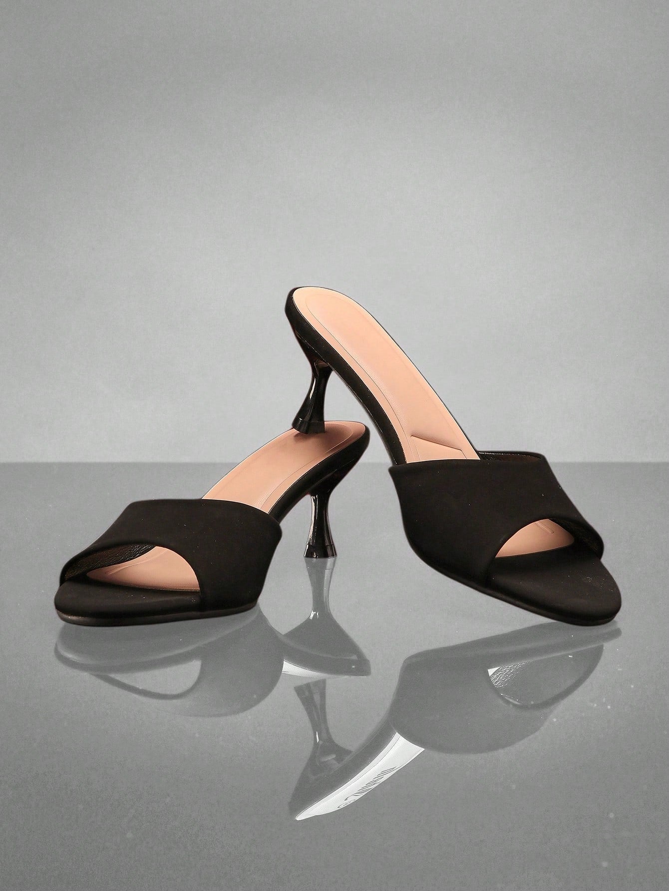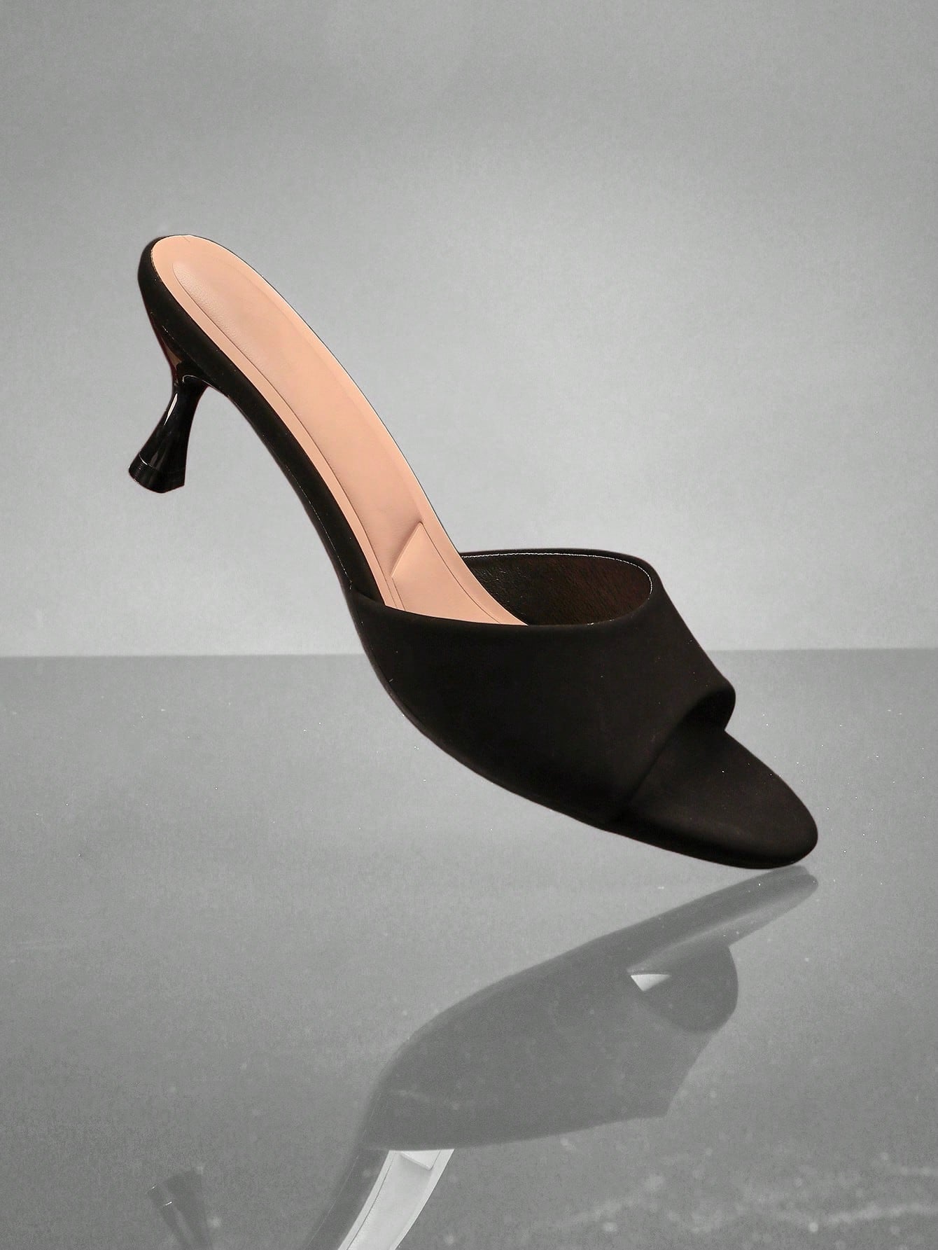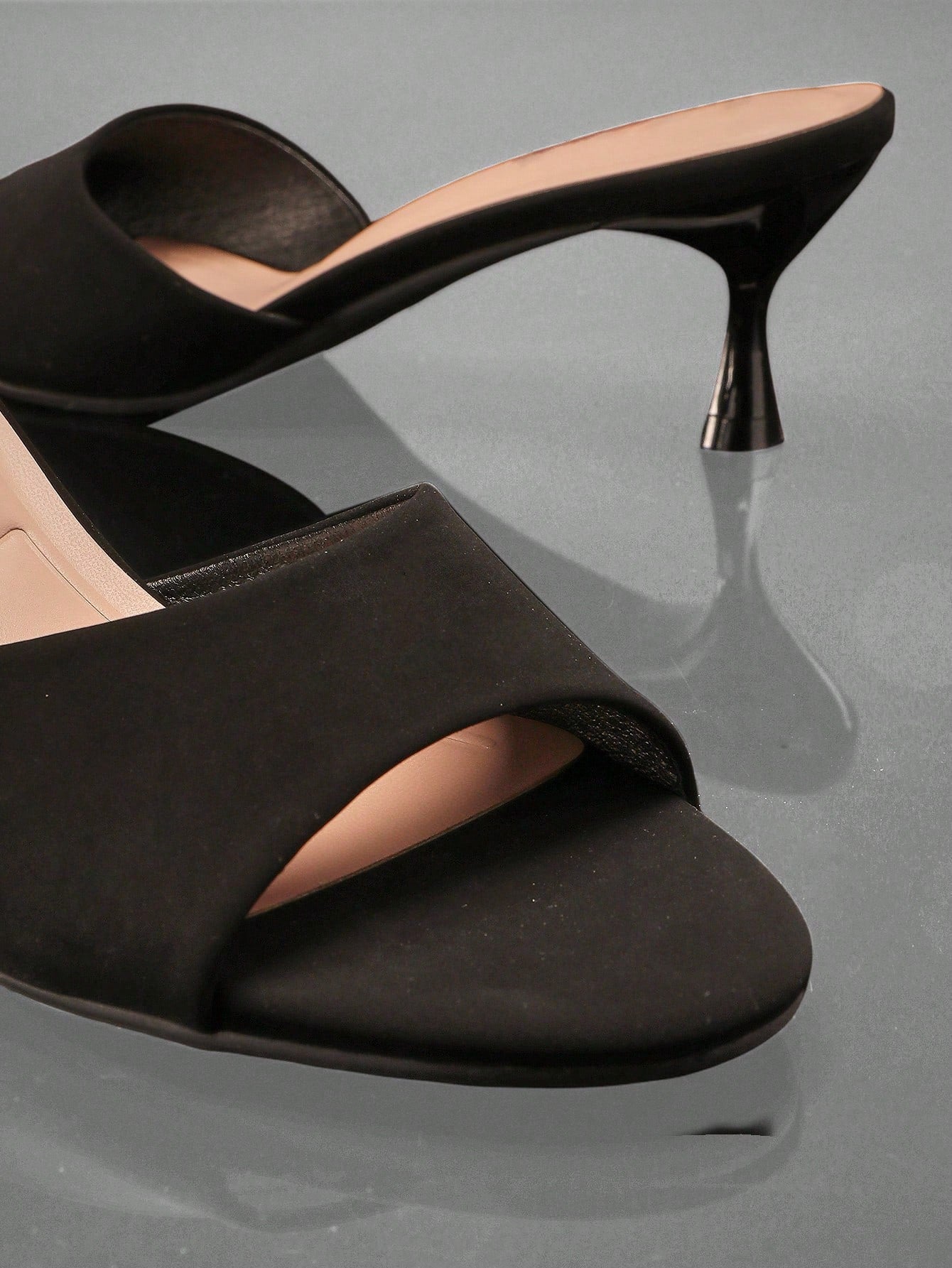 SHUZIA Women Comfortable Kitten Heel Almond Toe Black Nubuck Heel Sandals