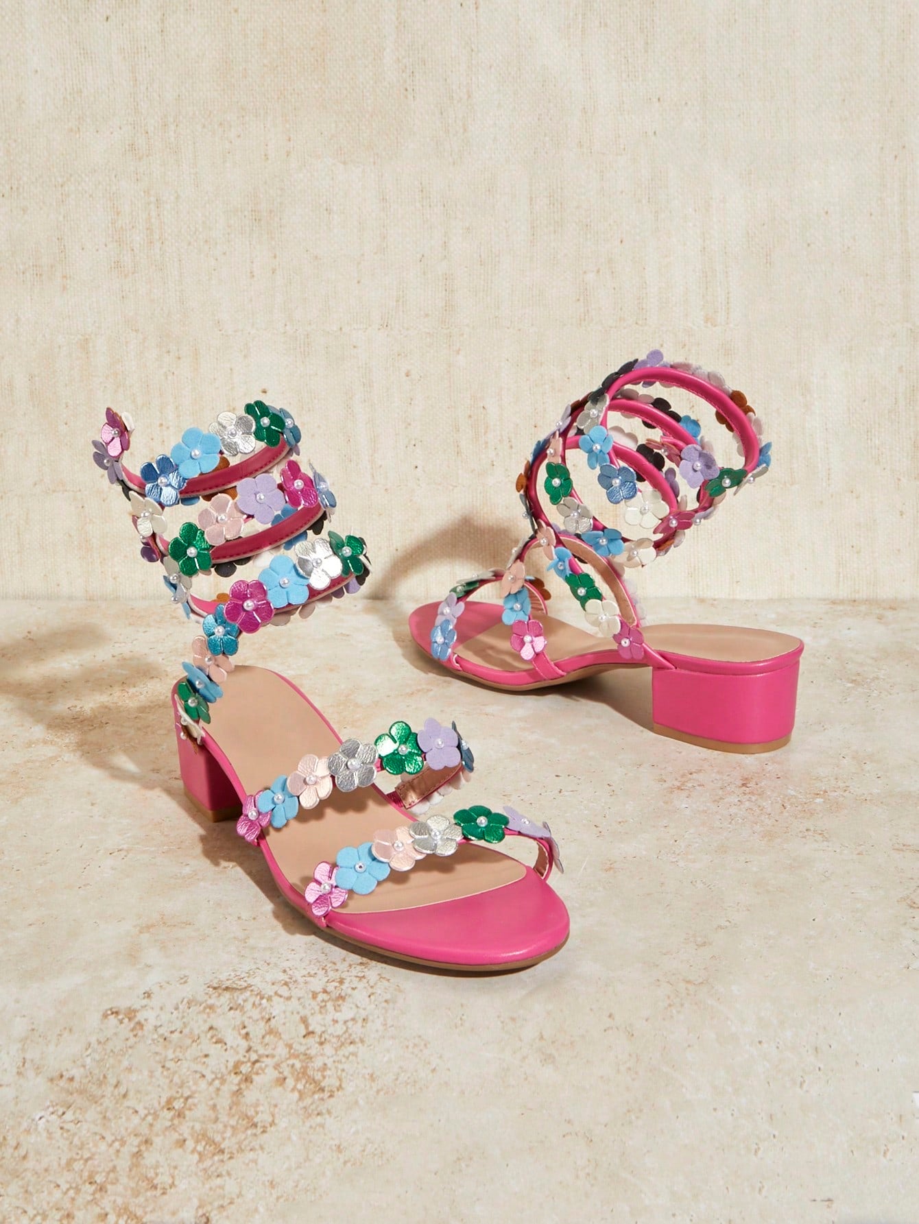 SHUZIA Women Floral Decorated Summer Versatile High Heel Sandals