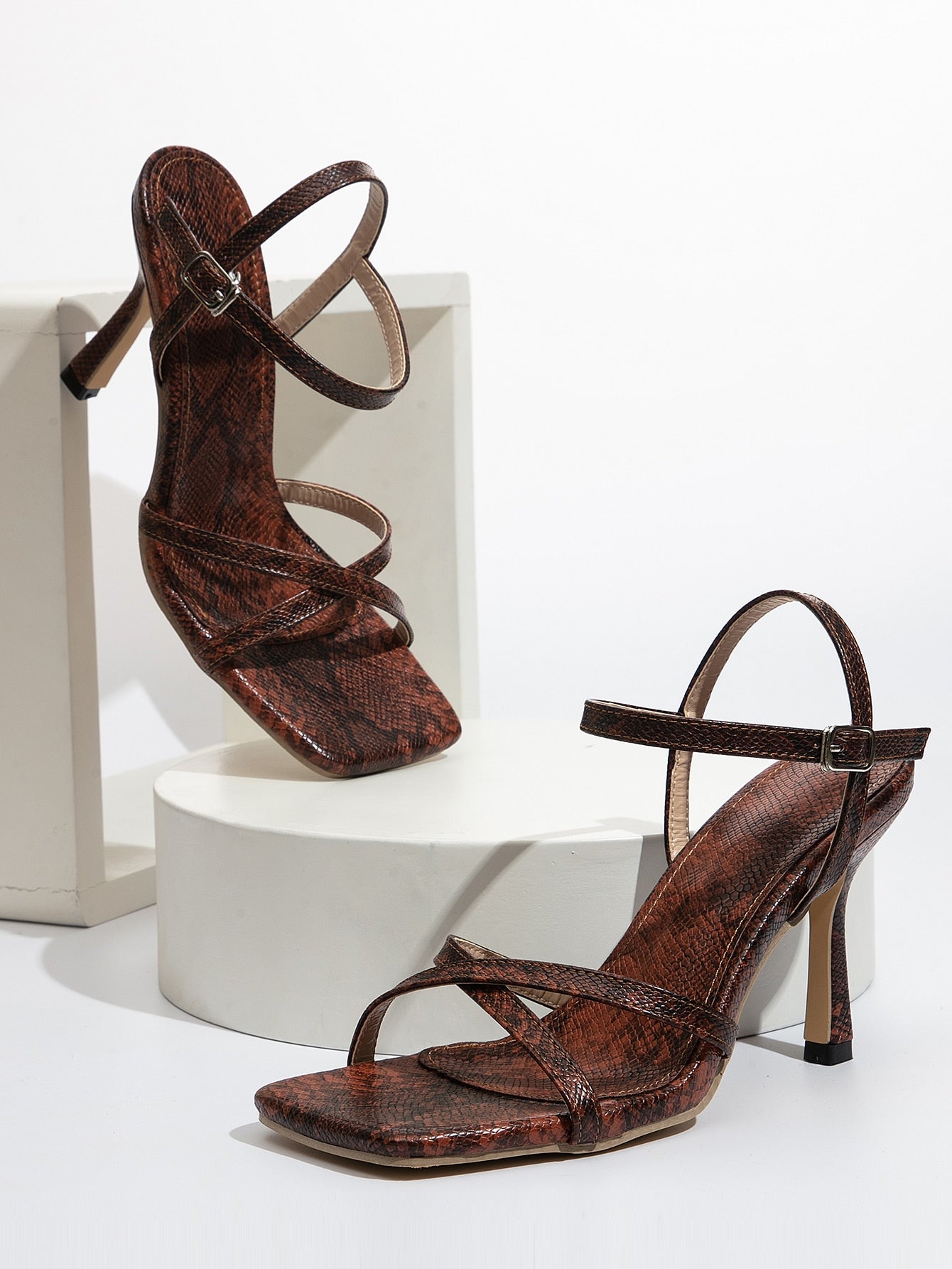 Snakeskin Thin Strap Stiletto Heeled Sandals