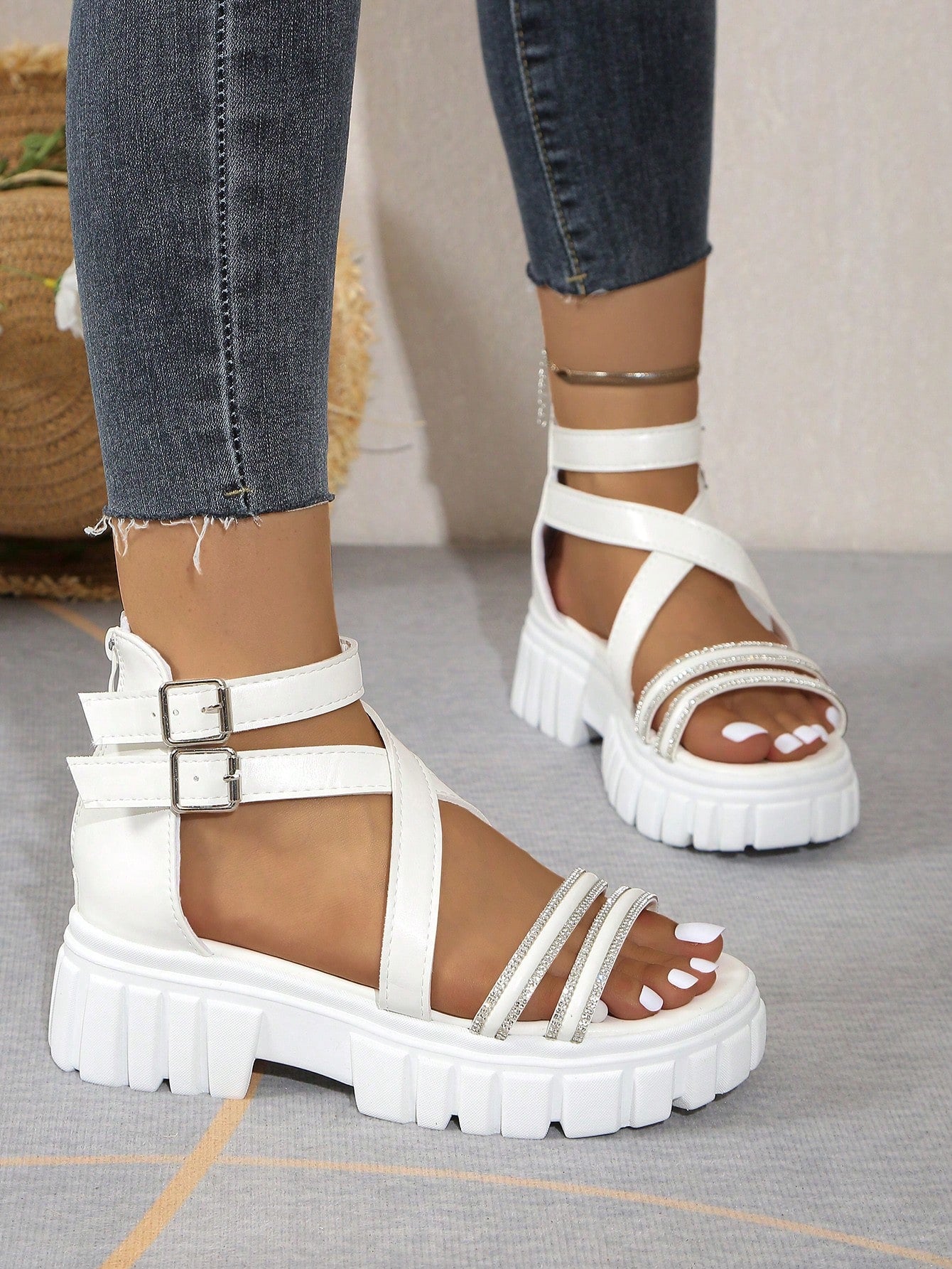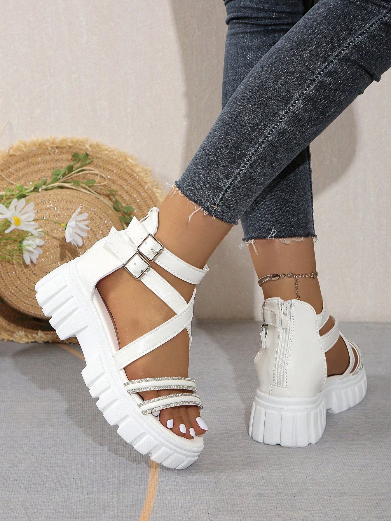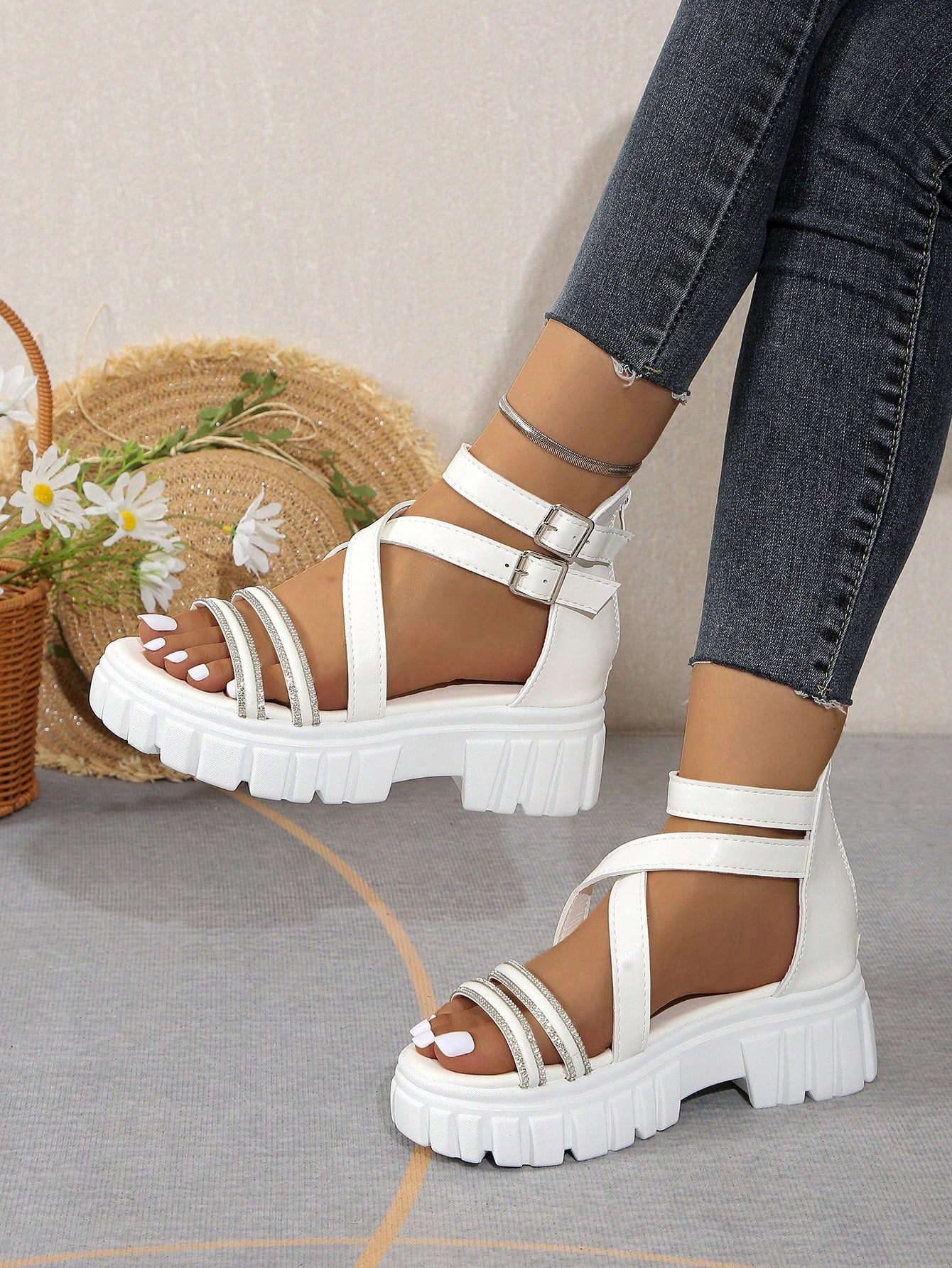 Women's Simple Fashionable Vacation Style Strap Woven Sandals Goddess Wind Wedge Thick Bottom Sandals