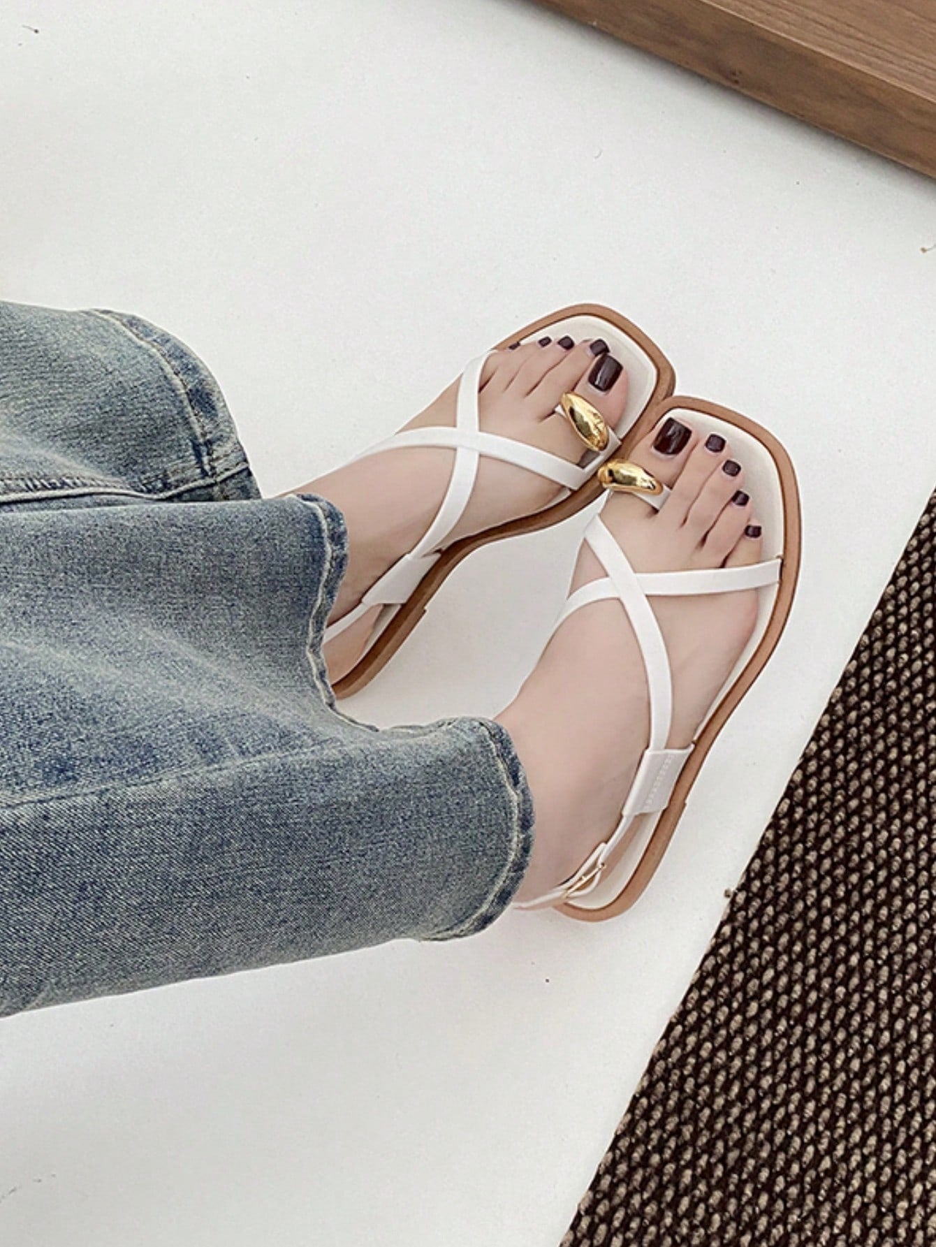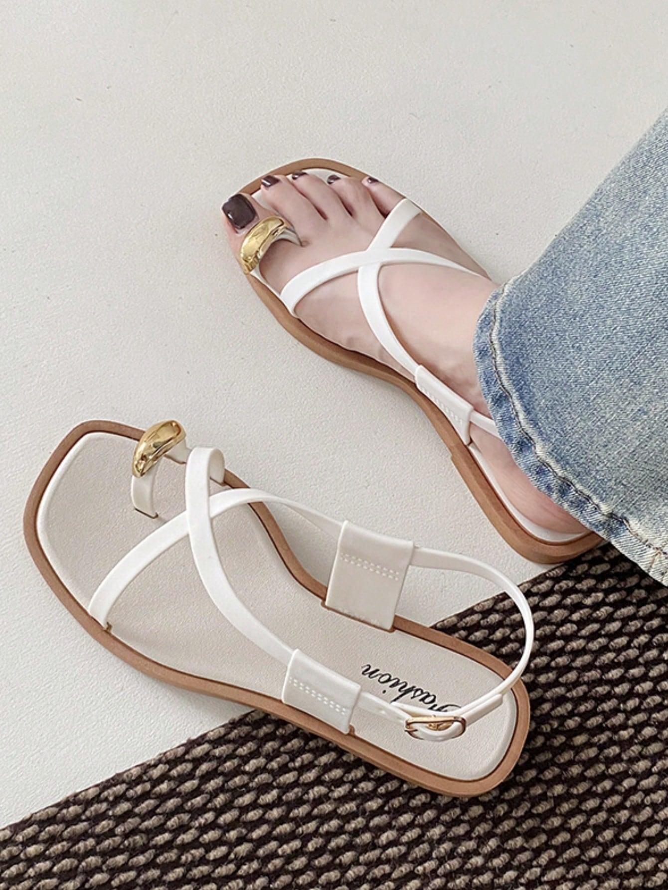 Women's Flat Sandals - Metallic Gold Elegant Party Holiday Casual Outdoor Beach Graceful Lady Wedding Shoes