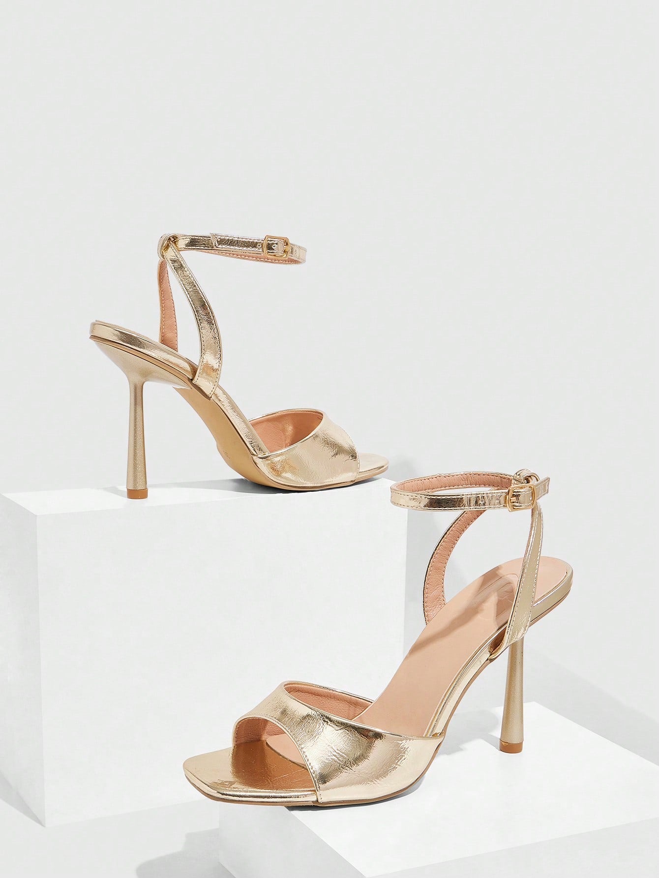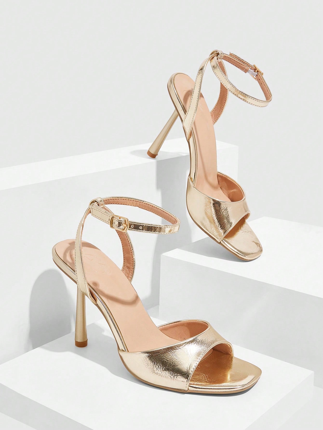 CUCCOO SZL Women's Fashion Gold Ankle Strap Peep Toe Stiletto High Heel Sandals