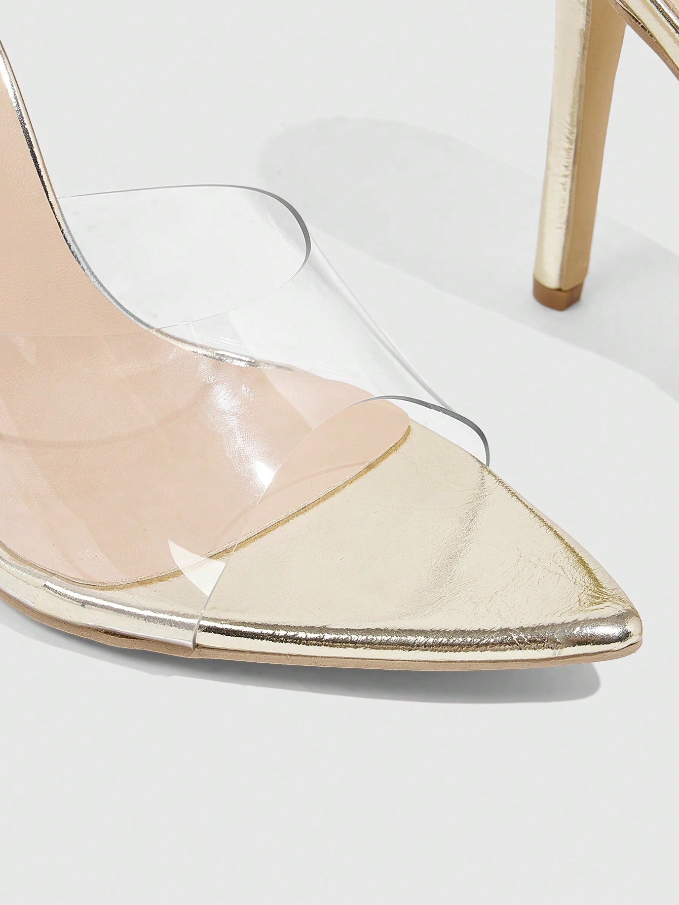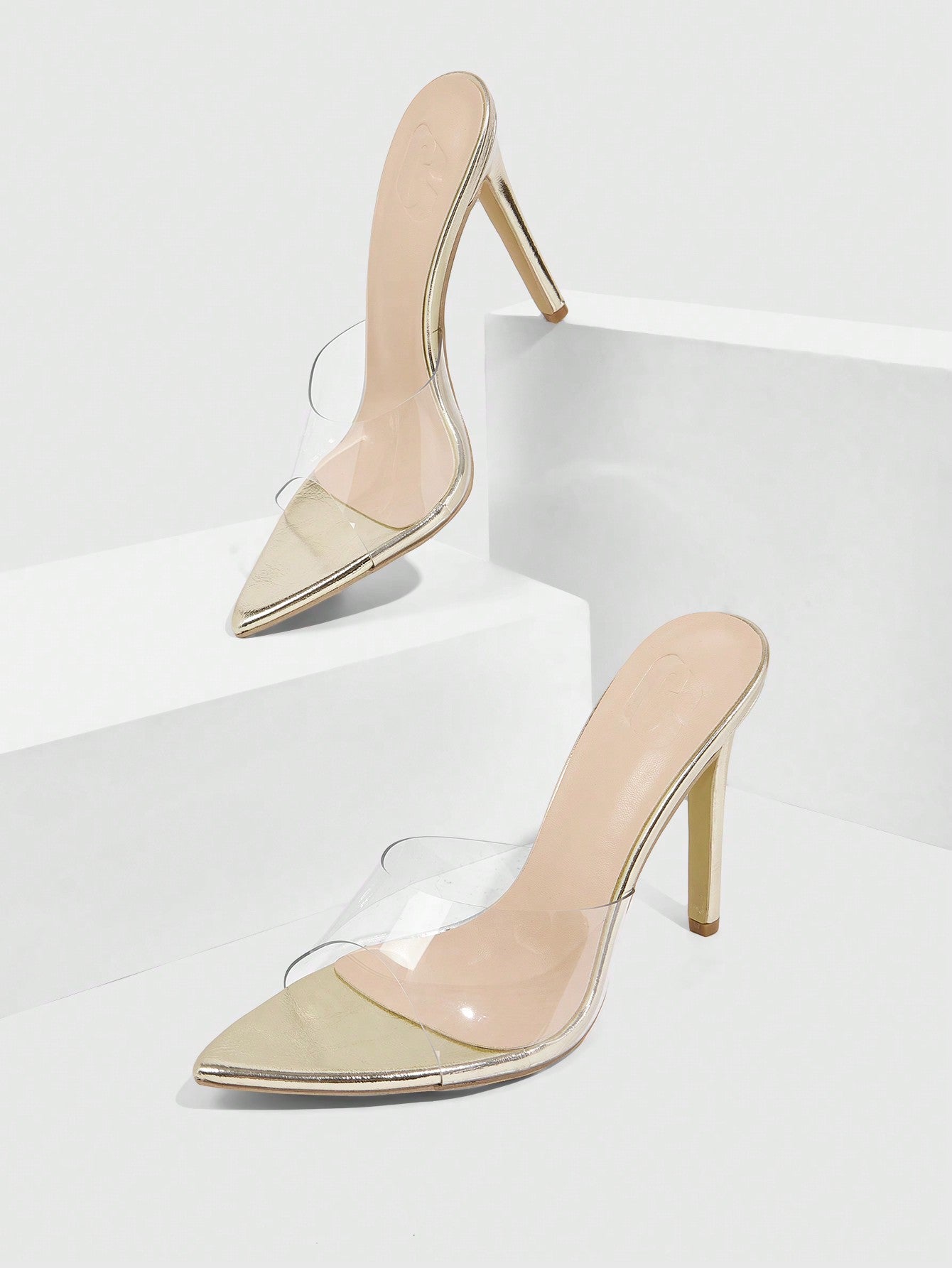 CUCCOO SZL Women's Fashion Gold Transparent TPU Pointed Toe High Heel Sandals