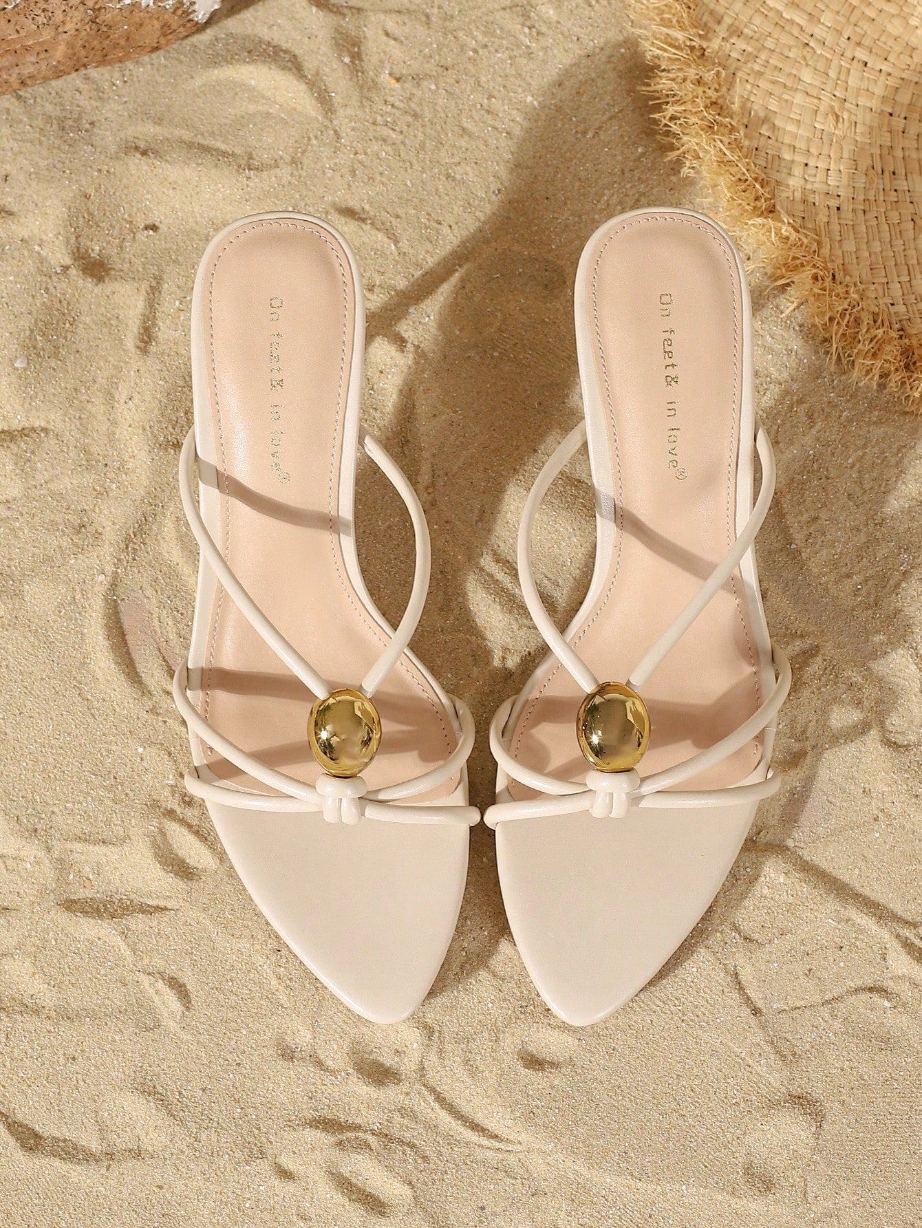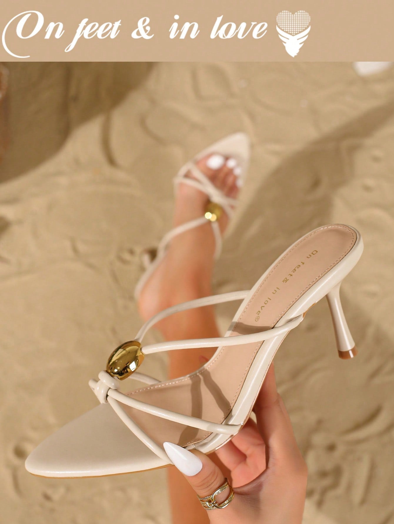 On feet& in love Women's Fashionable & Elegant Metal Decor High Heel Sandals