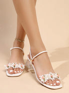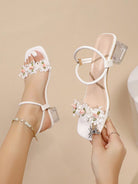 women Summer New Design Princess Flower Embellished Chunky Heel Sandals With Rhinestones And Strap Buckle For Women