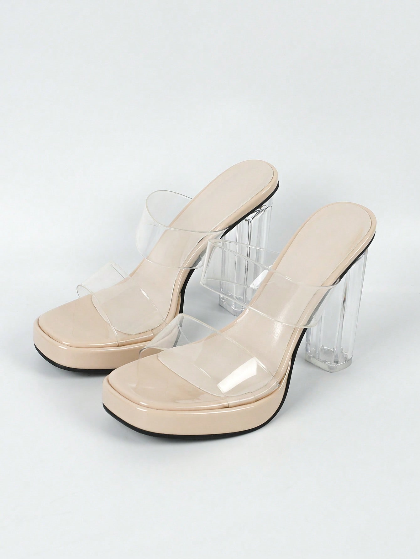 women Women Clear Strap Chunky Heeled Mule Sandals