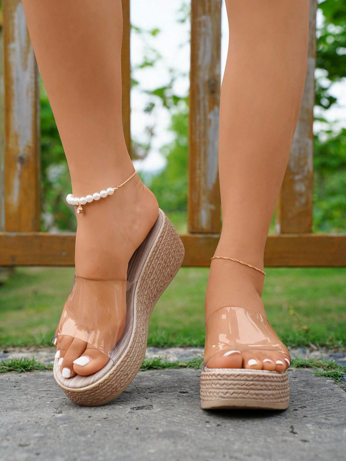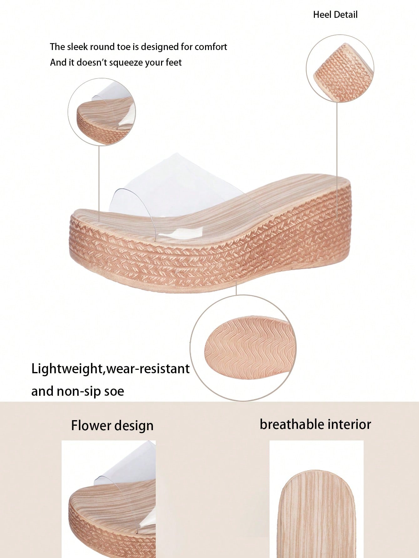 Women Summer Outdoor Lightweight And Comfortable Mule Transparent Open Toe Slip-On Wedge Heel Thick-Soled