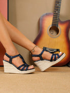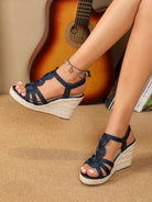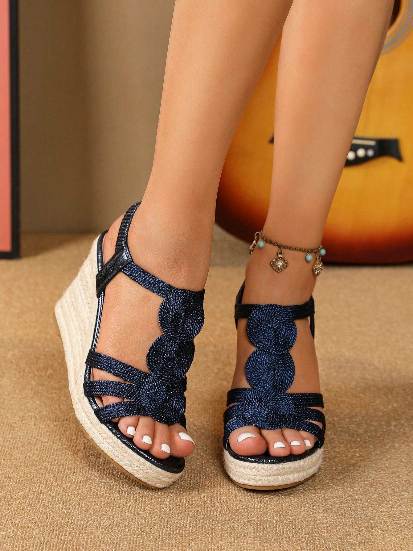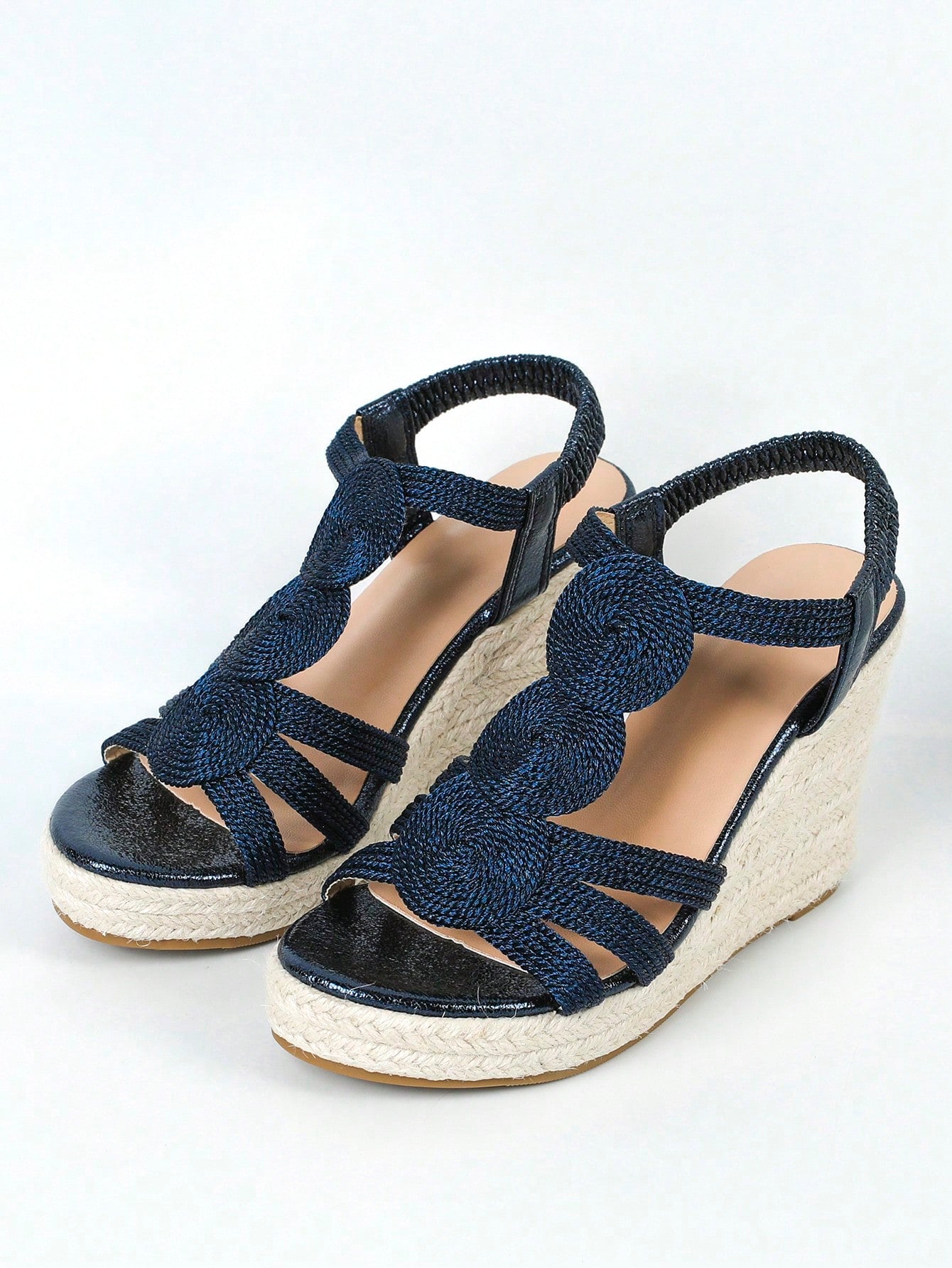 Women's Woven Wedge Sandals, Simple Elastic Band High Heel Shoes, Vacation Thick Bottom Sandals