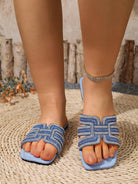 Wide Fit Crystal Rhinestone Embellished Comfortable Slippers Casual Flat Thong Sandals For Women Korean