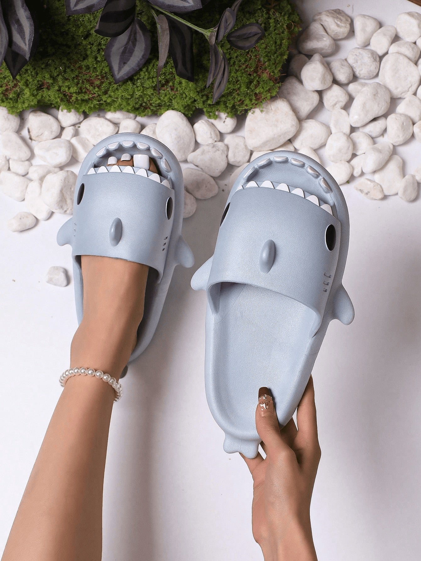 Women 2025 New EVA Blue Shark Design Slippers Couple Style Cute Outdoor/Indoor Lightweight Non-Slip