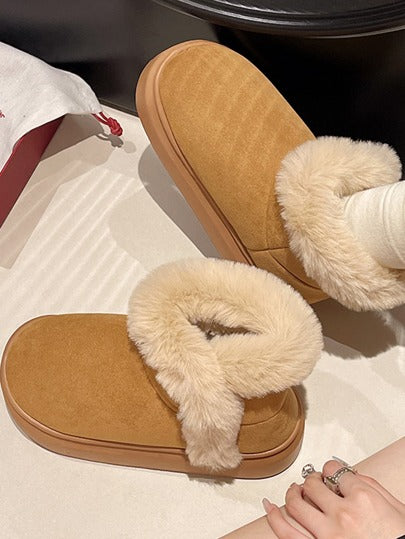 women Women's Thick Sole Thermal Lined Casual Slip-On Shoes
