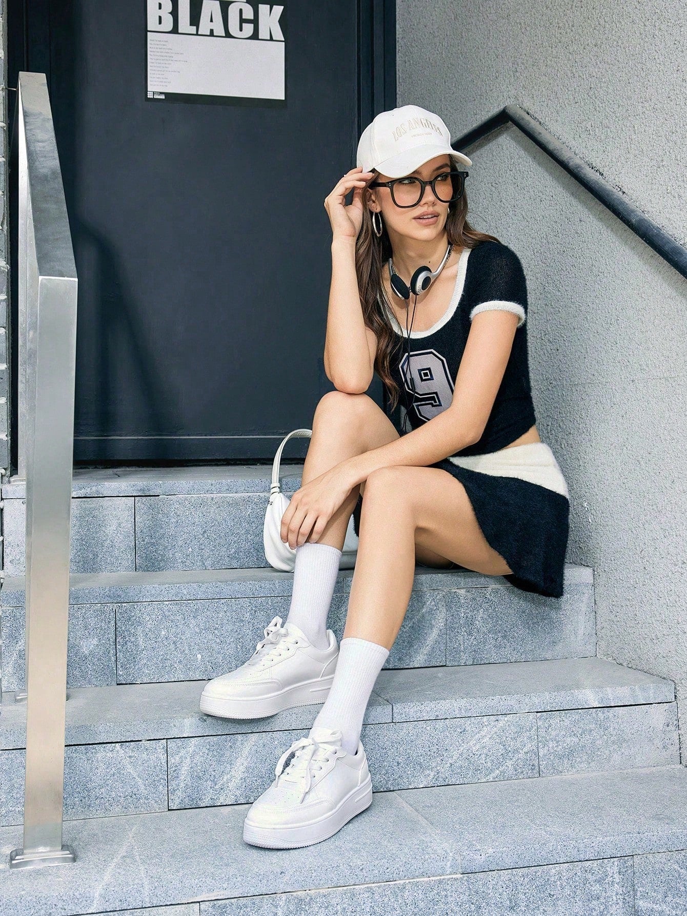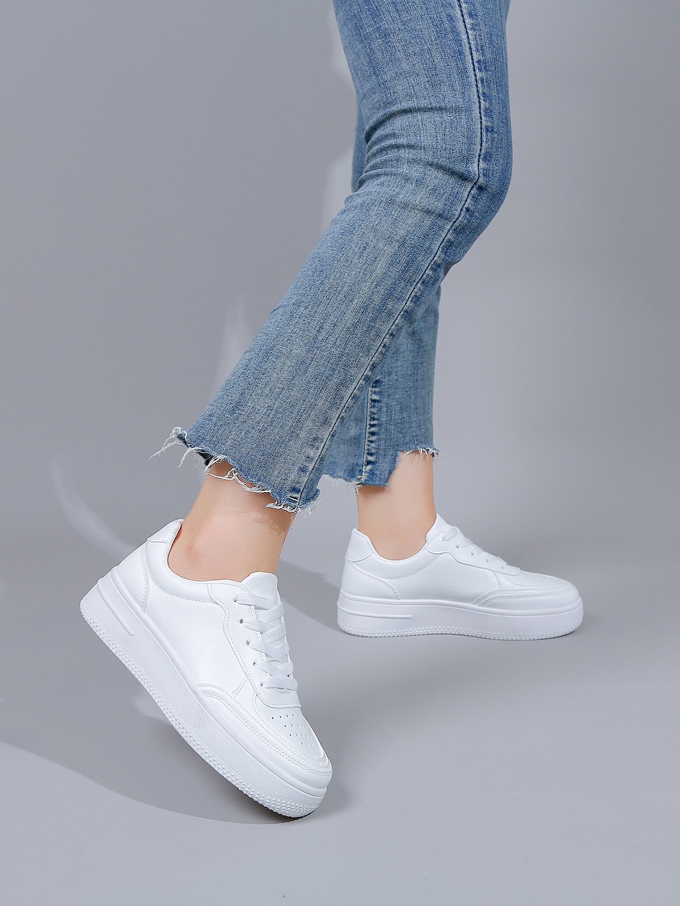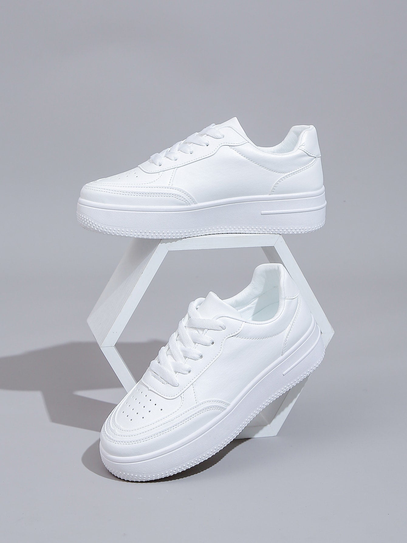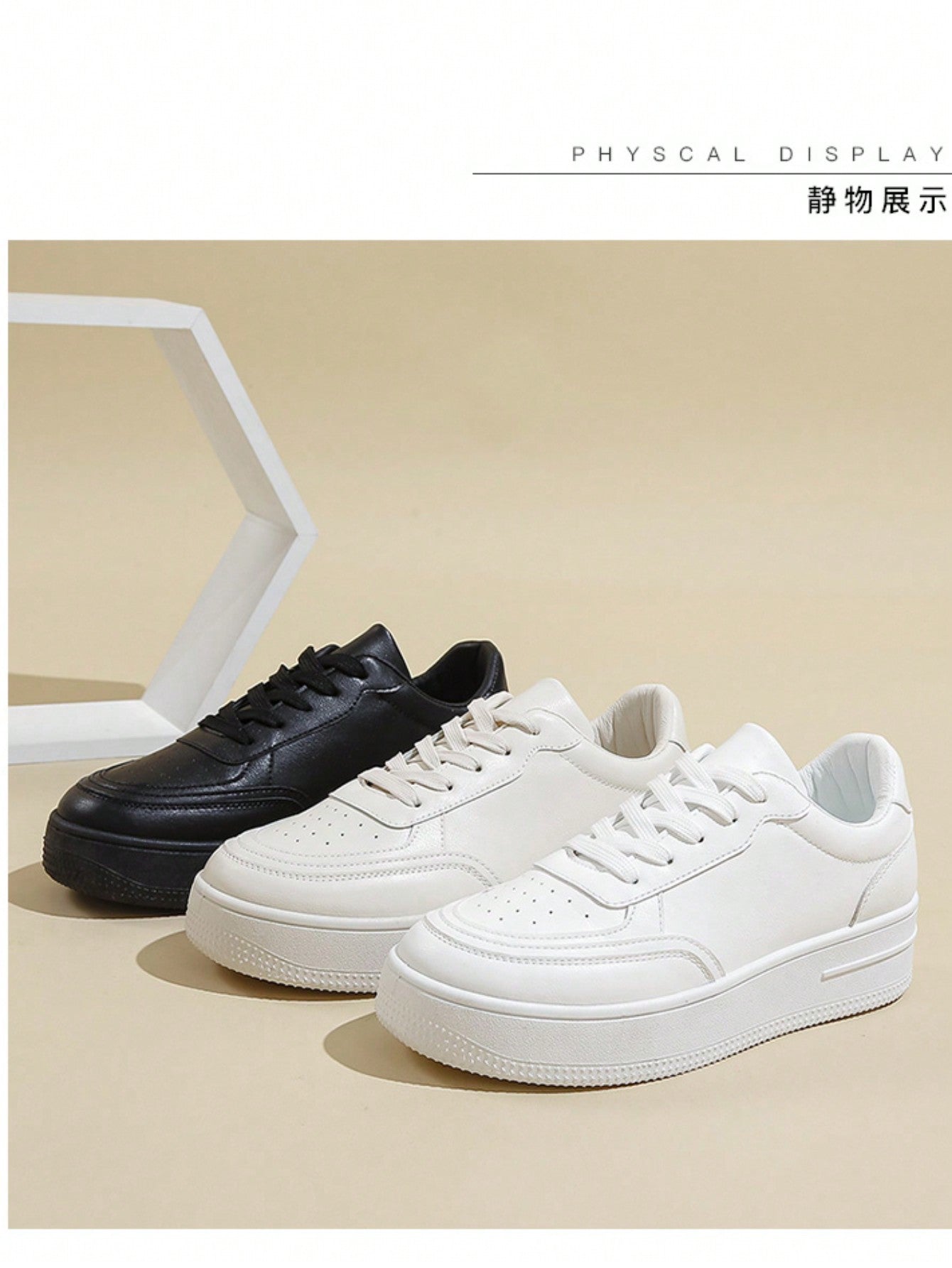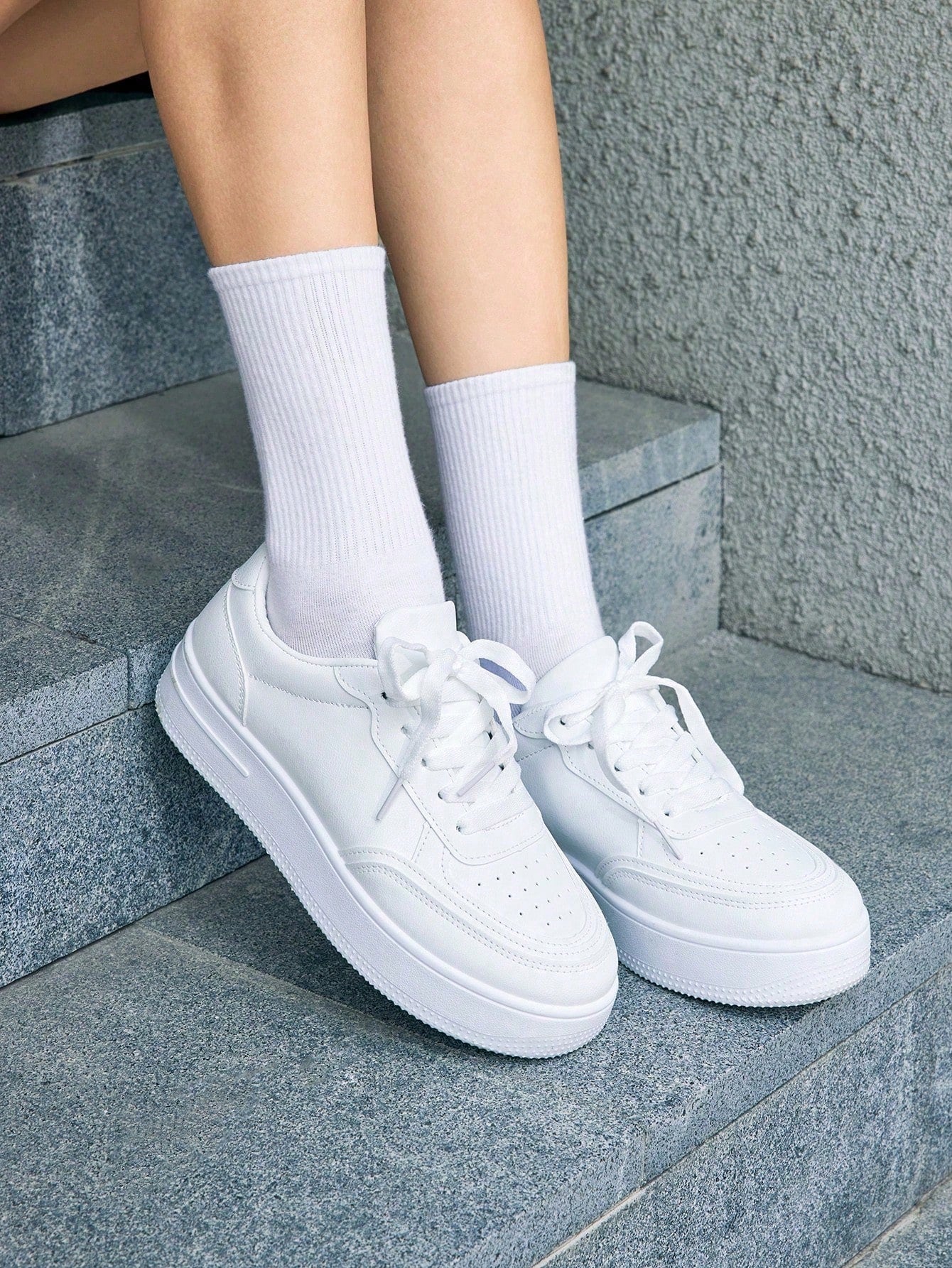 Fashion Thick-Soled Round Toe Lace-Up Casual Sneakers For Women