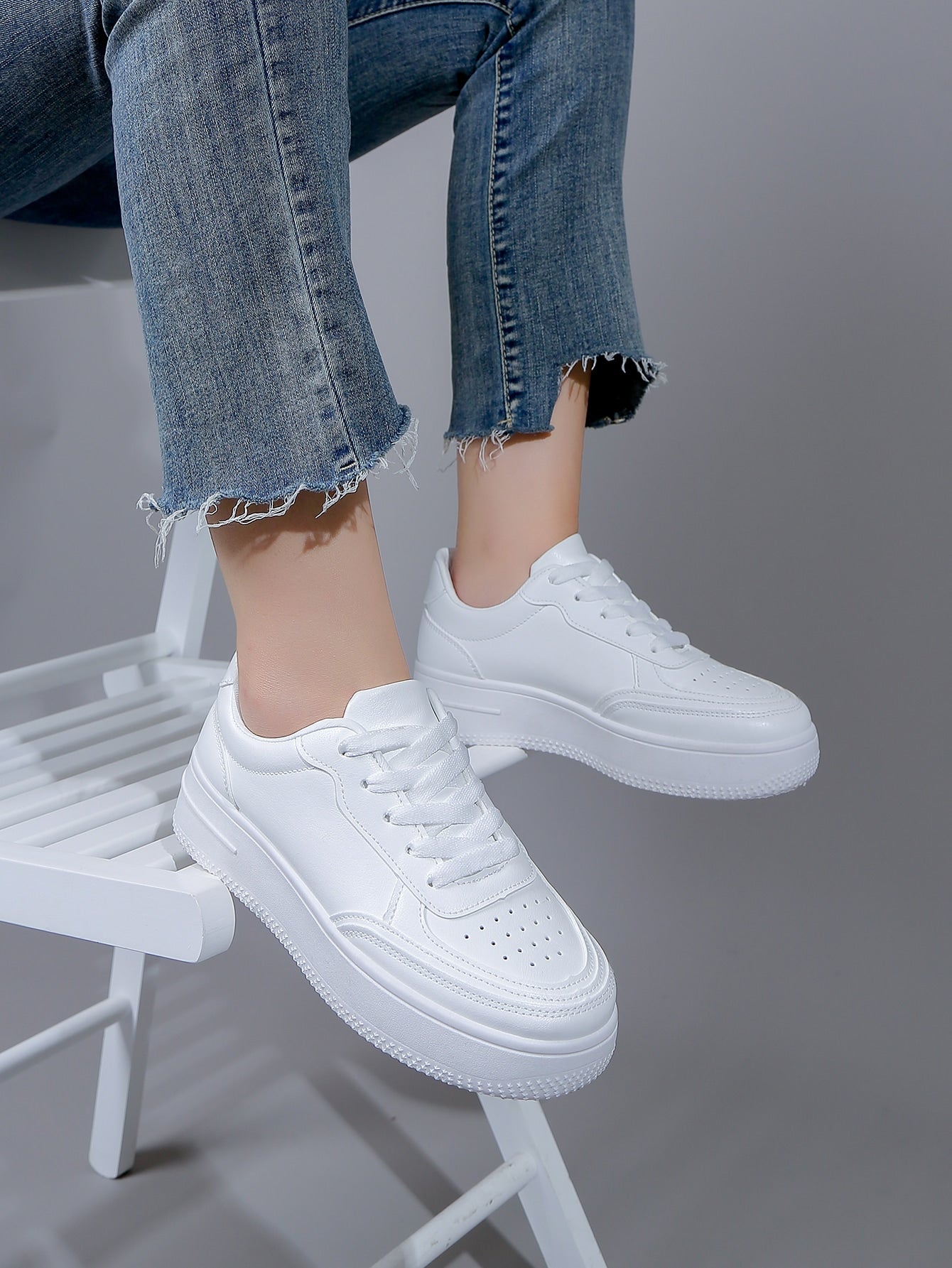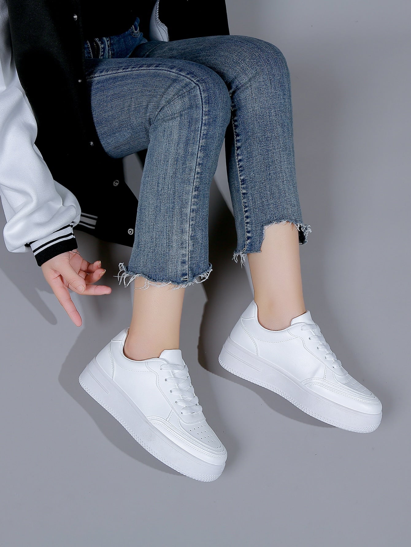 women Fashion Thick-Soled Round Toe Lace-Up Casual Sneakers For Women