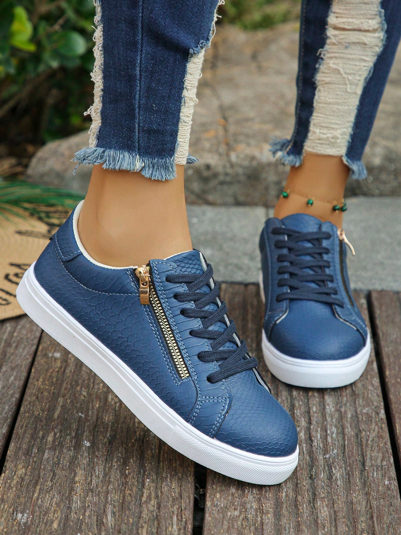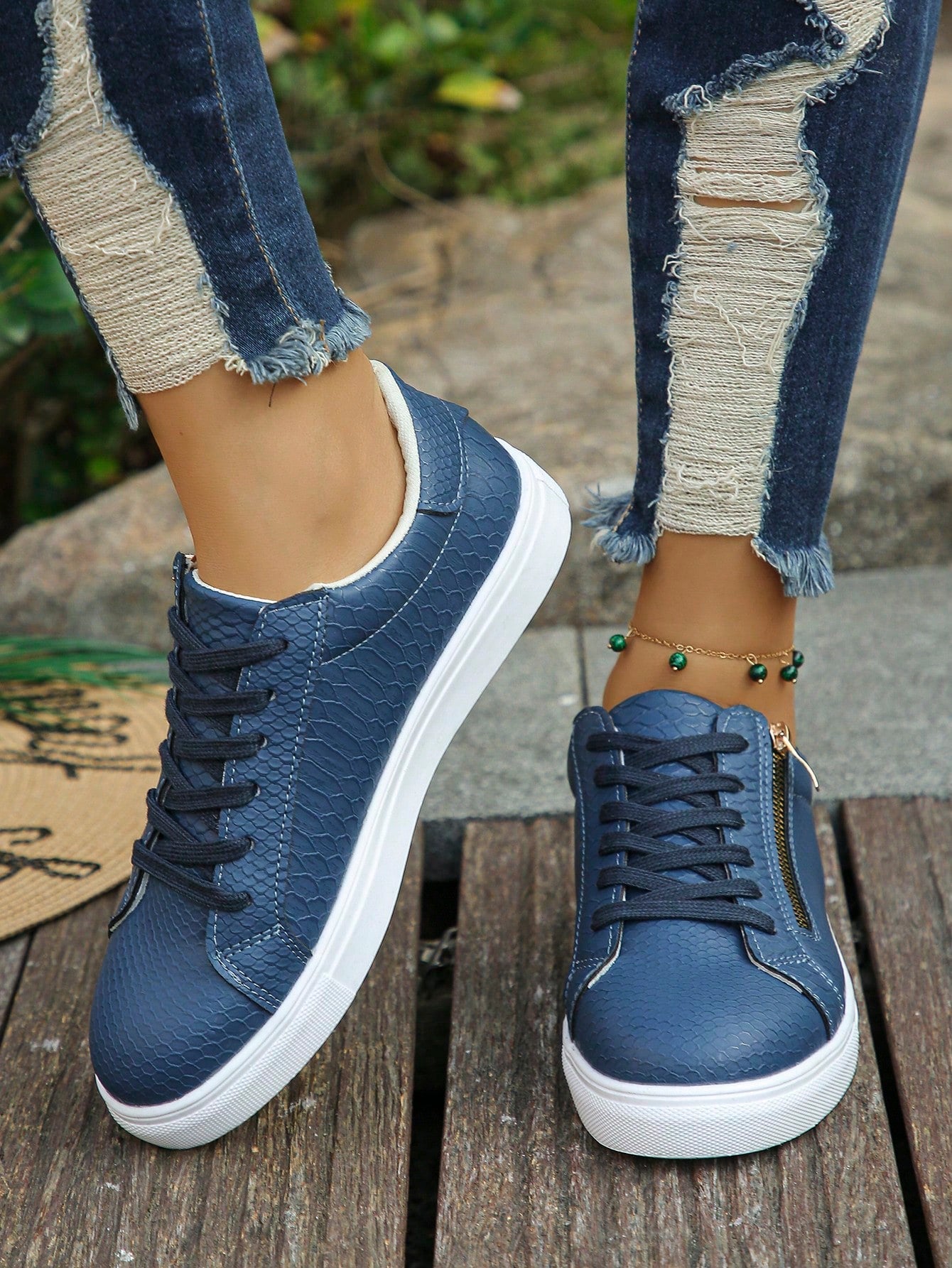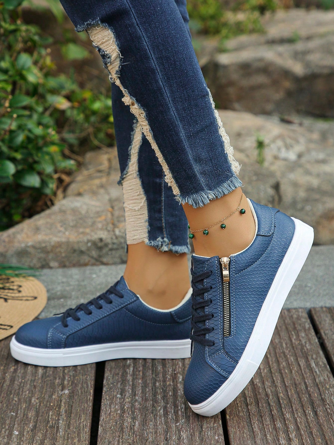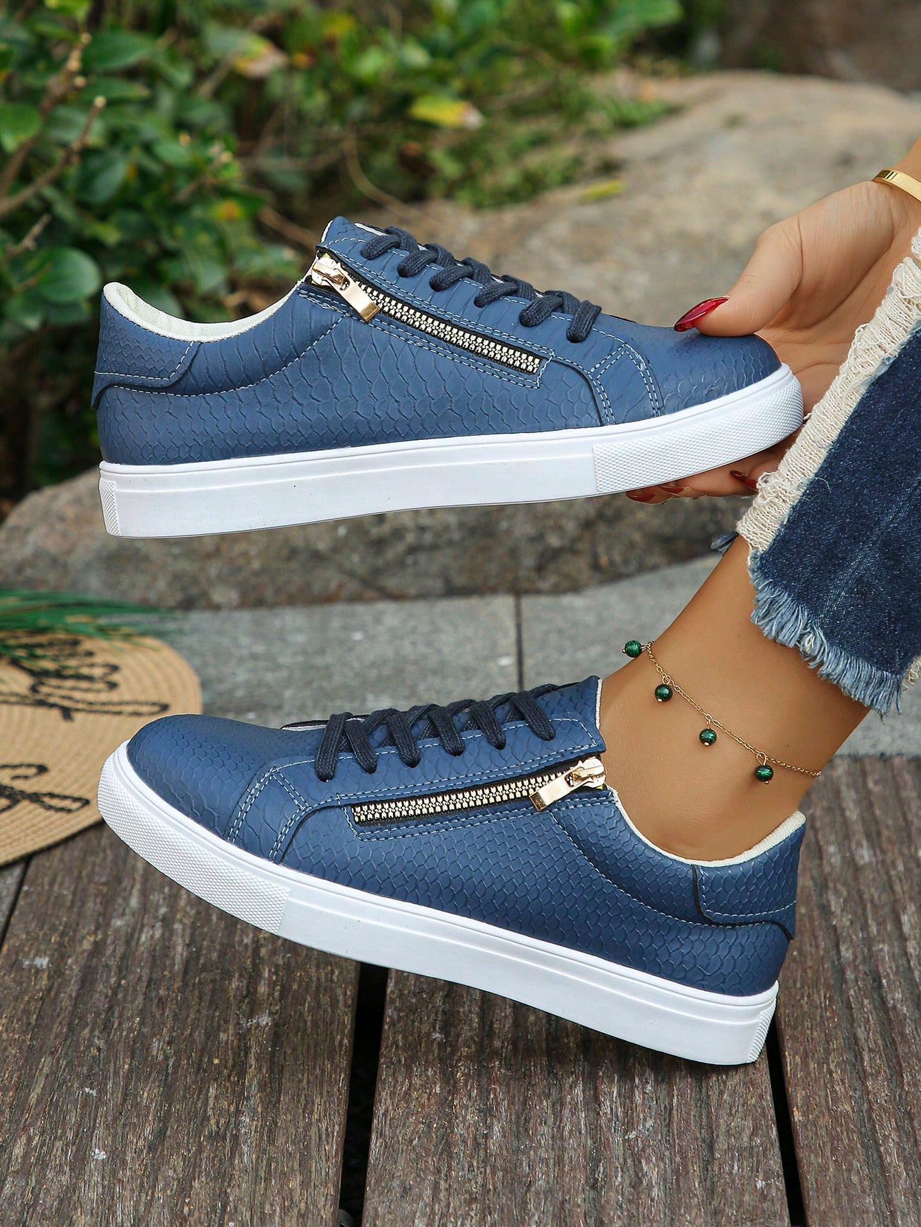 Women's New Blue Snake Print Classic Side Zipper Casual Shoes