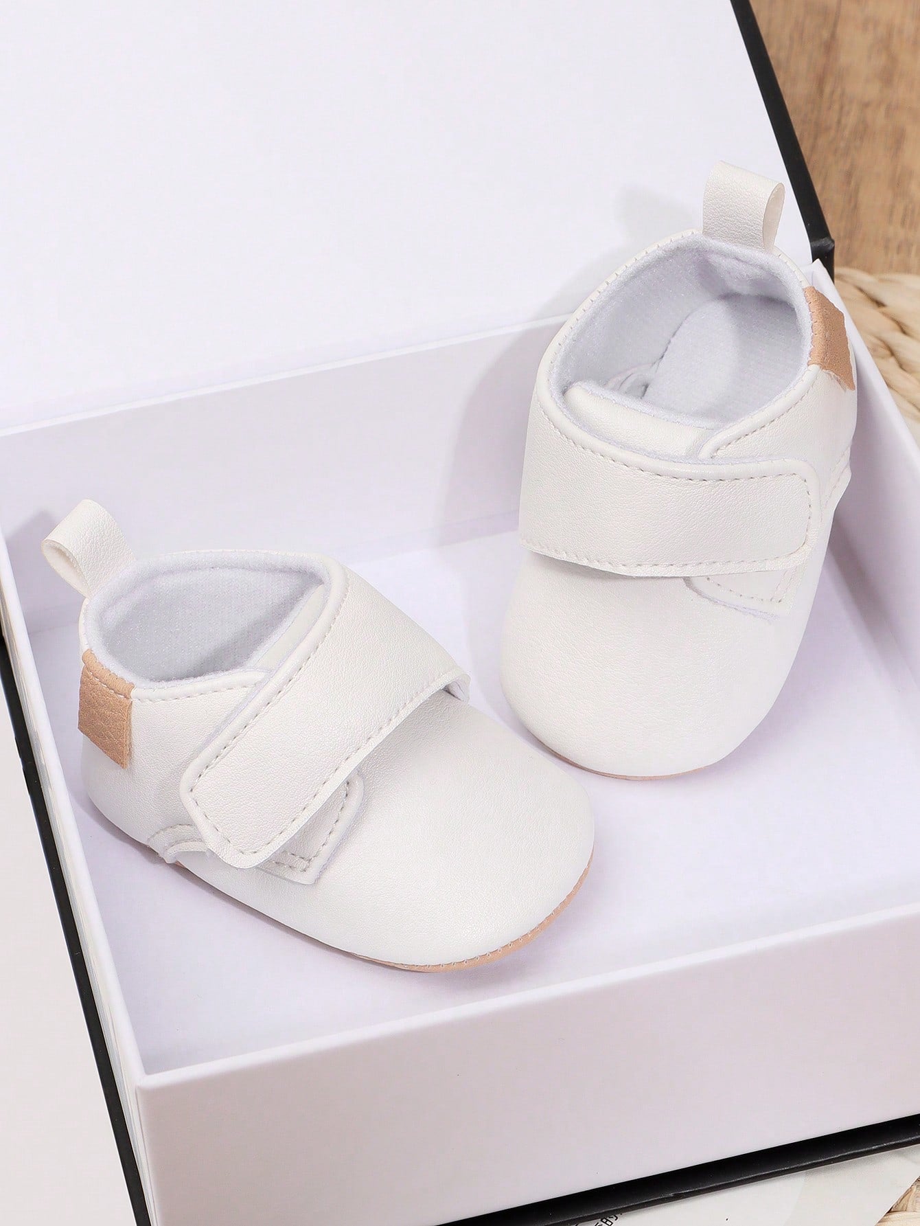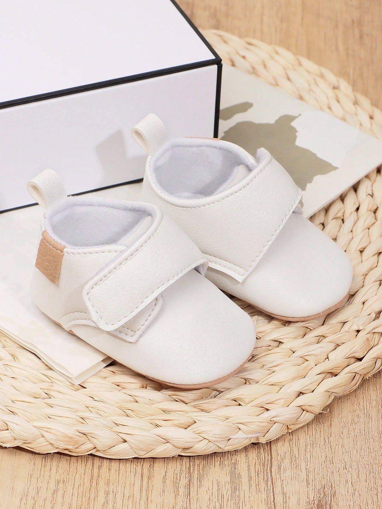 1 Pair Plain Color PU Hook And Loop Design Flat Non-Slip First Walkers For Newborn Baby Boys