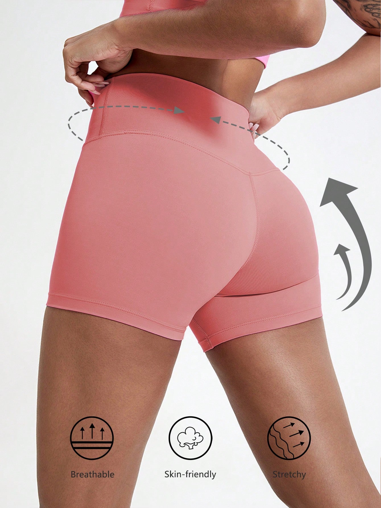 1 Piece High Waist Yoga Sports Shorts Outdoor Gym Running Workout Bottoms Breathable High Stretch Cycling