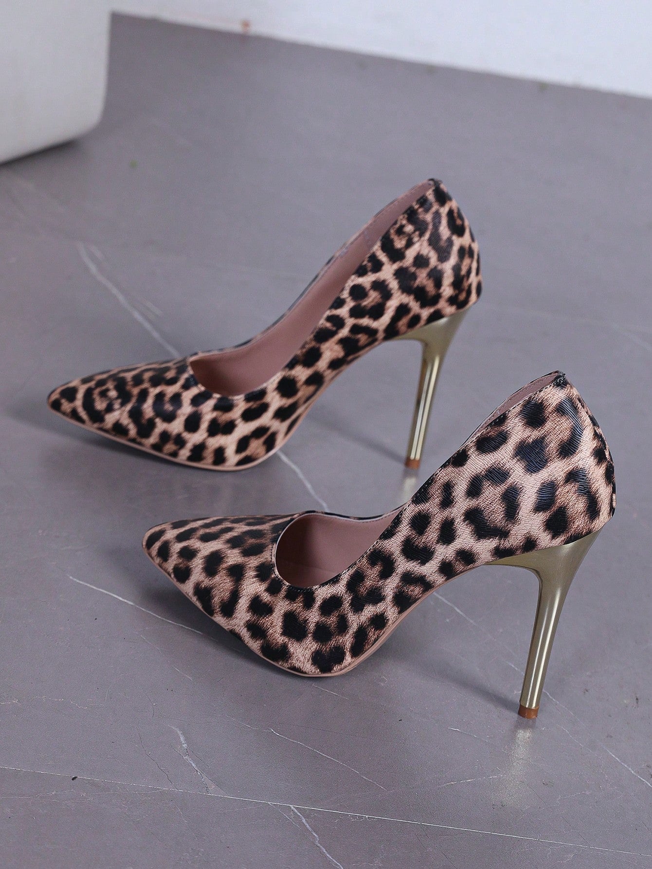 women 10cm Women Leopard Print Pointed Toe High Heel Shallow Slip-On Pumps